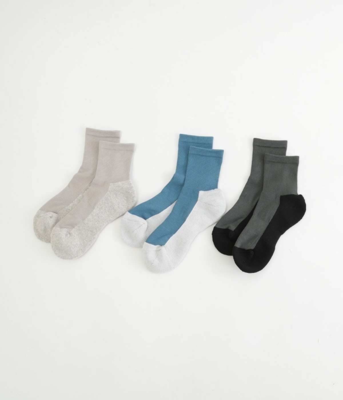 踵がふかふかしていて、履き心地の良いソックスです。クッションパイルにカシミヤを加えることにより、汗によるムレや冷えを軽減。使用を繰り返しても、柔らかさが続く素材です。落ち着きのあるカラーで使いやすく、どんなアイテムとも合わせやすいのが魅力。オールシーズン履くことができ、着回し力にも優れているので、持っていると何かと便利です。