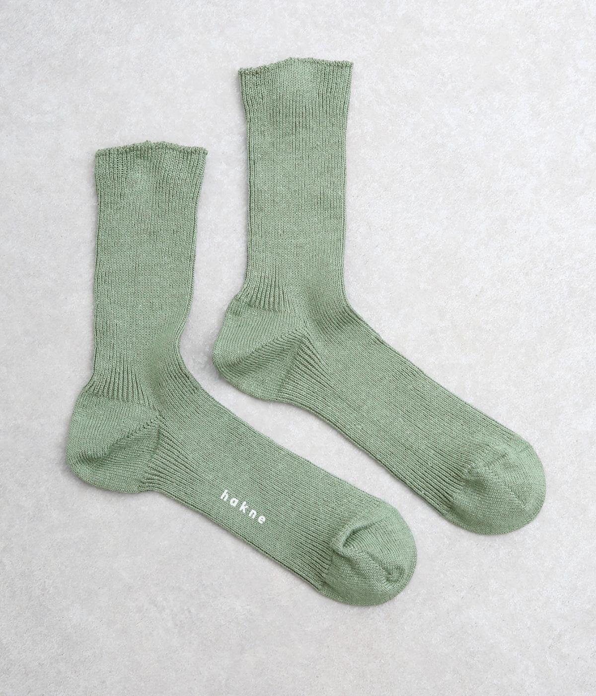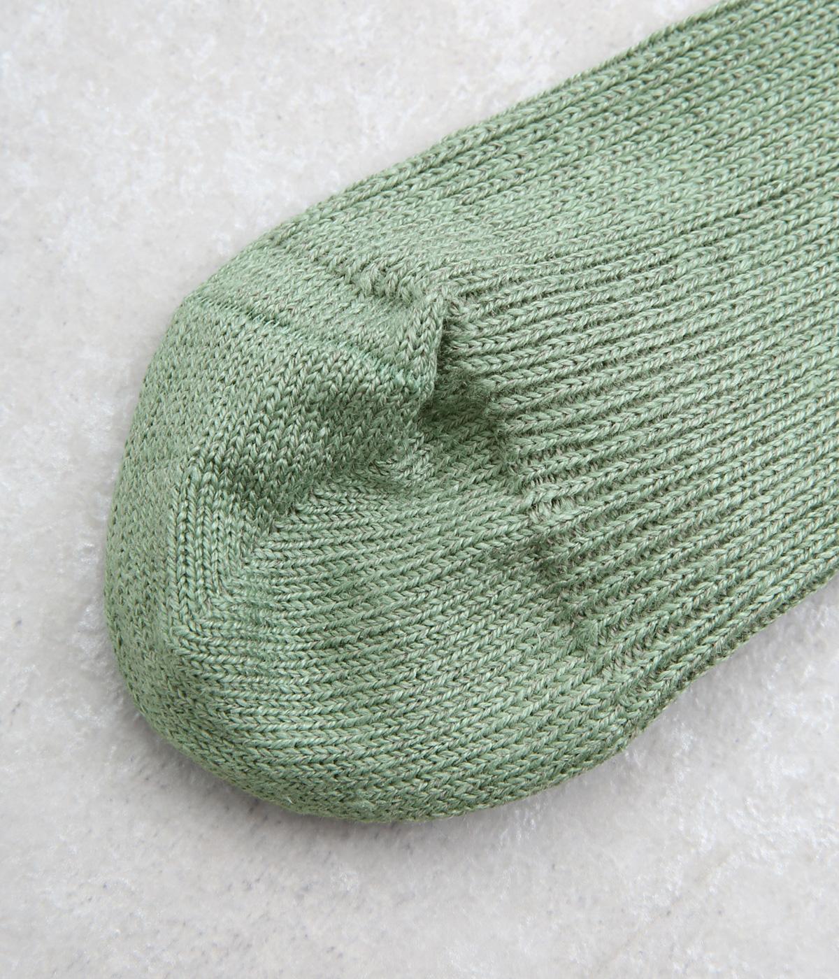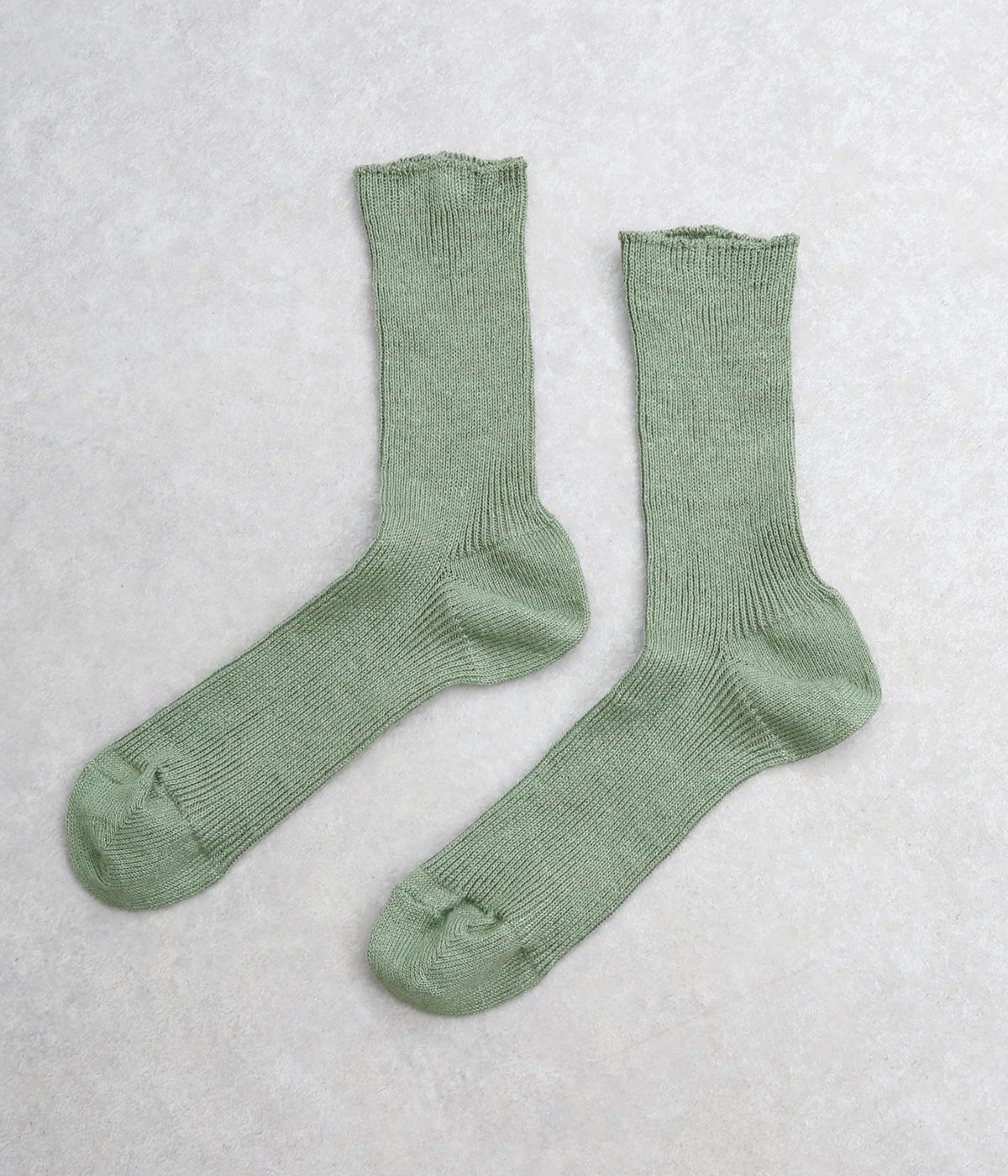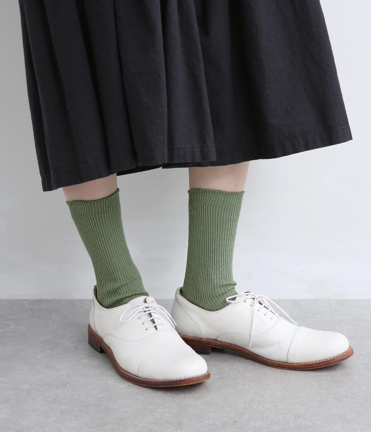すっきりとしたリブ編みで仕立てたソックス。凹凸のある編み地が足元にさりげない表情を添えます。コーディネートになじむ柔らかな色合いで、さりげなく彩りを添えるアイテムです。