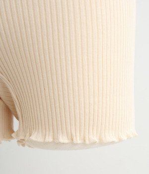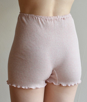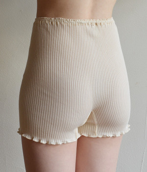 凹凸のあるリブ編みで伸縮性の高い、オーガニックコットンの1分丈ショーツです。繊維一本の長さが35mm以上もある貴重な高級綿「スーピマ」を使用し丁寧な縫製によって作られています。他の種類の綿花に比べてさらに柔らかく、しっとり滑らかな肌触りが特徴。保湿性に優れ、体にやさしくフィットするのでどんな着こなしにも相性抜群です。