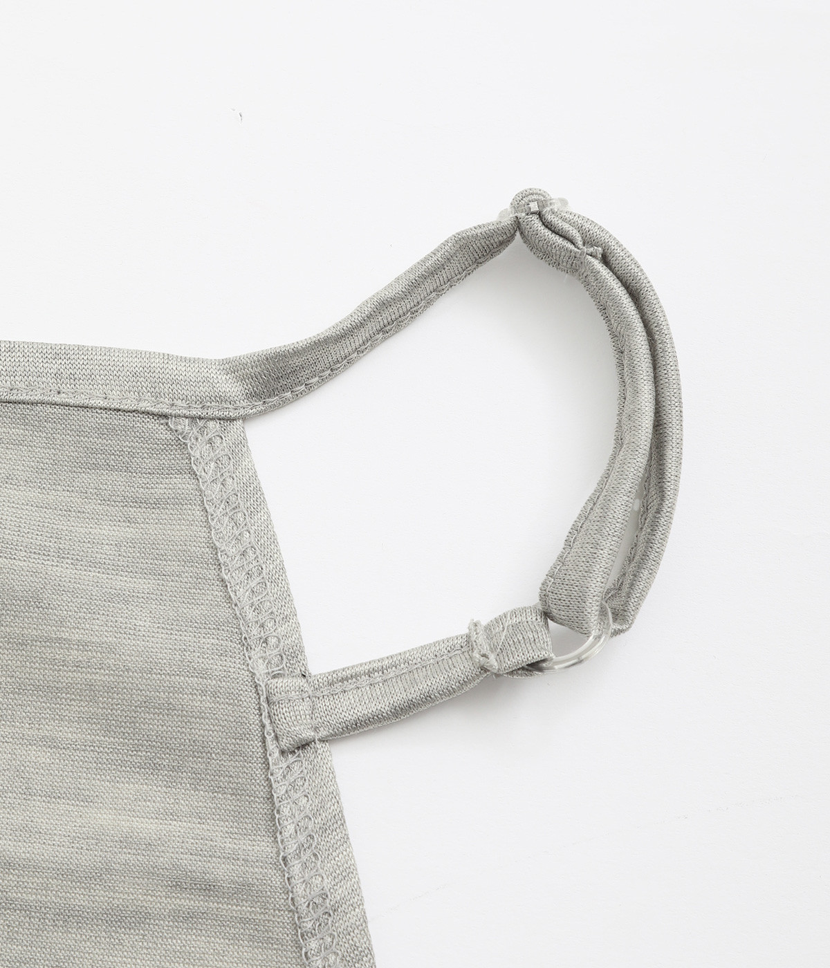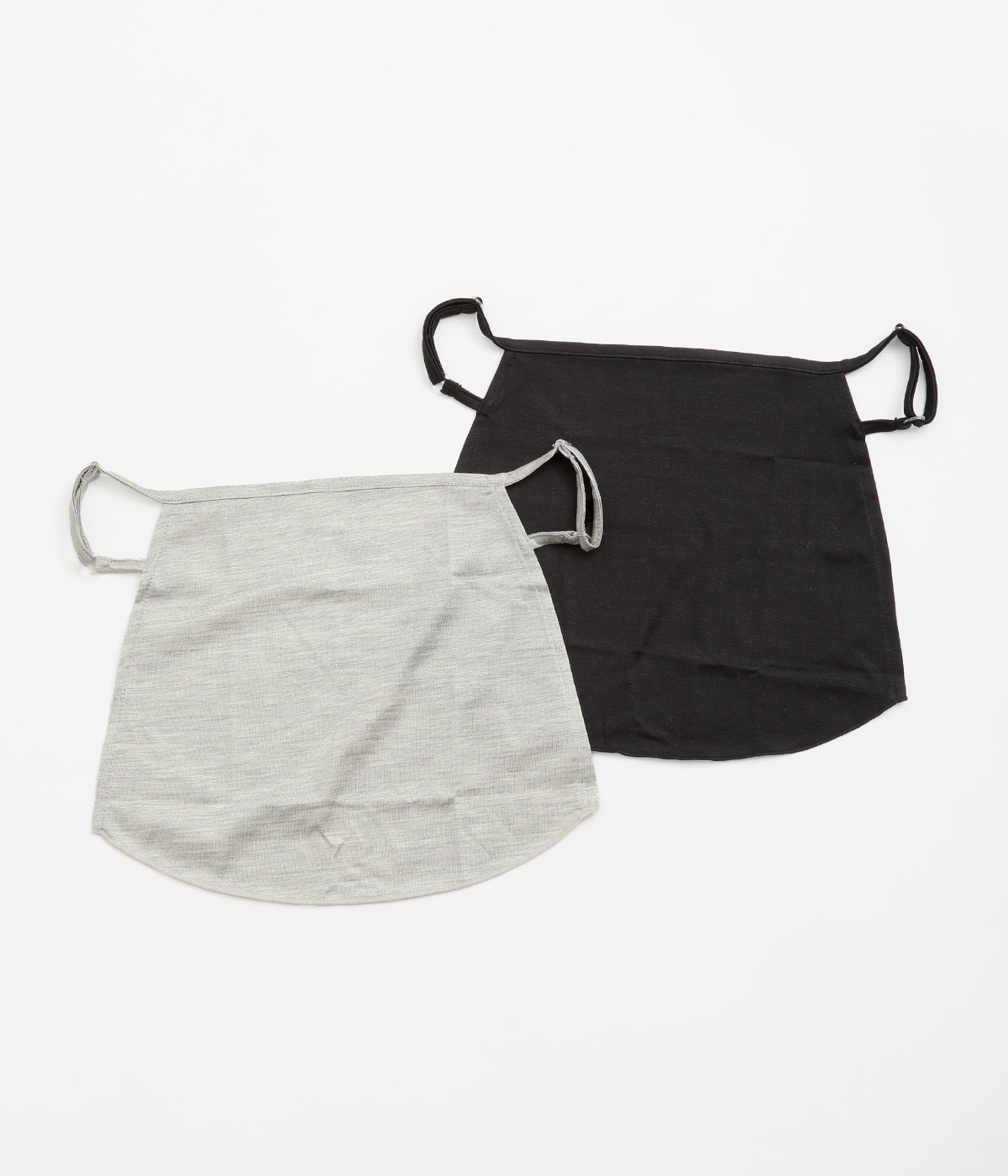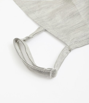 耳にかけて使用する形状のフェイスカバー。着脱もしやすく、耳紐は顔のサイズに合わせて調整できるアジャスターつきです。マスクよりも呼吸がしやすく、長めの作りなので首もとまでカバーしてくれます。