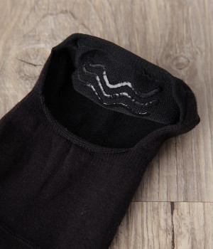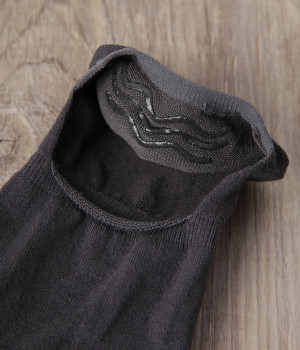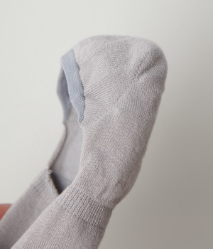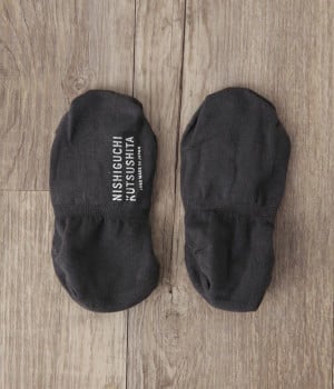 通常よりも撚りを多くかけた強撚のコットンを使用したフットカバーです。シャリっとした風合いと肌離れがよくさわやかな履き心地。つま先が広いつくりになっているので、窮屈感が少なく、脱げにくいシリコンラバーを使用しているのもポイントです。
