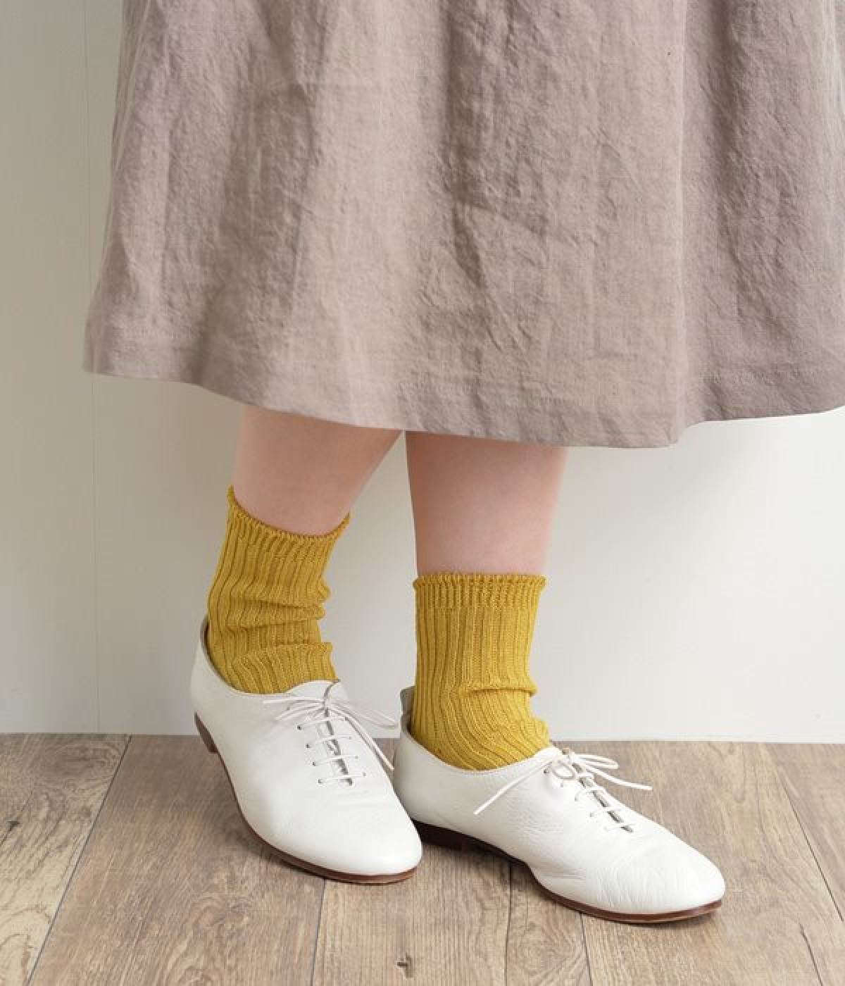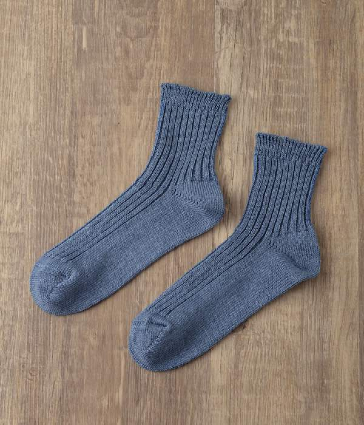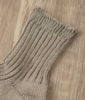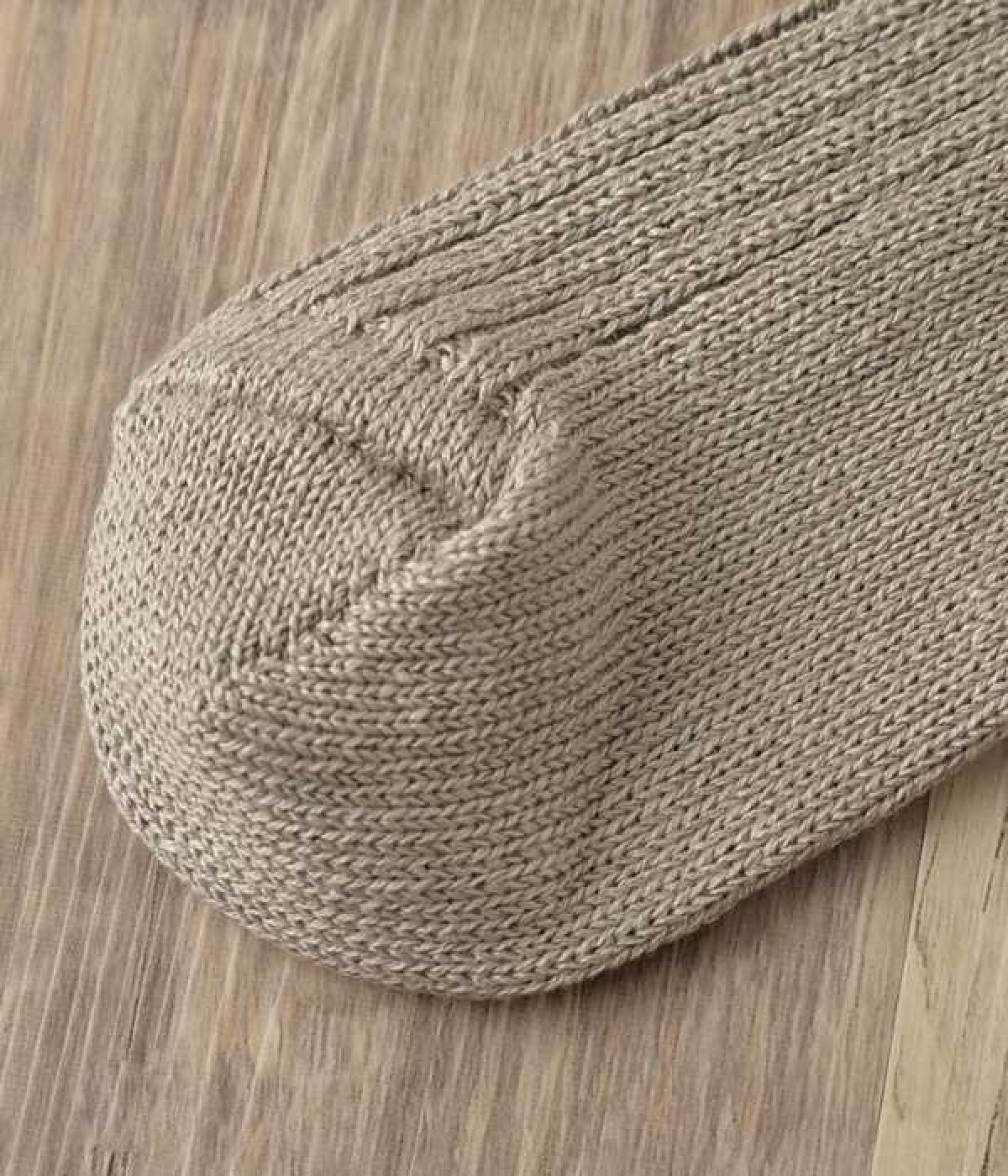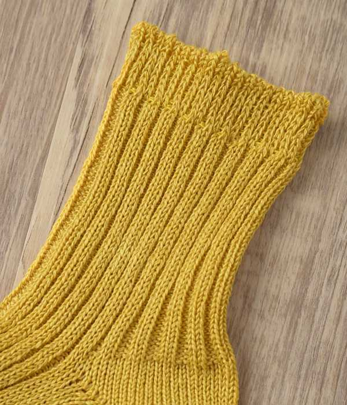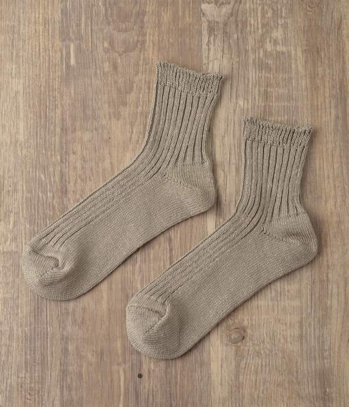 シャリ感と光沢のあるリネン糸を使ってをリブ編みで仕立てた、すっきりとしたデザインのショート丈ソックスです。リネン特有の通気性・発散性の良さが際立つ、蒸れをおさえた爽やかな履き心地が魅力。スニーカーを合わせたカジュアルな装いから、レザーシューズを合わせた少しキレイめなスタイリングまで幅広いコーディネートに対応します。