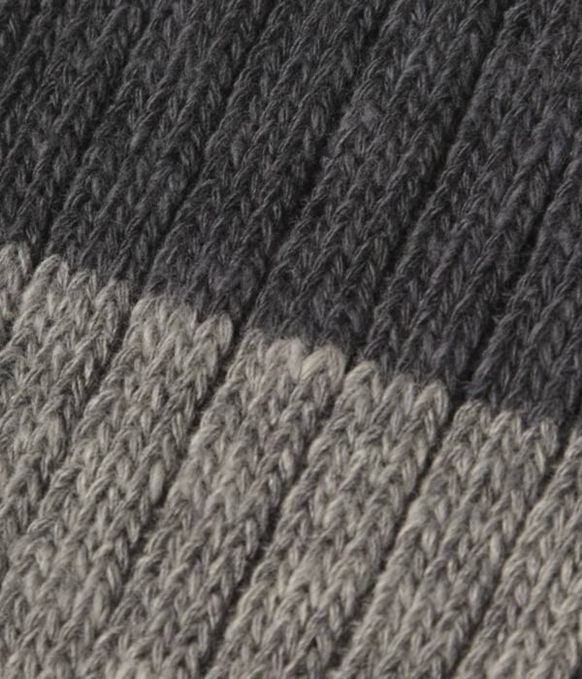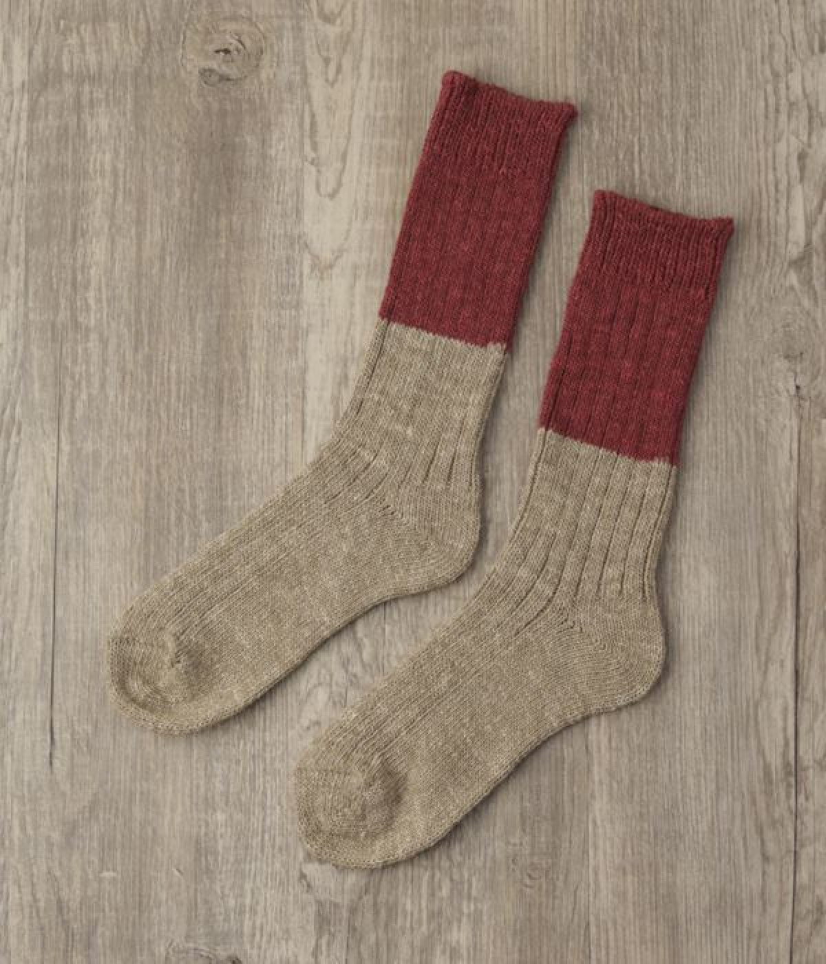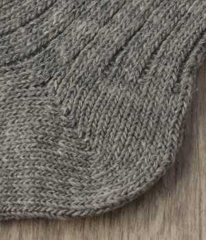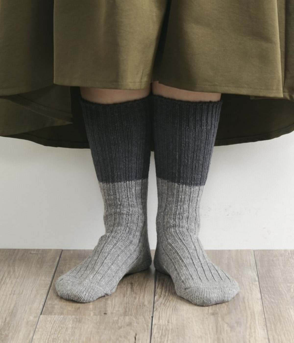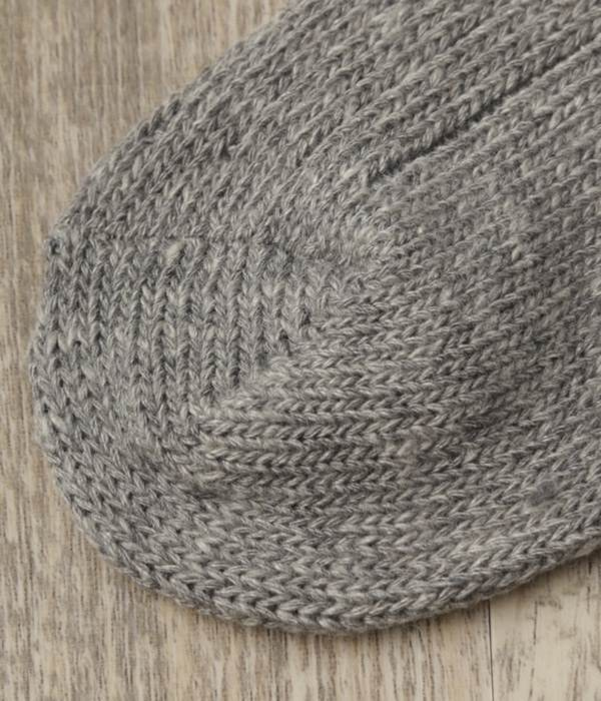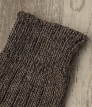ウールとコットンをブレンドし、甘くポツポツとスラブ調に撚った糸で編み上げられたリブソックスです。スラブ調がカジュアル感を醸し出し、甘く撚った糸からは柔らかさと温かみが伝わってきます。履くほどにヴィンテージ感が増すので長くご愛用頂けます。コットンとウールで少し色差を出した染め方で味わい深い表情に。ぜひ甲の浅い靴と合わせてバイカラーデザインをお楽しみください。