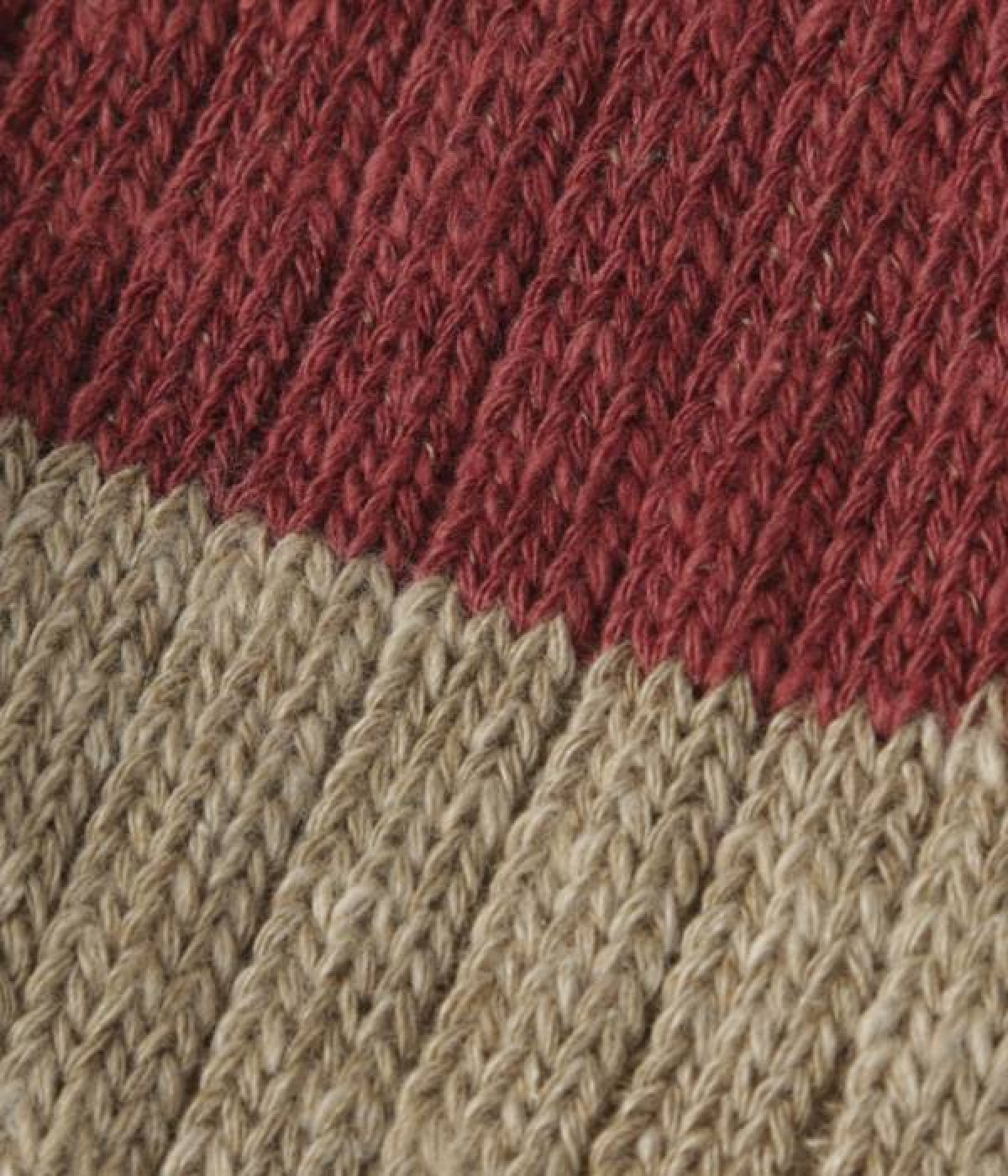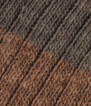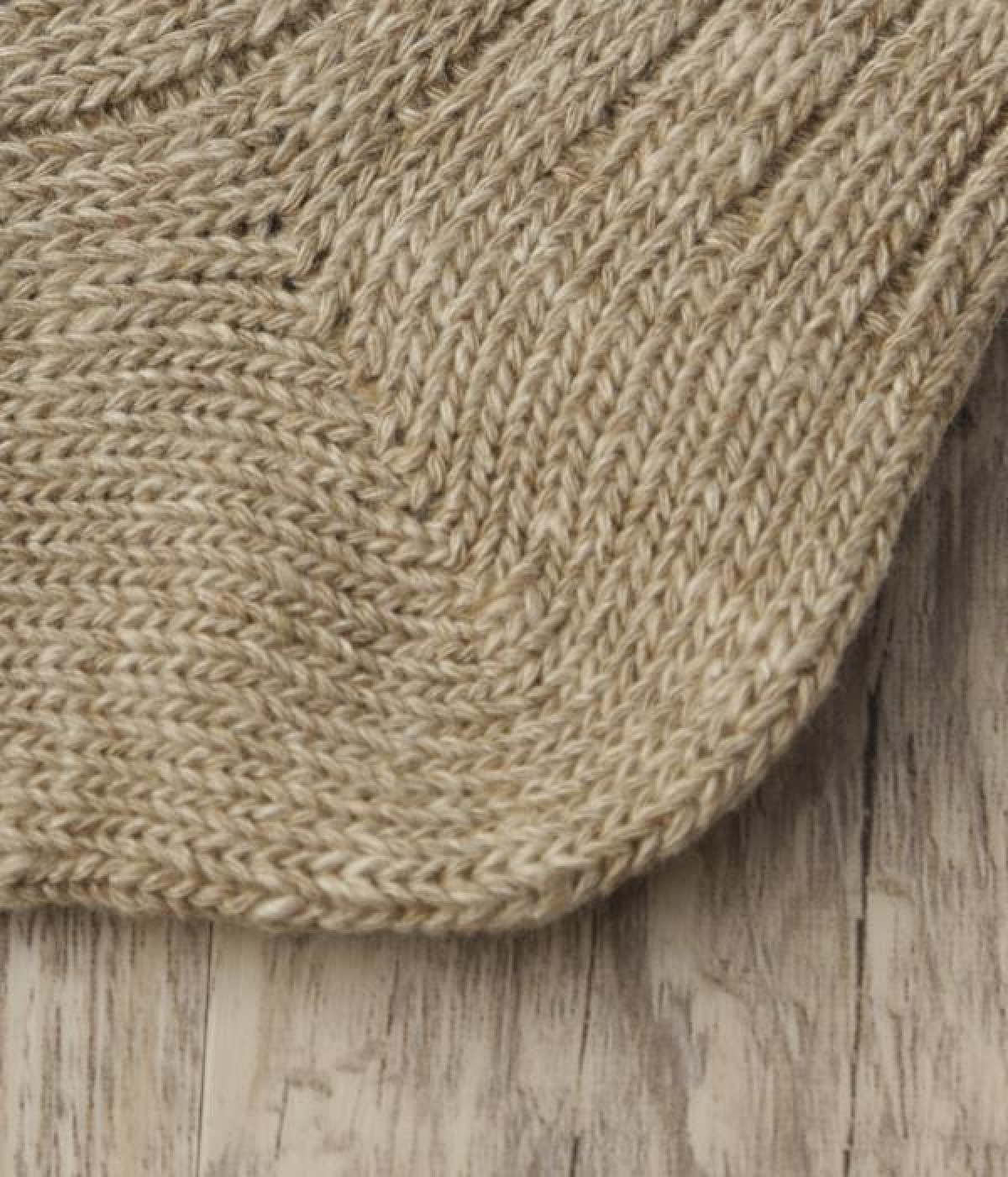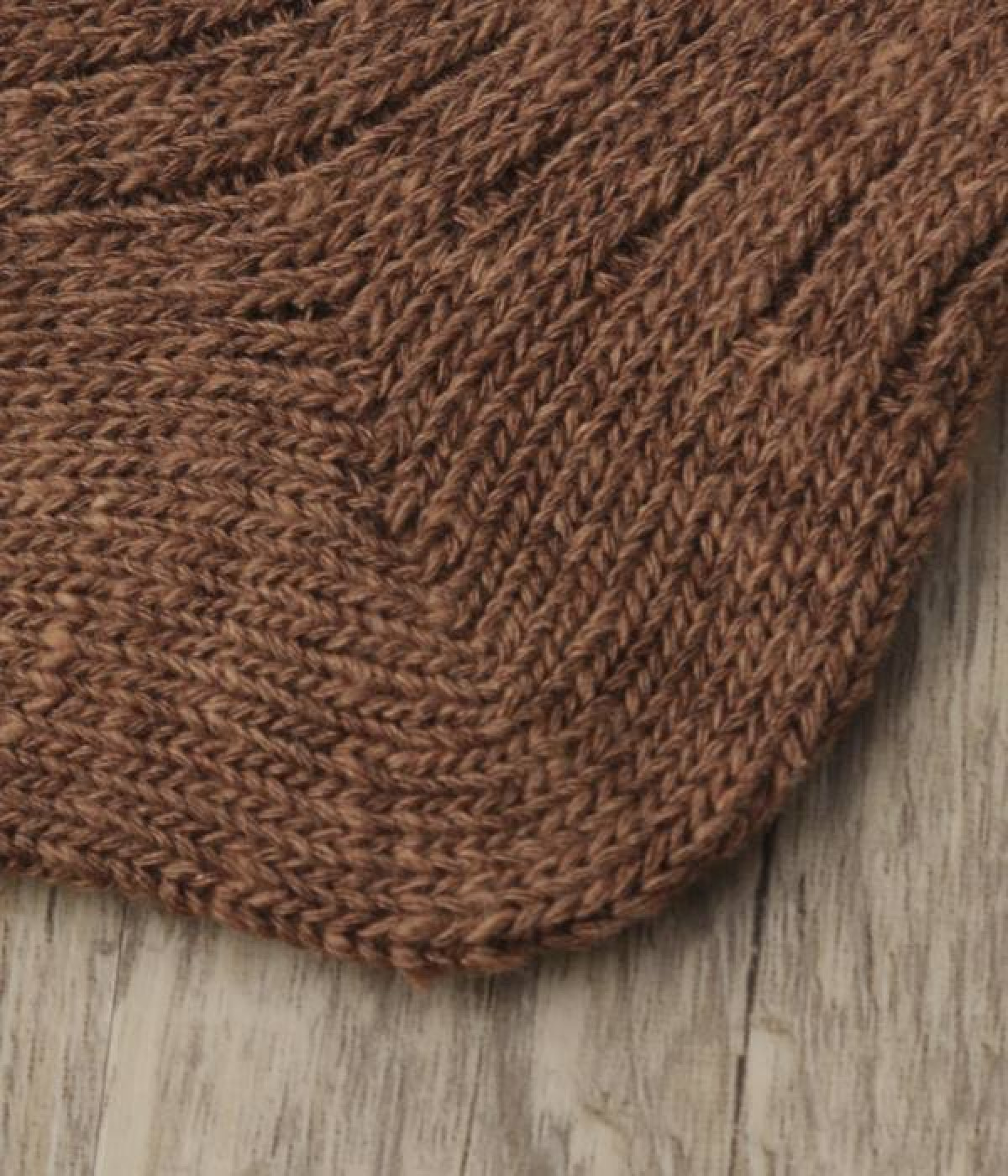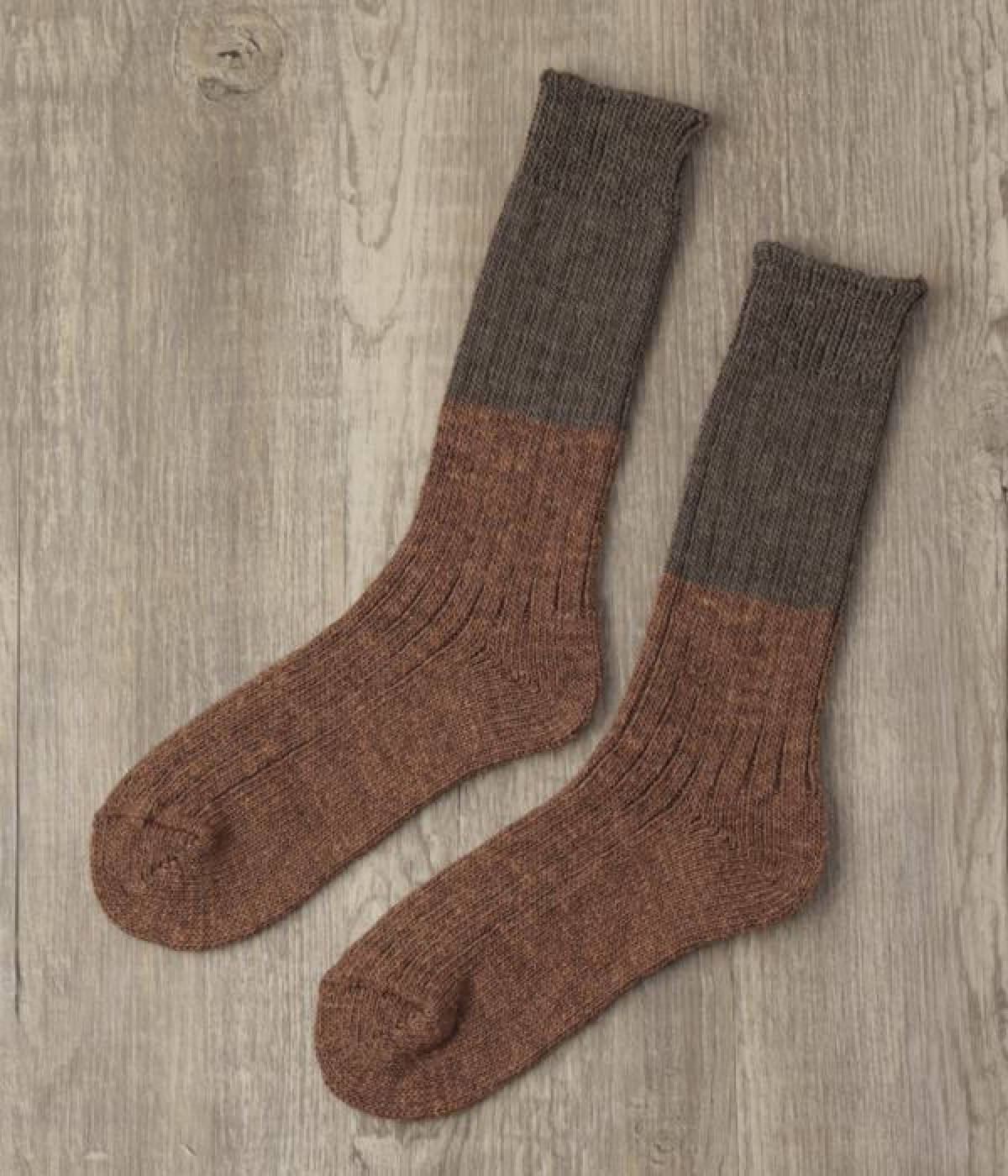 ウールとコットンをブレンドし、甘くポツポツとスラブ調に撚った糸で編み上げられたリブソックスです。スラブ調がカジュアル感を醸し出し、甘く撚った糸からは柔らかさと温かみが伝わってきます。履くほどにヴィンテージ感が増すので長くご愛用頂けます。コットンとウールで少し色差を出した染め方で味わい深い表情に。ぜひ甲の浅い靴と合わせてバイカラーデザインをお楽しみください。
