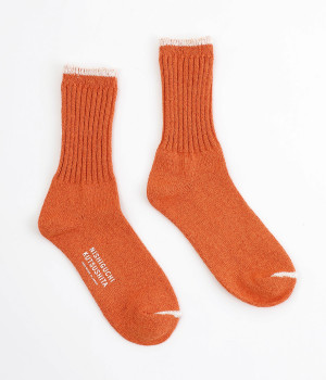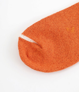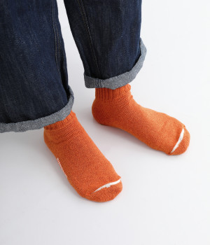 はき口とつま先の切り替えに配色をきかせて、さり気ないアクセントをプラス。リブを取り入れて心地よいフィット感を叶えます。自然豊かな奥大和エリアで作られるクラフトビールをイメージした琥珀ビアは2025年のシーズンカラー。