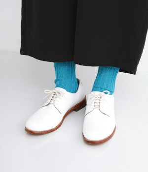 リネン糸で編み上げたナチュラルな質感です。通気性・発散性が高いので蒸れにくく、さわやかなはき心地を叶えます。光沢がありシャリシャリとした風合いが◎。