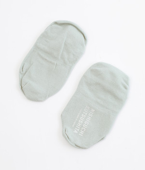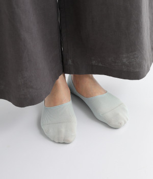 通常よりも撚りを多くかけ、さらっとした強撚のコットンを使用しています。シャリっとした風合いと肌離れがよく爽やかなはき心地を実現。シリコンラバーをつけ、脱げにくい設計に。