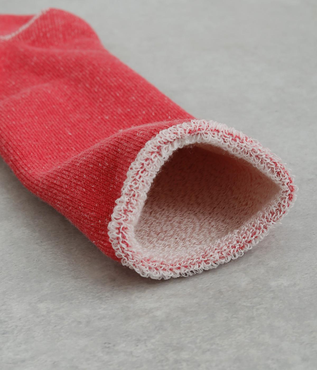 肌に触れる内側がふわふわとしたパイル地に、外側は伸びの良い丈夫なコットン生地になっています。厚手で保温性があり、寒い時期に足元をあたたかく包み込んでくれます。