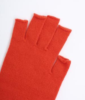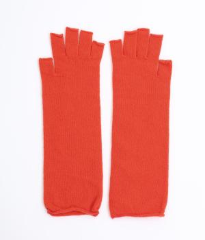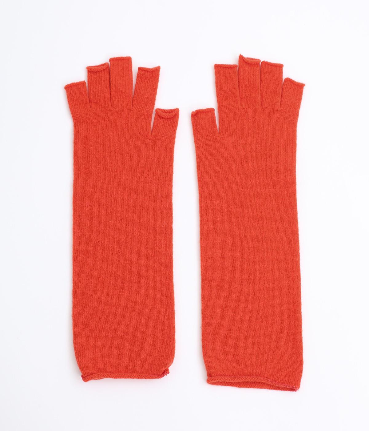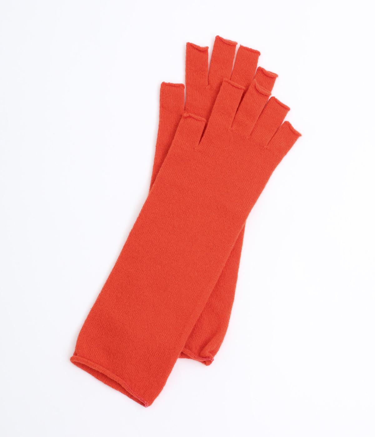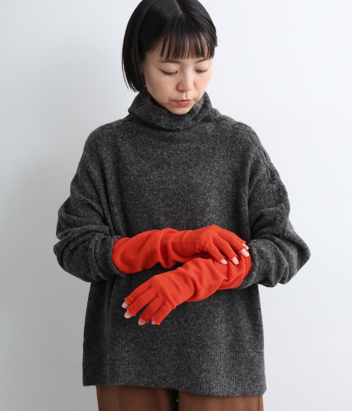 防寒性とおしゃれを両立する、装いのアクセントにぴったりなカラーリングのアームウォーマー。つけたままでスマートフォンの操作などができるフィンガーレス仕様です。指先の第一関節からひじ下まであたたかく包み込んでくれます。