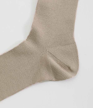 なめらかでしっとりとした手ざわりが魅力的な、シルク混ハイソックスです。優しい肌あたりで静電気が発生しにくく、保温性と吸放湿性が高いので年中快適な履き心地。フィット感のある細畝のリブ編みが、脚をすっきりと見せるポイントに。長めのワンピースやスカートに合わせたタイツ風の履き方はもちろん、クロップド丈のパンツからのぞかせるスタイルもおすすめです。