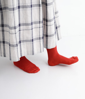 やわらかくしっとりとしたはき心地や気持ちのいいフィット感にこだわりました。無地見えする細かいリブ仕立てになっています。海から生まれた宝石として古くから愛されてきた珊瑚をイメージしたコーラルは2025のシーズンカラー。