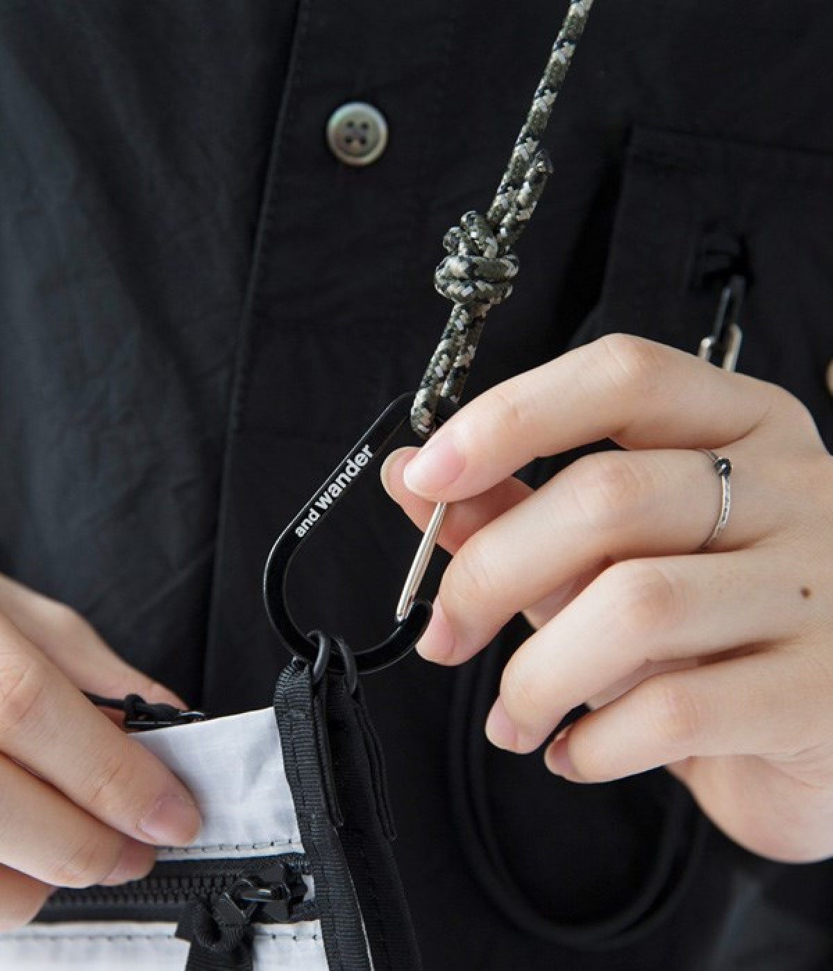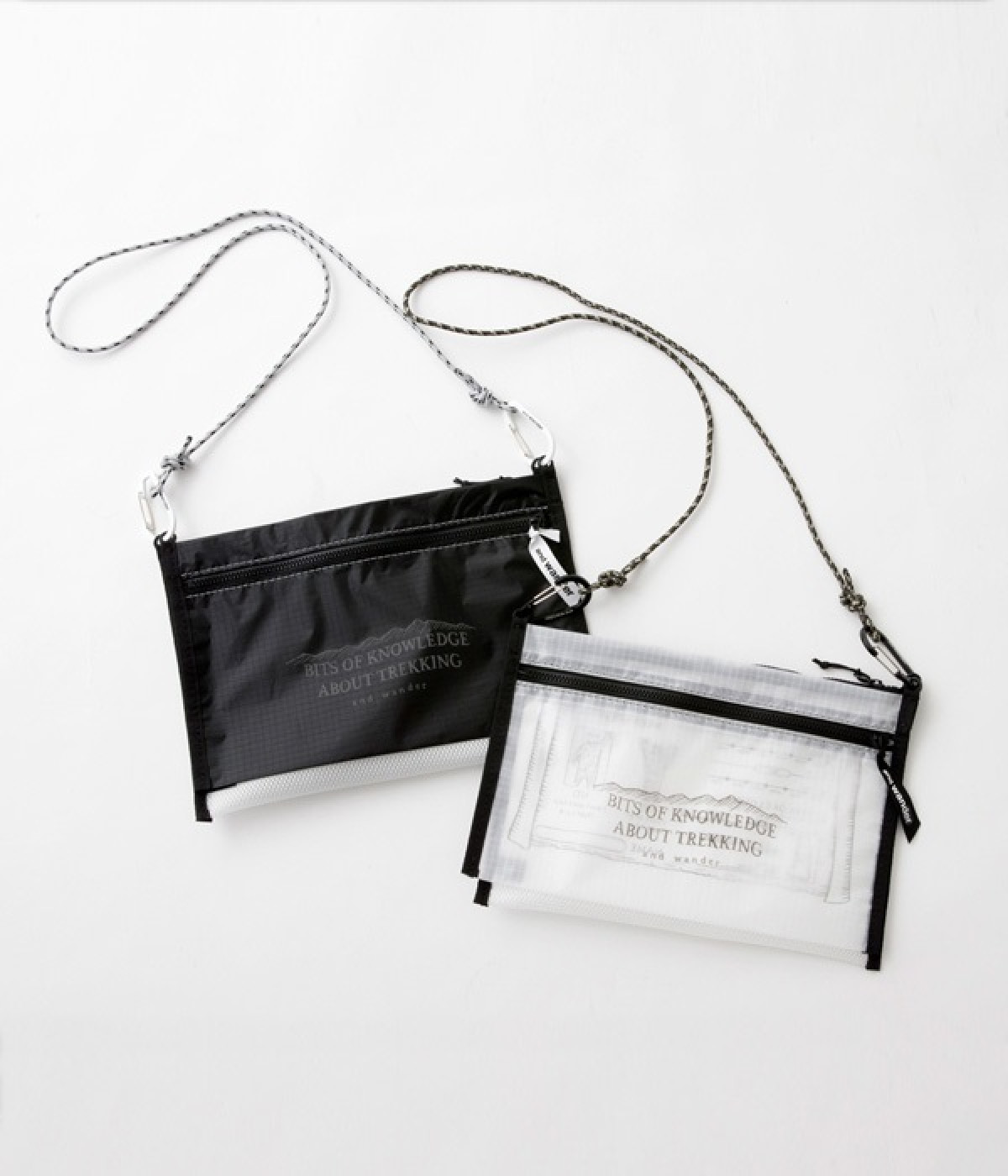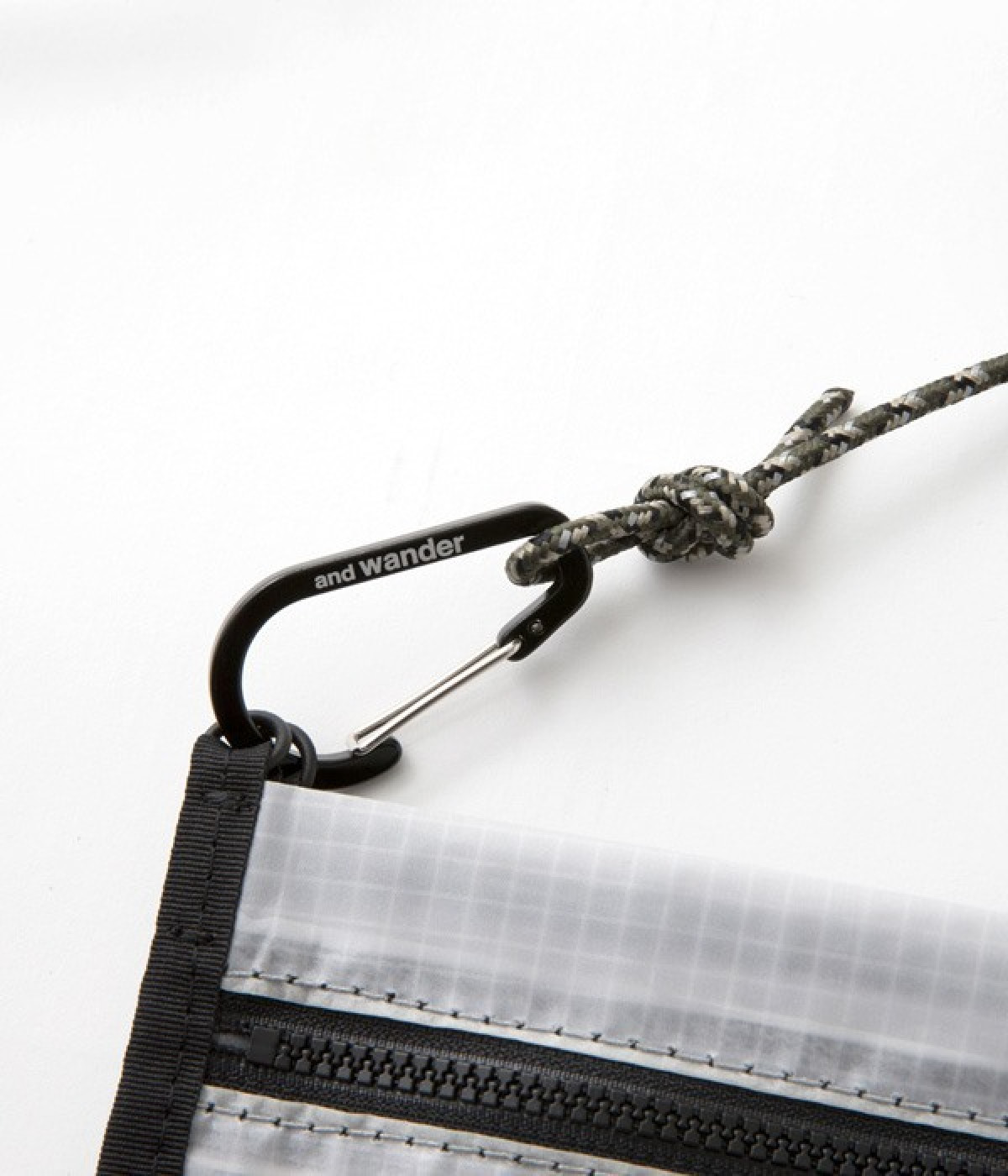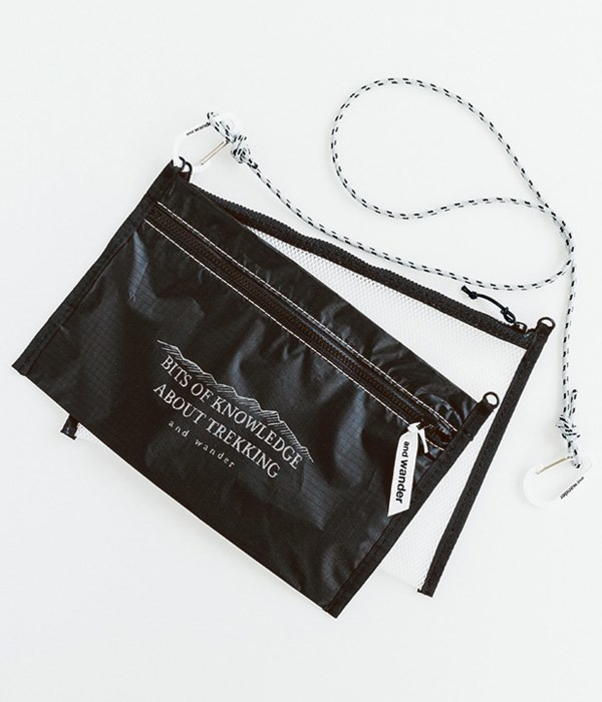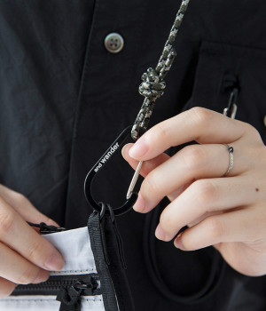 女優・麻生久美子さんと、機能性とデザイン性の高さで注目を集める「and wander(アンドワンダー)」のコラボアイテム。「もっとアウトドアが楽しくなる、おしゃれなウェアがほしい」という麻生さんの願いを叶えるべく、機能的でスタイリッシュなアーバンアウトドアアイテムが誕生しました。素材の異なるふたつのポーチをカラビナでつなげたサコッシュ。ひとつはメッシュ素材、もうひとつは特殊な樹脂でコーティングした、軽くて強度の高い「スピンネーカークロス」を使用。イラスト部分にリフレクターが使われていて、暗闇で光るのがポイントです。カラビナ付きなので、サコッシュとしてだけではなくバッグにぶら下げるなど、アイデア次第で使い方のアレンジも利くひと品です。