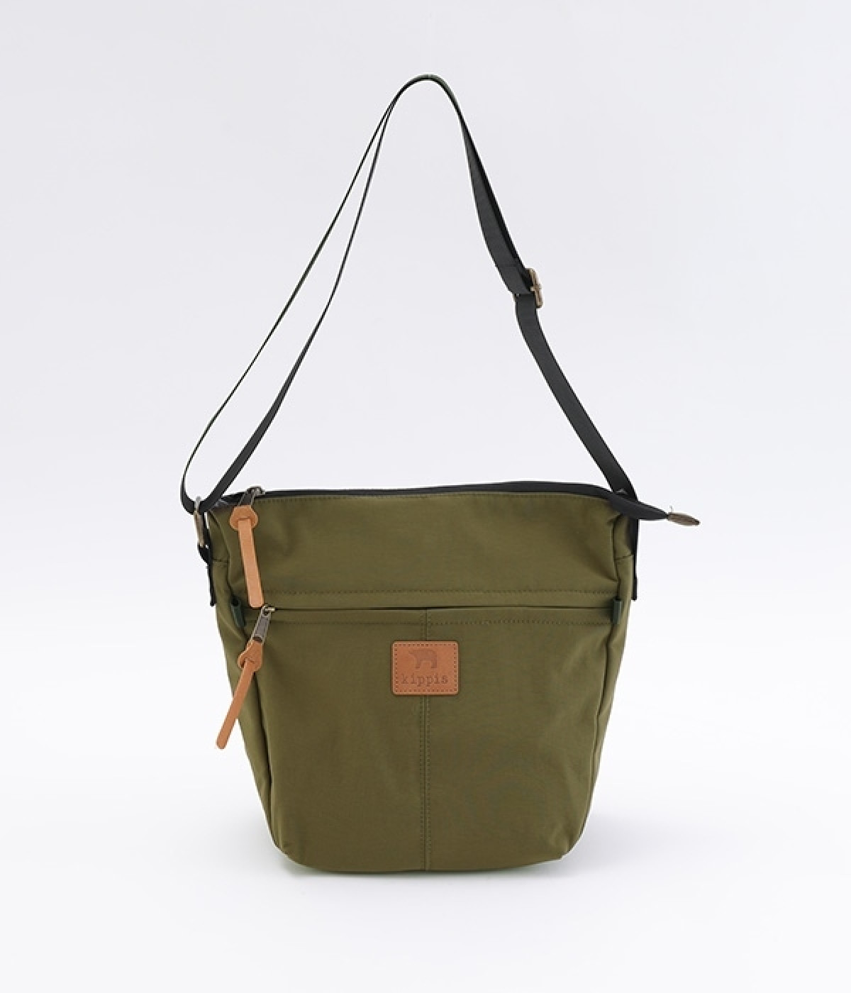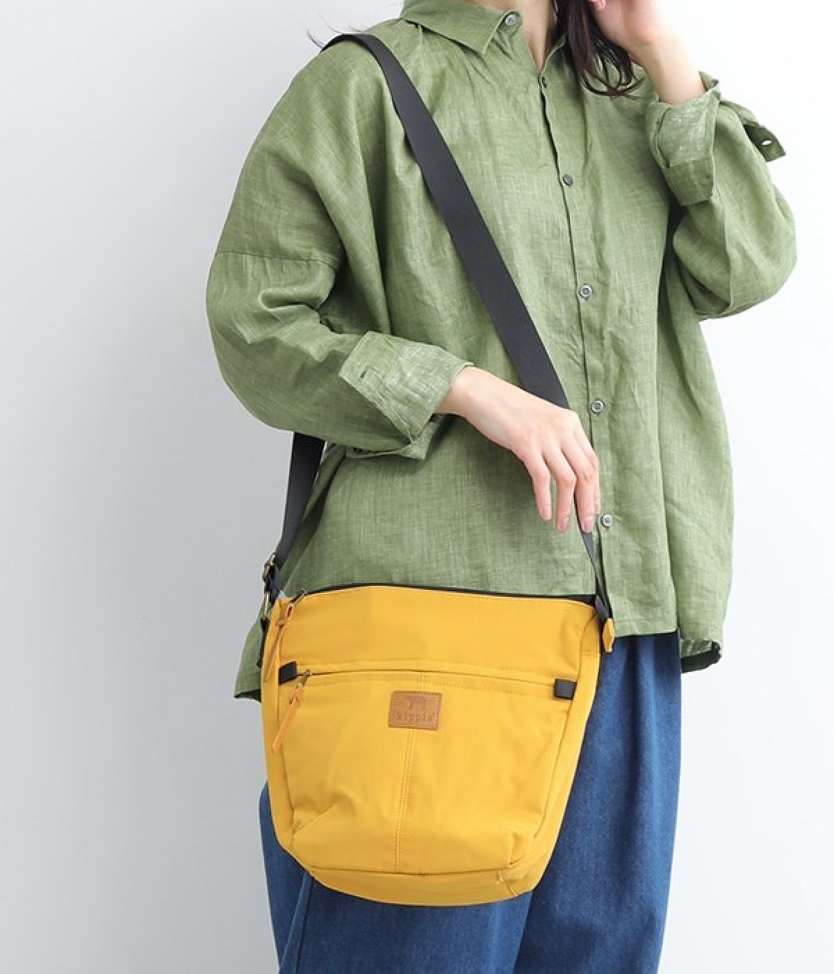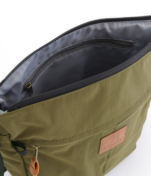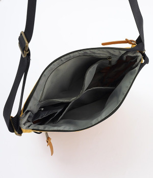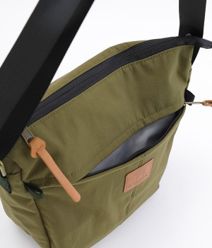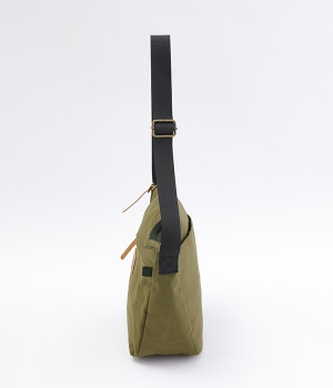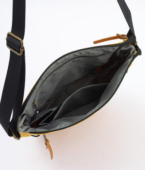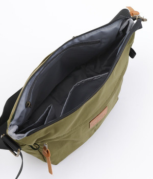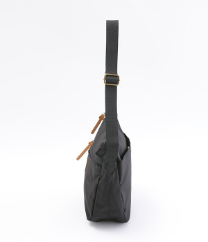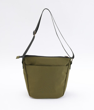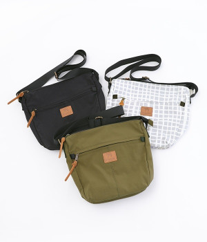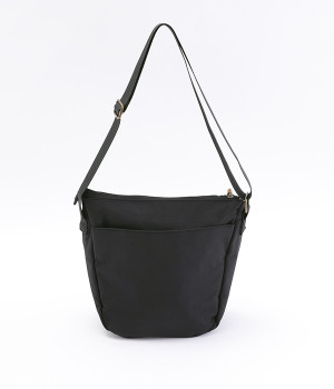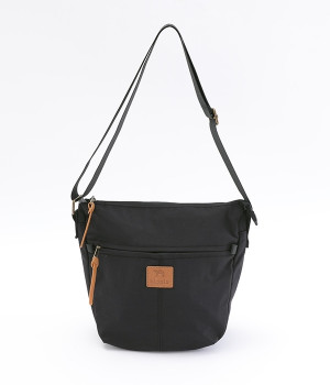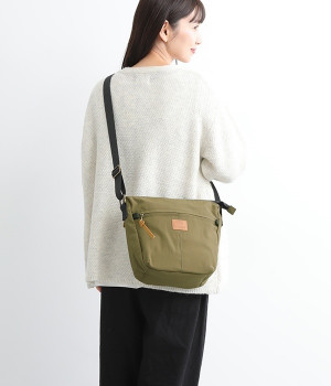 大きすぎず小さすぎず、長財布やペットボトル、ポーチなどお出かけの荷物が収まるショルダーバッグ。逆台形で開口部が広々としているため、荷物を取り出しやすいつくりです。本革風のラベルや引き手、ステッチワークでシンプルながらもクラフト調のぬくもりを感じさせるデザイン。ショルダーストラップを短くして肩掛けに、長くしてクロスボディにと持ち方のアレンジも自在です。