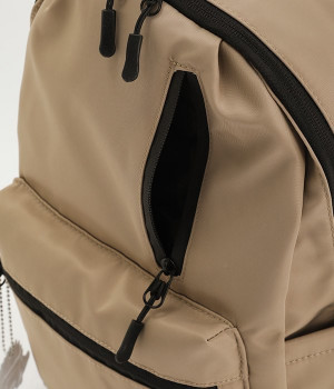 シンプルなデザインに豊富なポケット、そしてリュック正面にある縦ファスナーがポイントになったデイパックです。底マチがしっかりとあるので自立でき、お弁当箱なども余裕を持って収納できます。またA4サイズの書類や13インチのPCも楽々入るので通勤・通学にも大活躍。撥水加工生地で水濡れにも強く、旅行やマザーズバッグとしてもおすすめです。