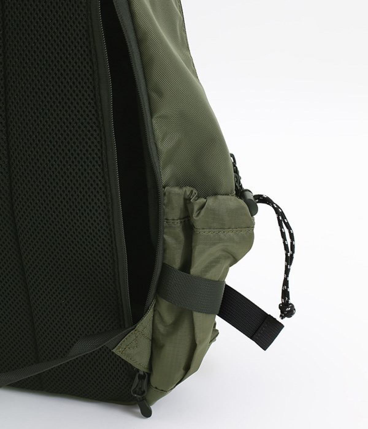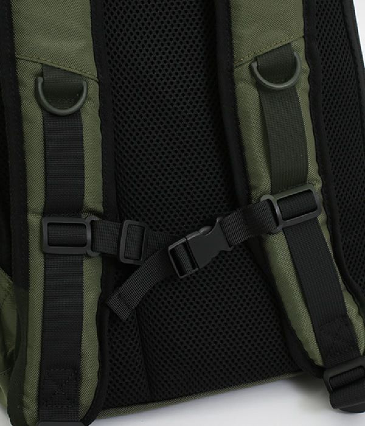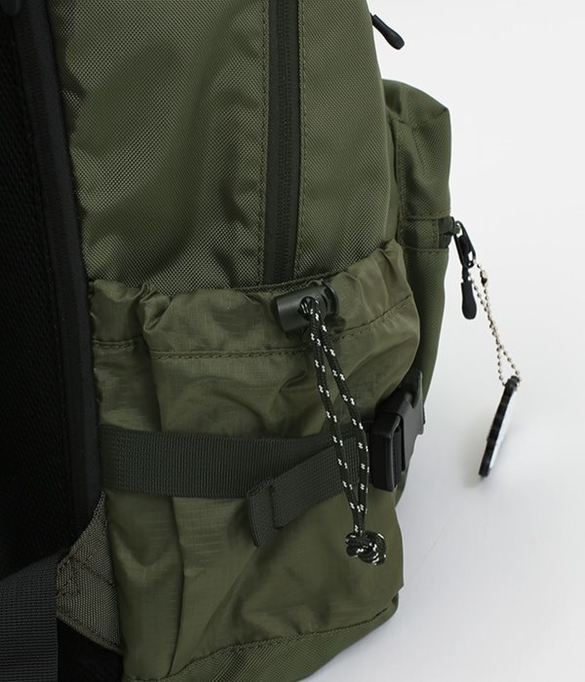 毎日の通勤や通学にはもちろんのこと、ちょっとした旅行やお出かけまで様々なシーンで活躍する大容量リュックです。およそ30リットルが入るサイズで、PCポケットのクッション背面やショルダーベルトのメッシュ素材、チェストベルト、Dカンなど細部まで機能面にもこだわっています。背負ったまま出し入れできる背面ポケットや、持ち手下のポケット、サイドポケット、外側のファスナーポケットに内側の3ポケットなどあると便利なポケットが充実。リュック本体には撥水加工生地を使用していてアクティブにお使いいただけます。