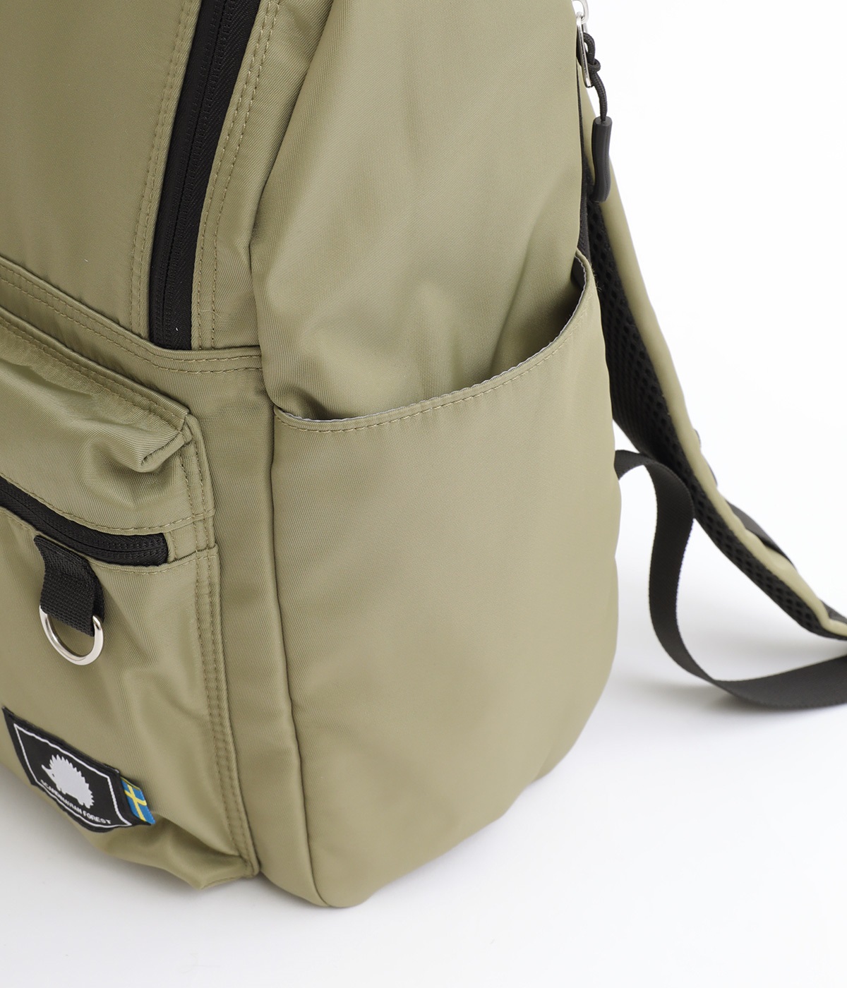 【素材】タフなナイロン素材を用い、アクティブシーンに活躍する仕立てです。ショルダーは裏がメッシュ素材で通気性が良く、クッションにより肩への負担も軽減されます。【デザイン】ポケットが充実していて仕分け上手なリュックです。メインエリアが大きく開くので中の物が見やすく出し入れもスムーズ。ショルダーはバックルで取り外せるのでマザーズリュックとしても活躍します。