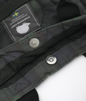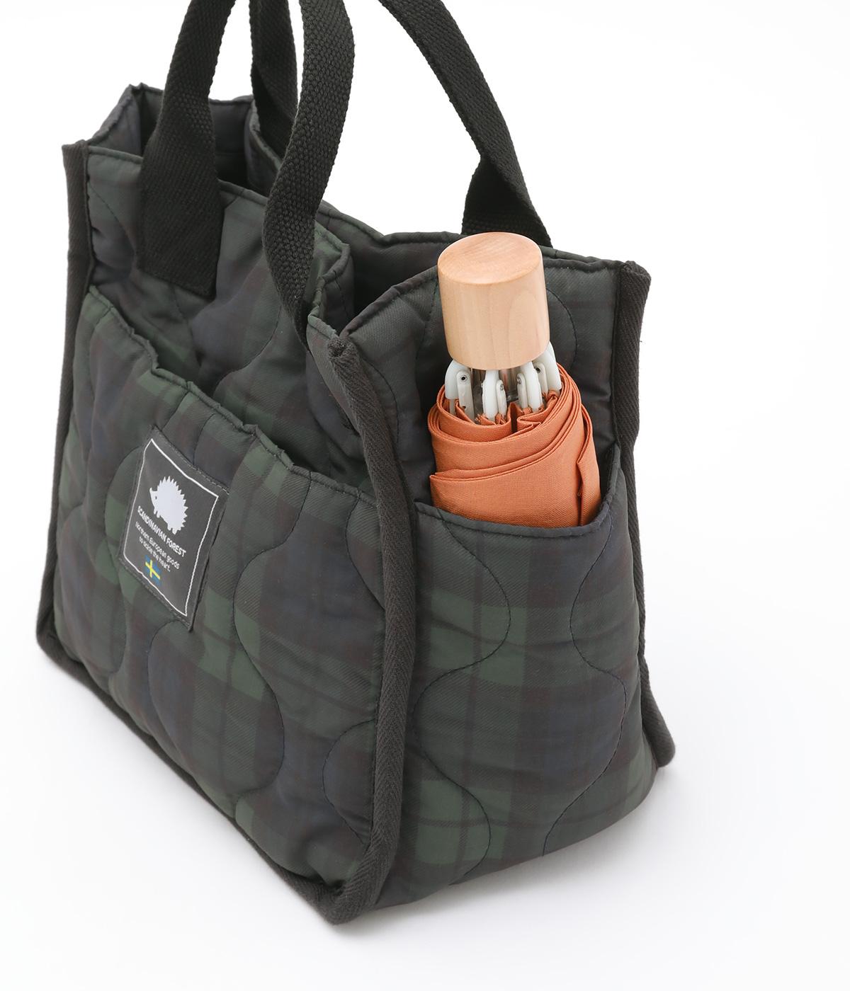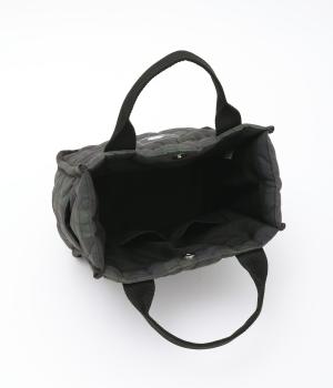 マチが広く見た目以上に収納力の高いトートバッグ。マグネット開閉や内ポケットの標準装備に加え、ペットボトルや折り畳み傘も収納できるサイドポケットつきで使い勝手も抜群です。フロントのタグがデザインポイントに。