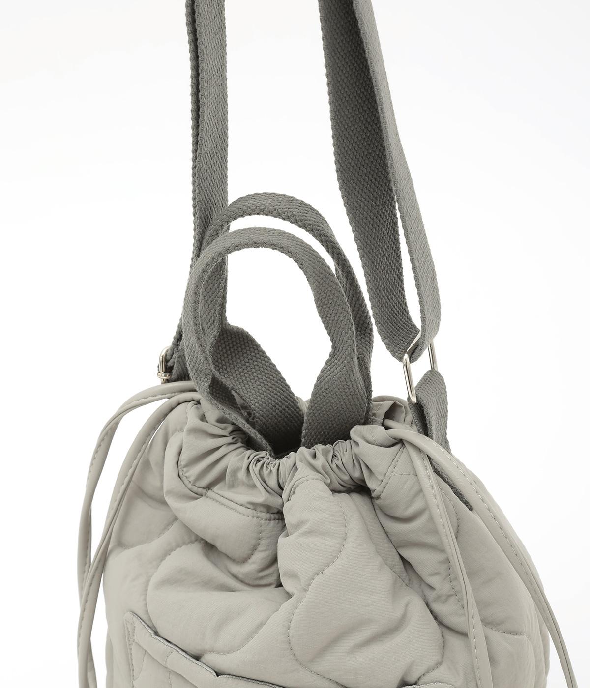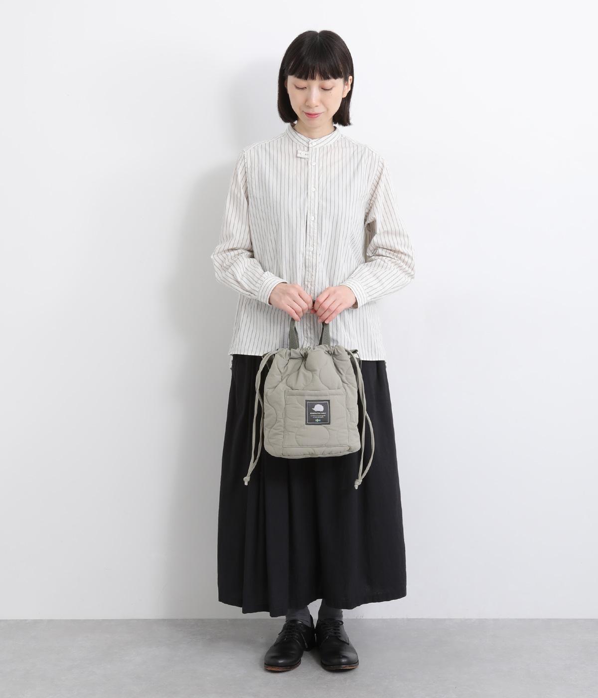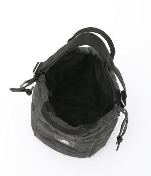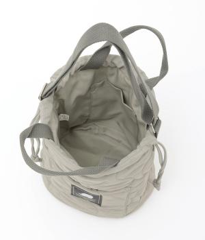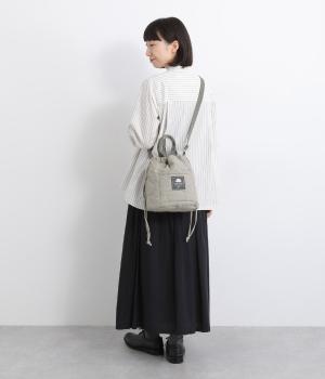 手提げや肩掛け、巾着型とスタイリングや荷物の量に合わせてアレンジがたのしめるトートバッグ。バケツ型のような広いマチや、ワンポイントロゴのついたポケットなど、デザイン性も実用性も兼ね備えています。
