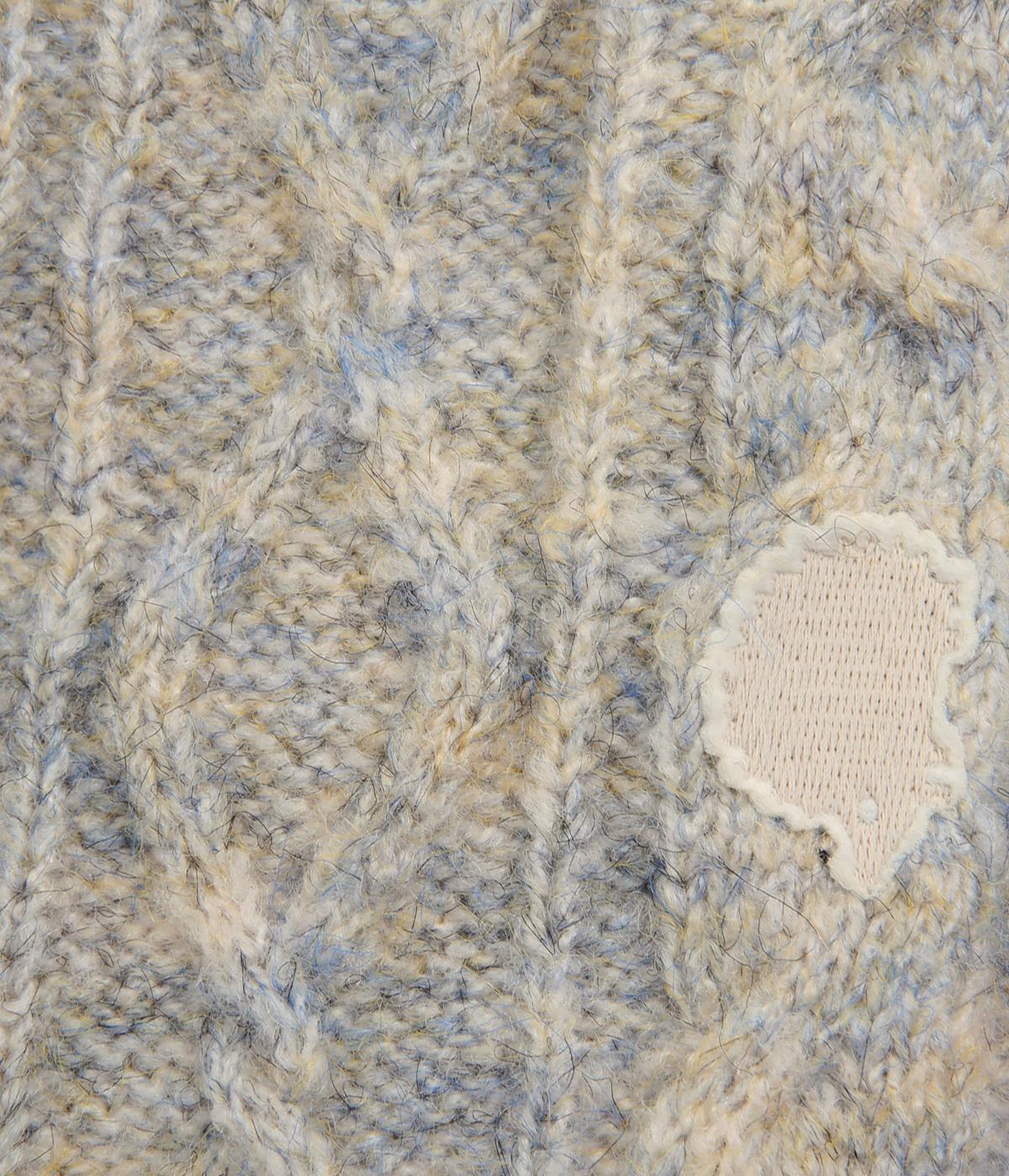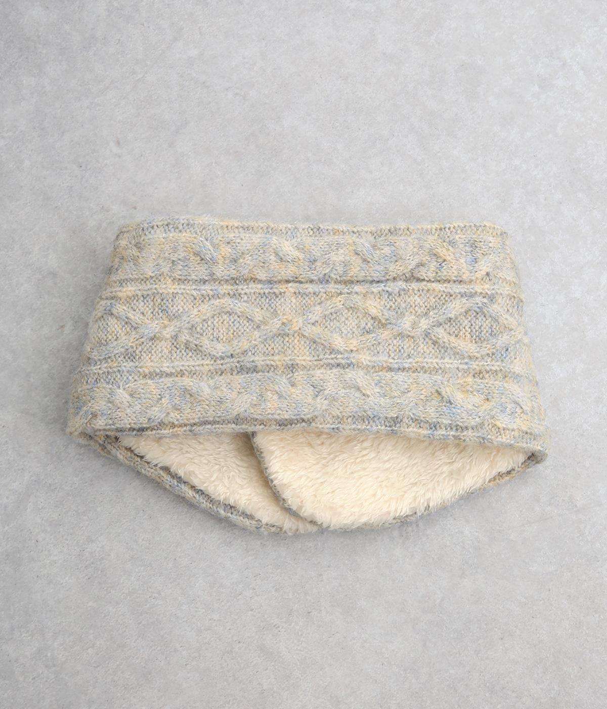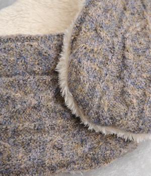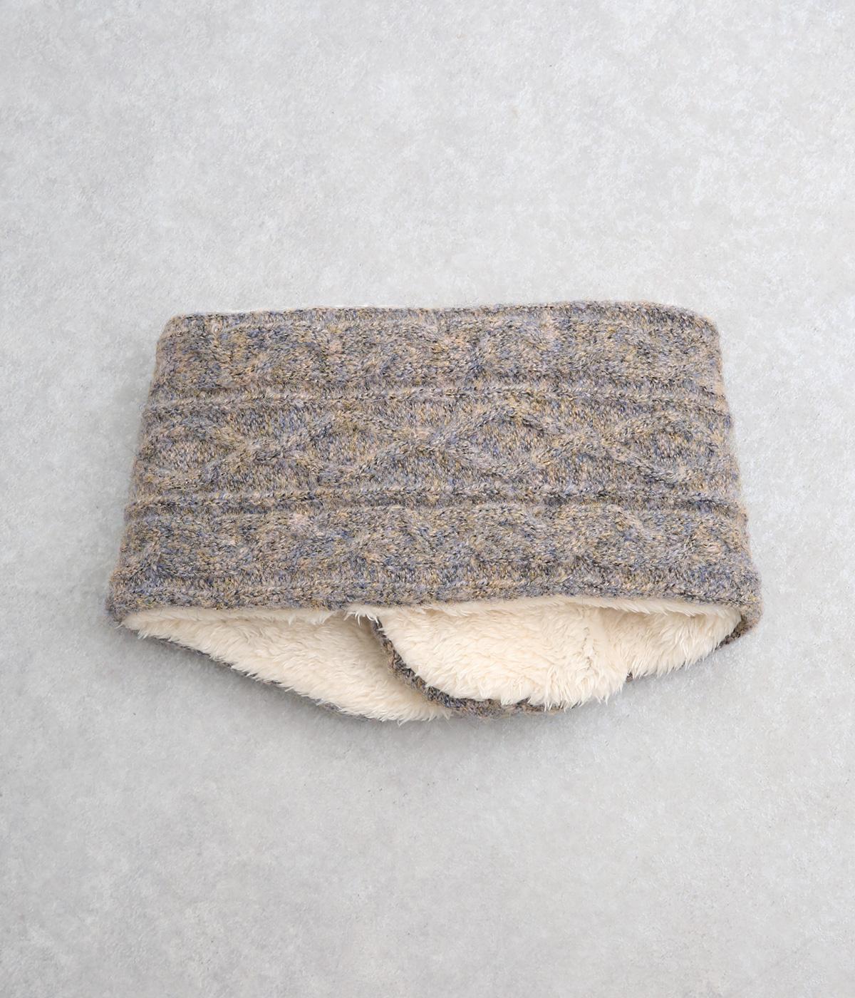 ケーブル編みニットの表地はポリエステル、アクリル、ポリウレタン。肌ざわりの良いボアの裏地はポリエステル。家庭で手洗いができるので、気軽にデイリー使いできるのが高ポイント。