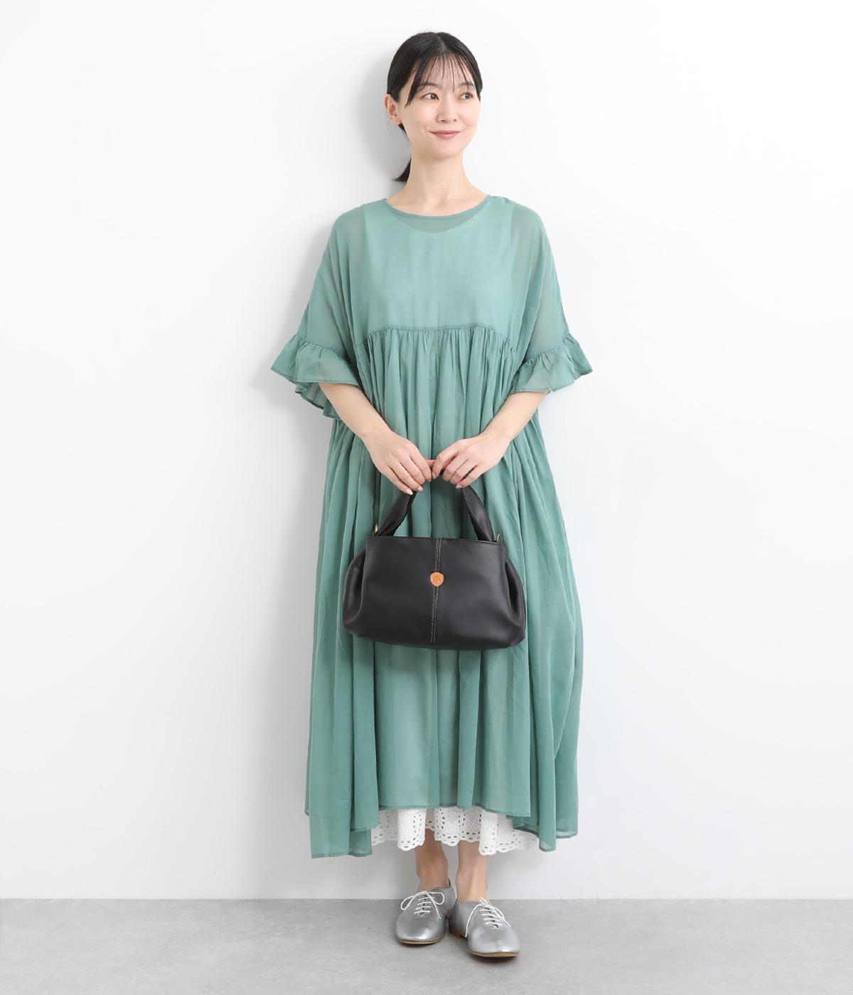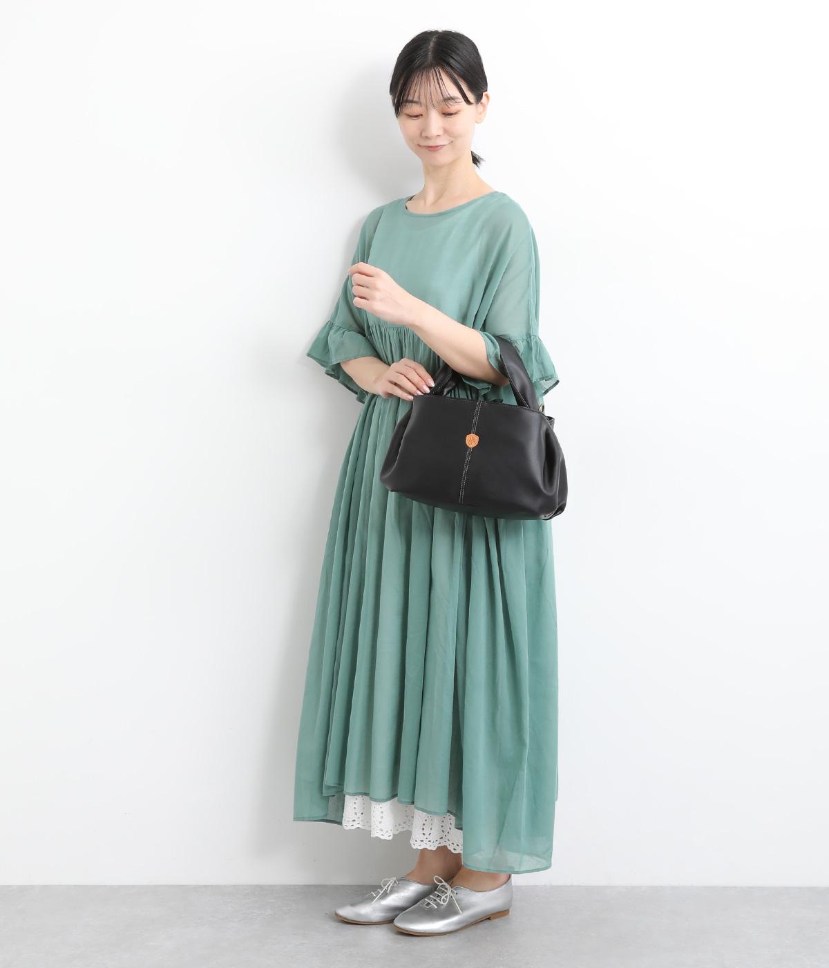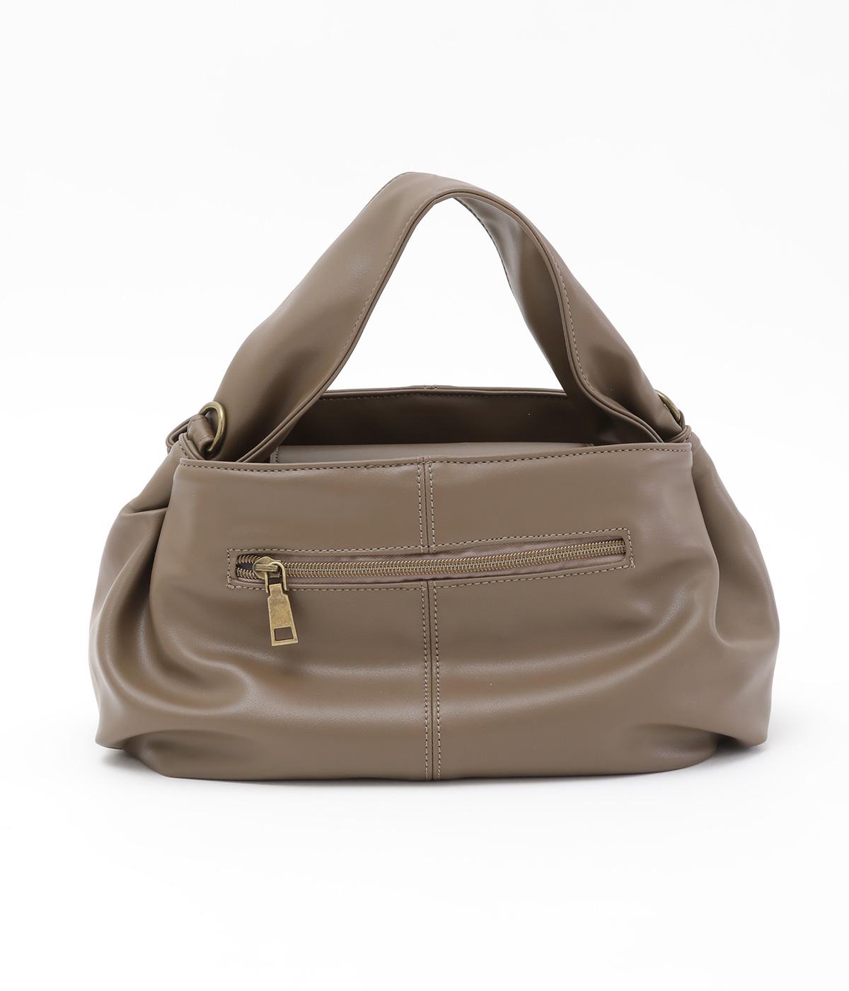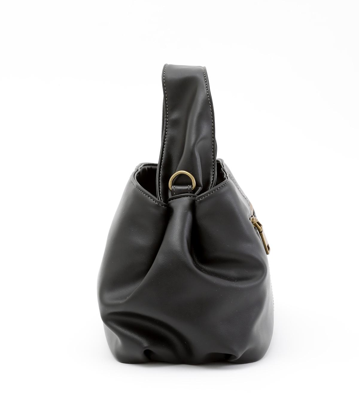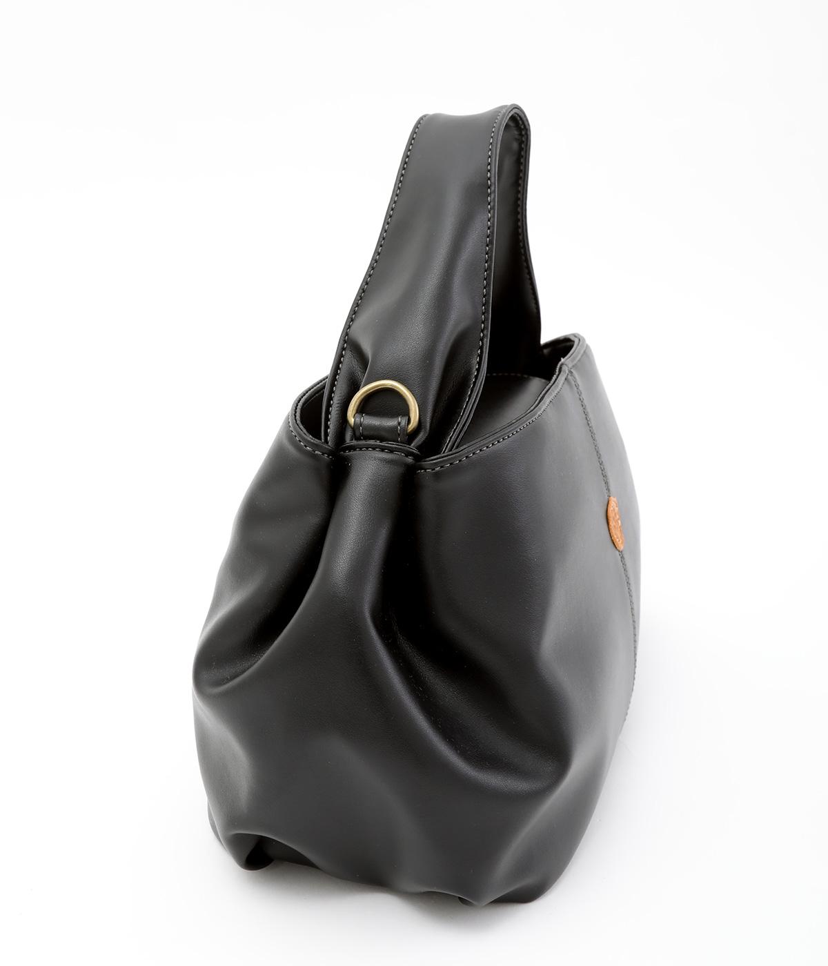 タックがポイントになった、丸みのあるフォルムがかわいい2wayワンハンドルショルダーバッグです。お出かけにちょうどよい、すっきりと使えるサイズ。長財布やポーチなどの荷物が収納できます。