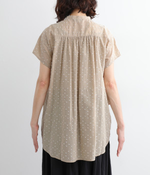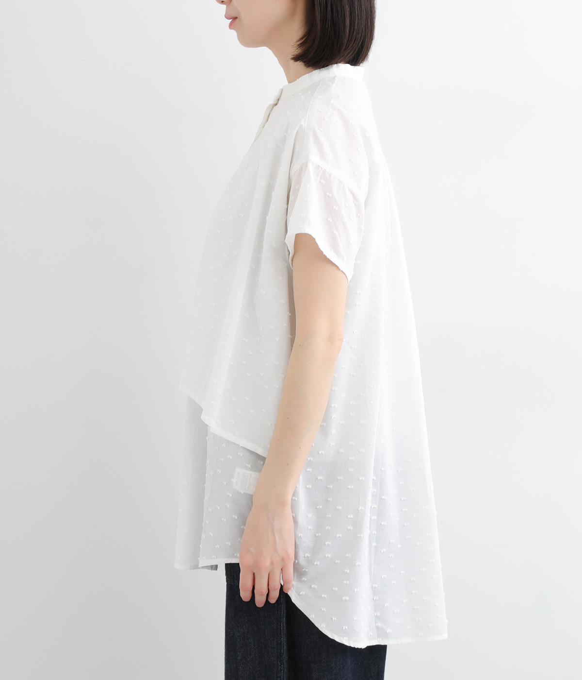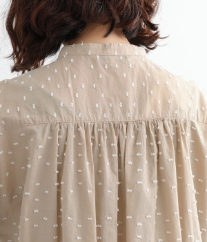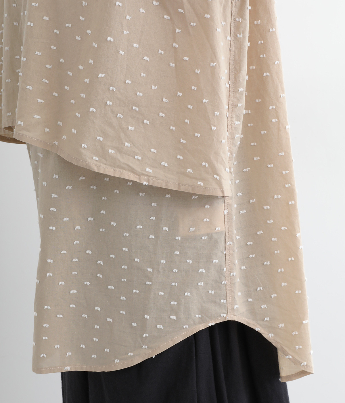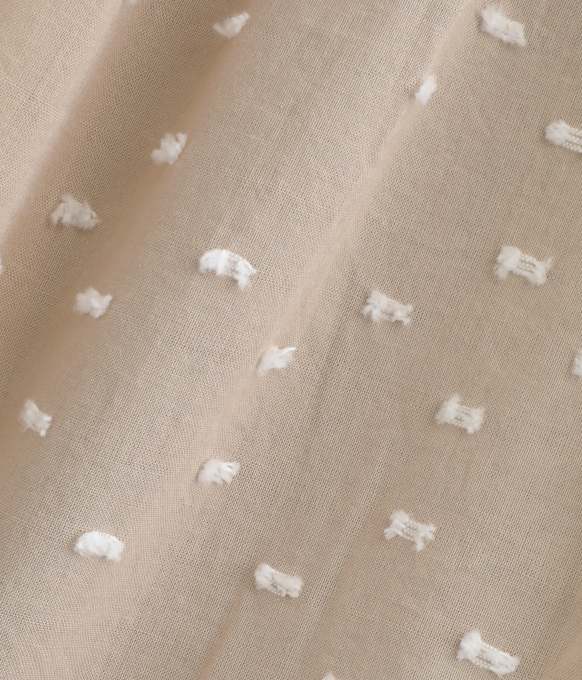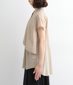 表面感のあるカットトビー織りがアクセントになった、やわらかくて肌ざわりのよいコットン生地を使用しています。ほんのりとシアーな薄手の生地です。