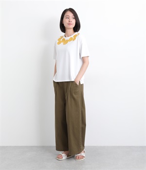 とてもやわらかで着心地のいい綿混生地を採用しています。ほんのり冷感のあるさらりとした肌触りが心地よく、すこしクタッとした質感もグッドポイント。