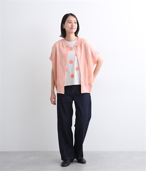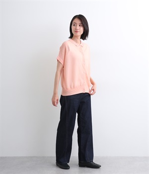 強撚糸のハイツイストですっきり涼し気に仕上げた混紡ニットを使用しています。ドライタッチで肌触りも良く、やわらかで適度な落ち感もあります。