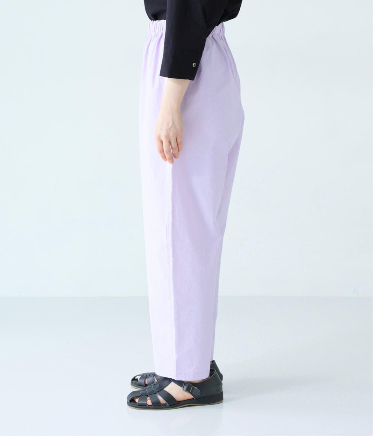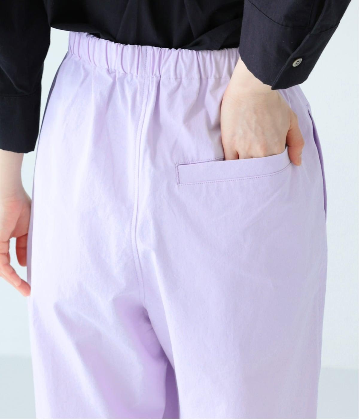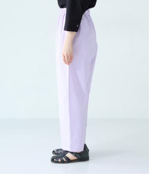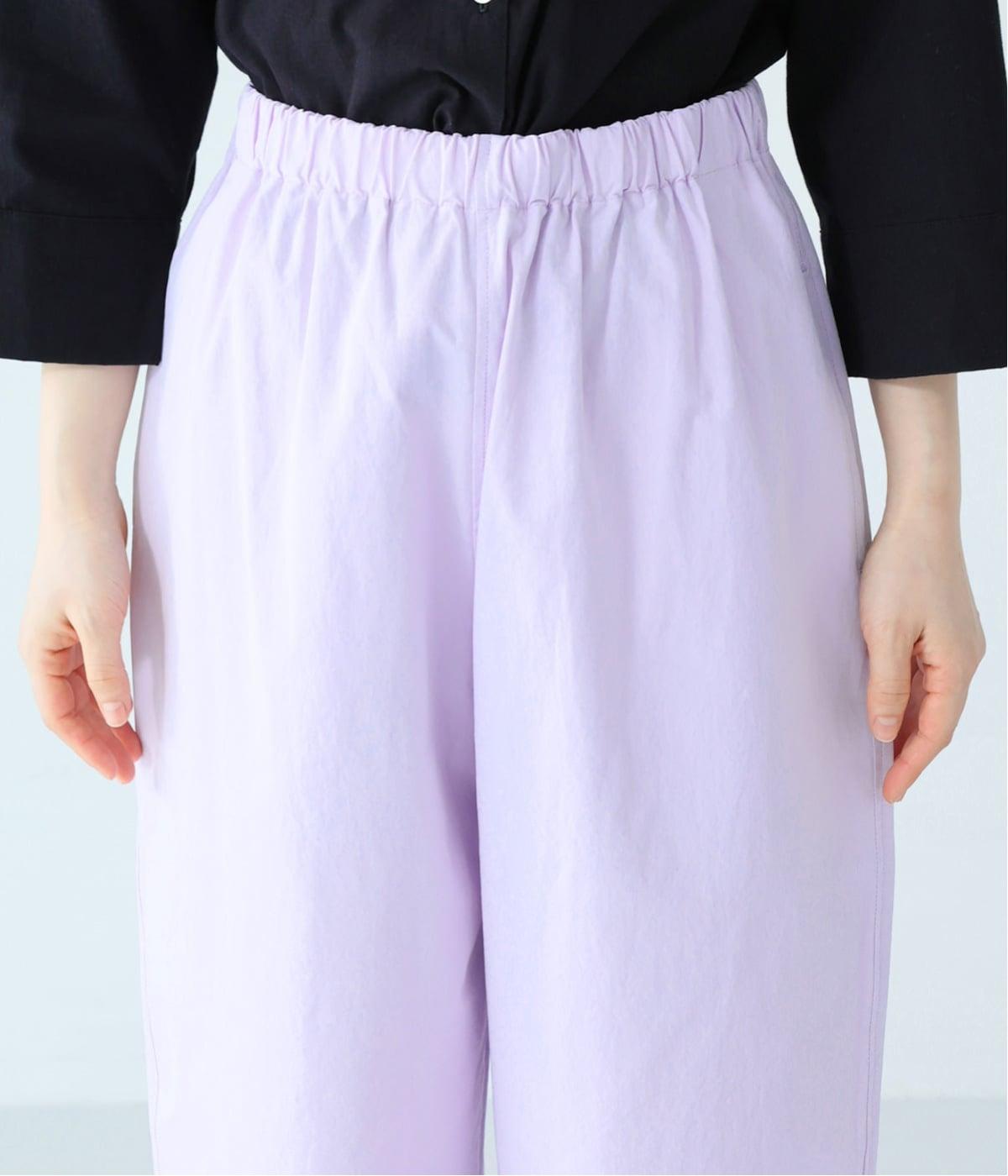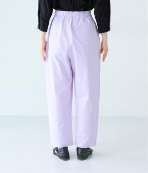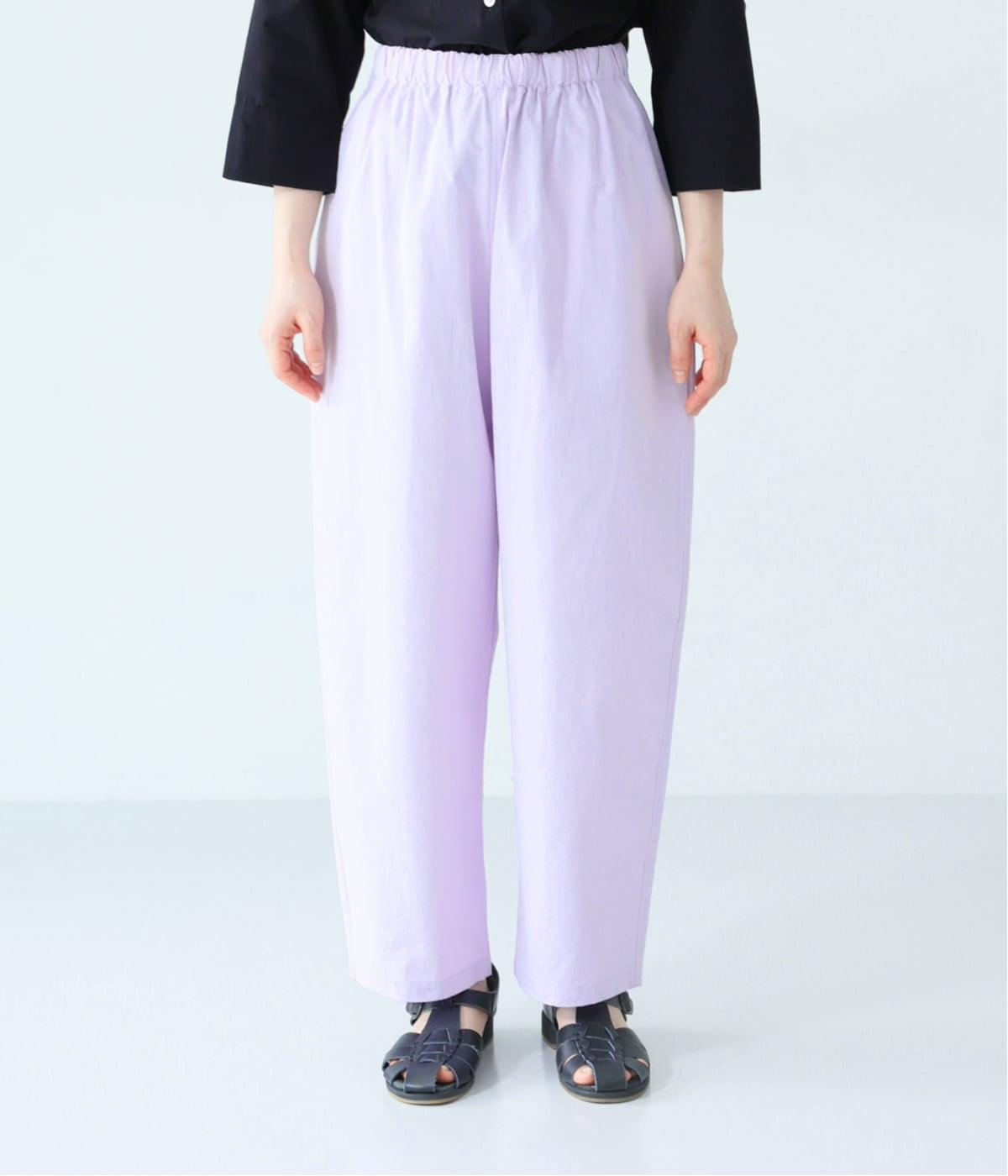 腰まわりにゆとりをもたせつつ裾に向かってやや細くなるシルエット。シンプルながらスタイリングにさりげない存在感を加えます。ゴム仕様のウエストには内紐を配して、リラックス感のある穿き心地に整えました。