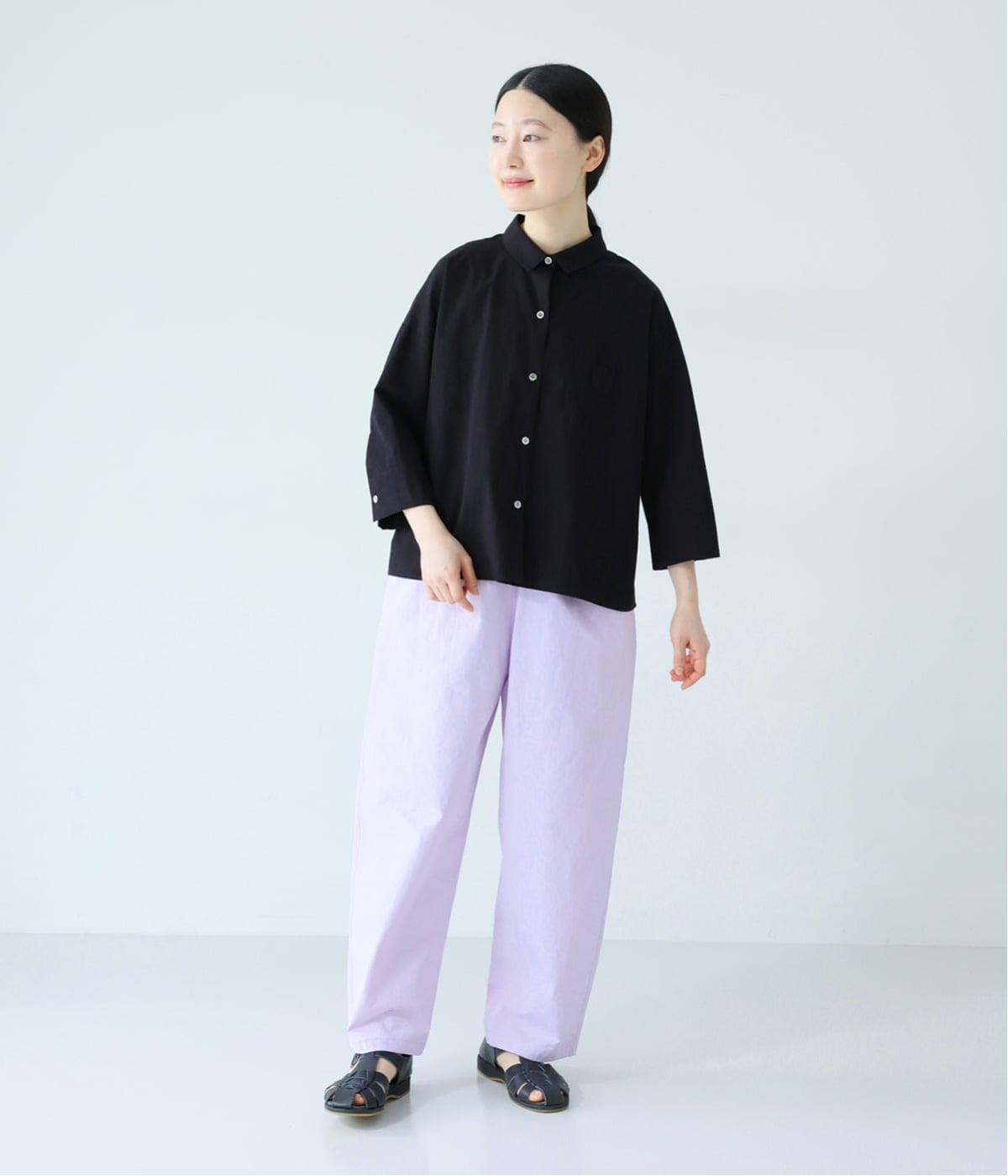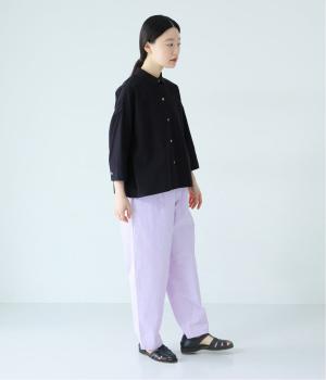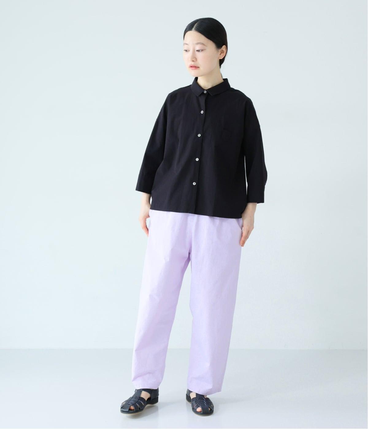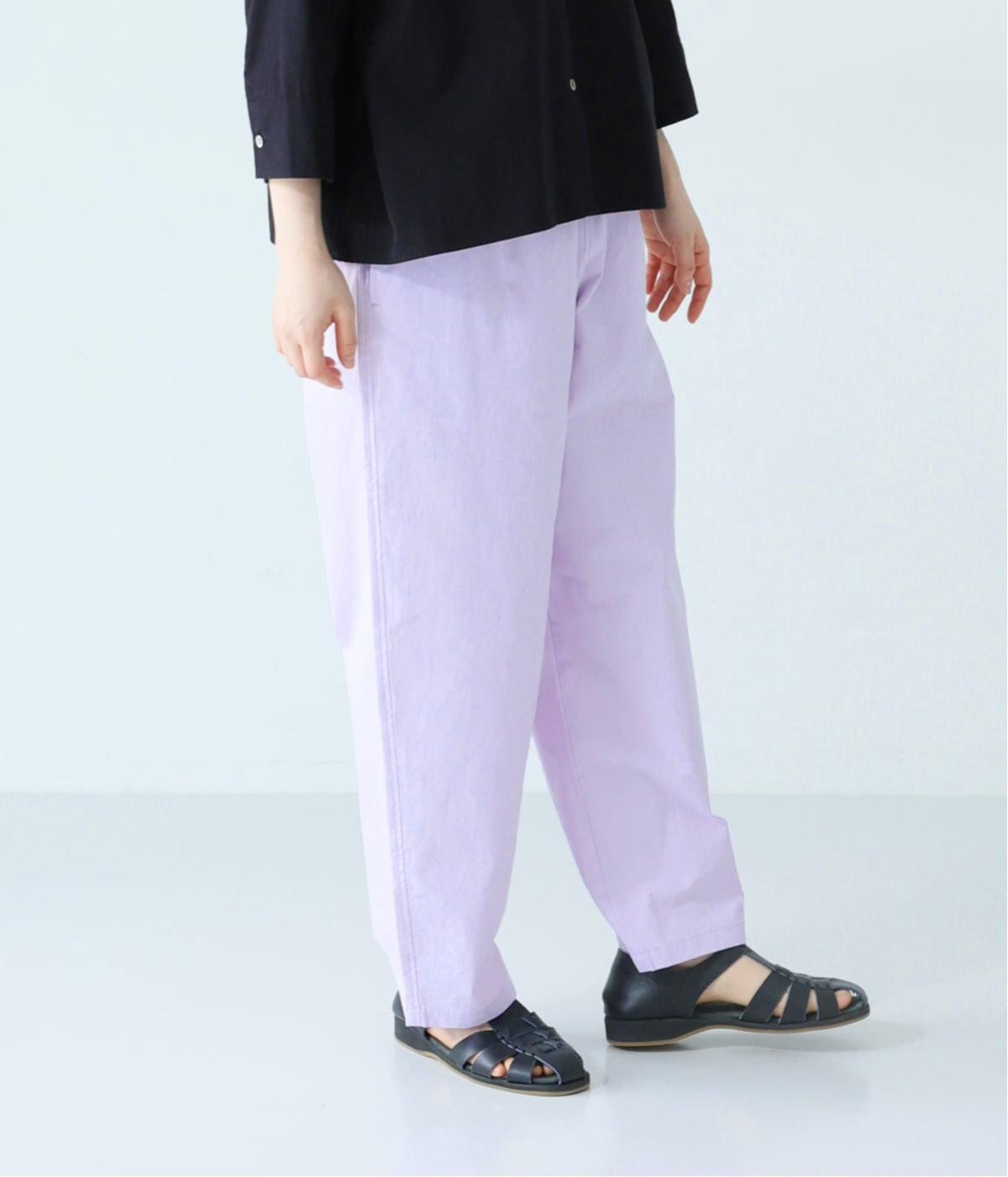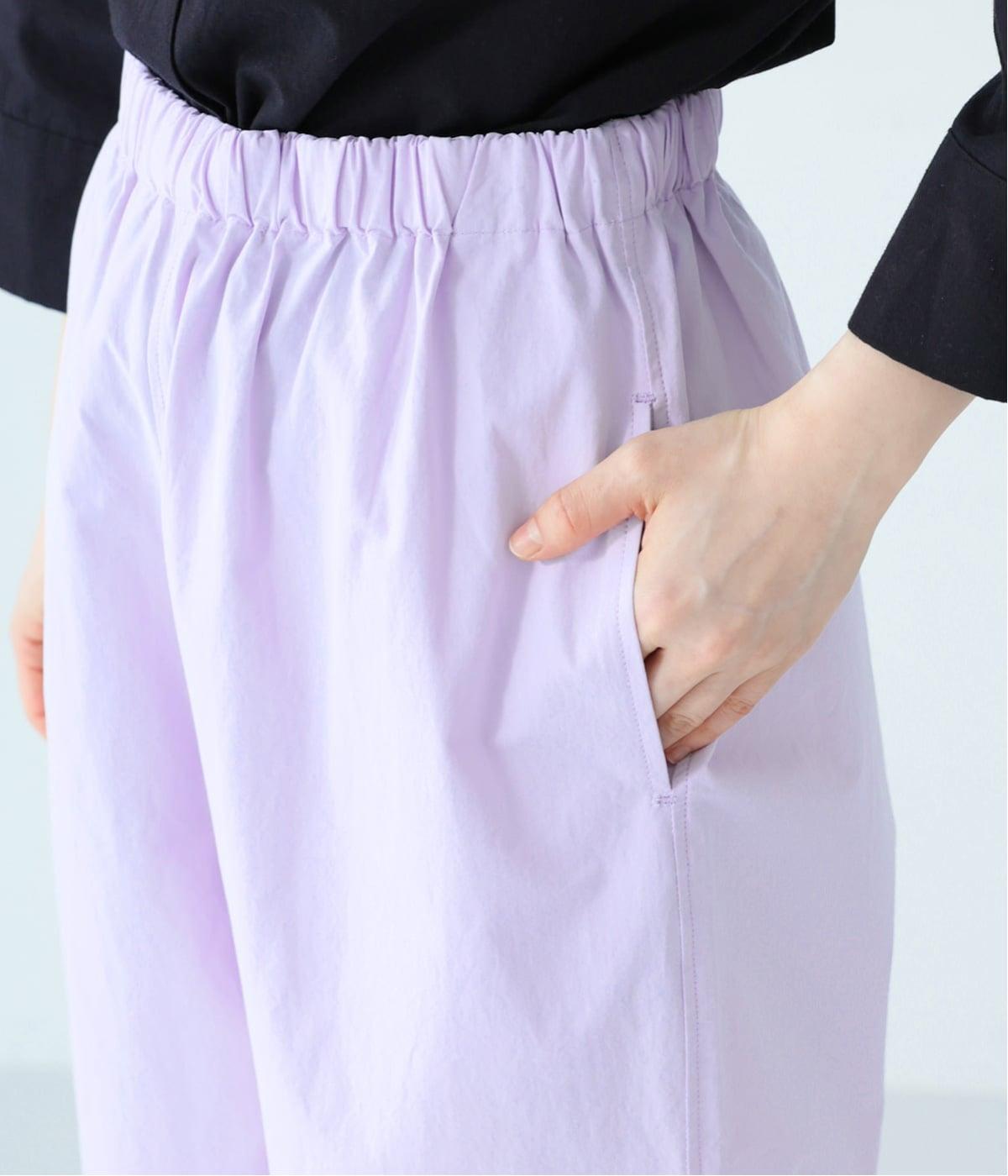 腰まわりにゆとりをもたせつつ裾に向かってやや細くなるシルエット。シンプルながらスタイリングにさりげない存在感を加えます。ゴム仕様のウエストには内紐を配して、リラックス感のある穿き心地に整えました。