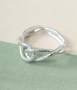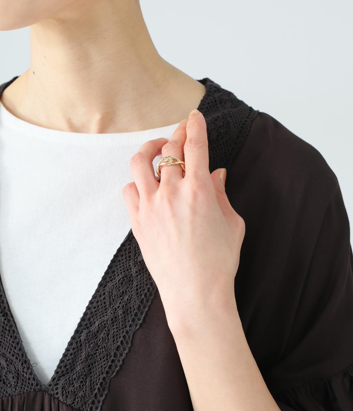 線を絡めたようなタングルデザインが印象的なリング。立体感のあるフォルムが指もとにほどよい存在感を添えます。シンプルながらも動きのある表情で、装いにさりげないアクセントを加えてくれるアイテムです。