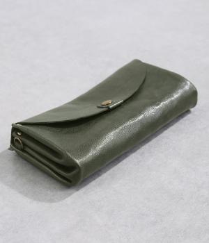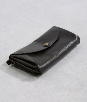 中身の出し入れがスムーズな、アコーディオン仕様のロングウォレットです。複数のカード入れと、お札入れやコインポケットをたっぷりと備えた収納力の高さが魅力です。仕切りが多く、小さめのスマートフォンも収まるので、お財布ひとつでお出かけできる便利な設計。革の質感を活かした、シンプルで洗練されたデザインです。