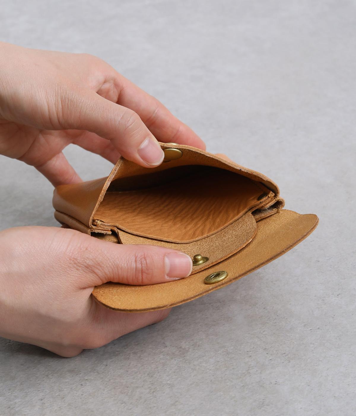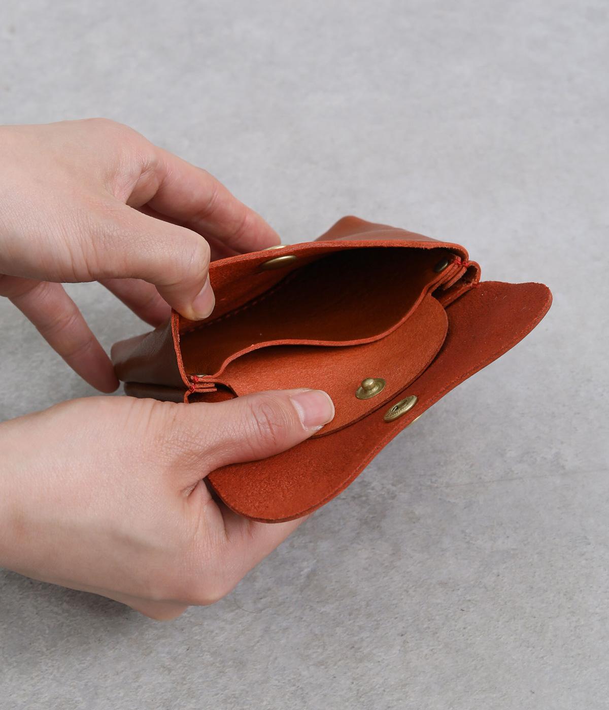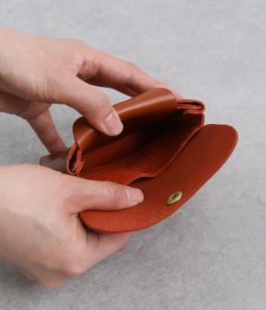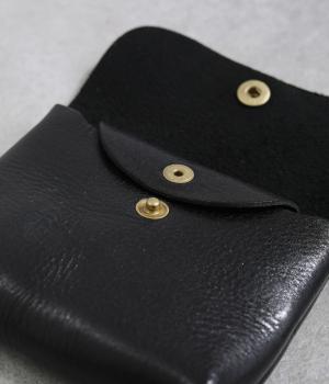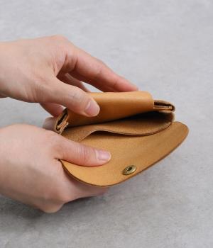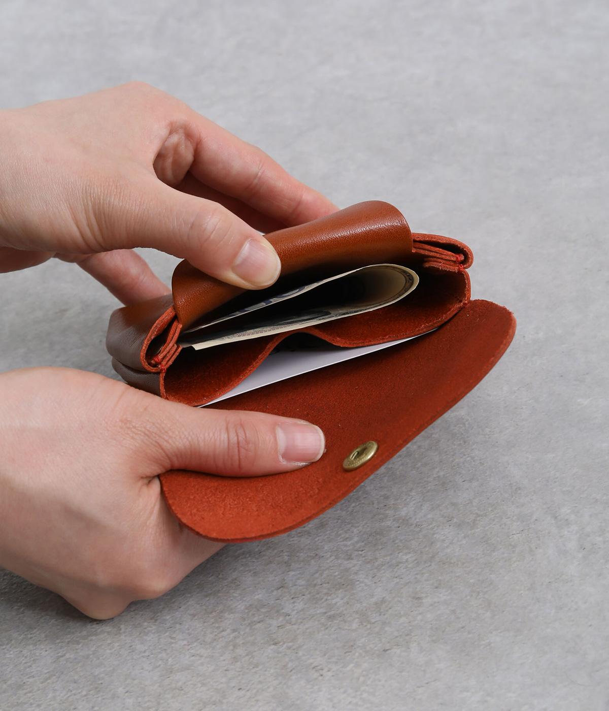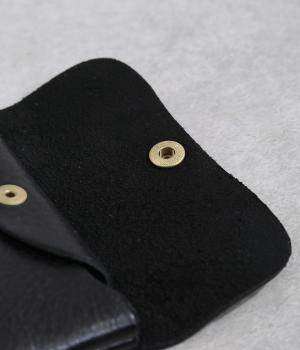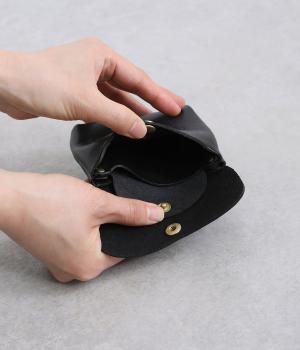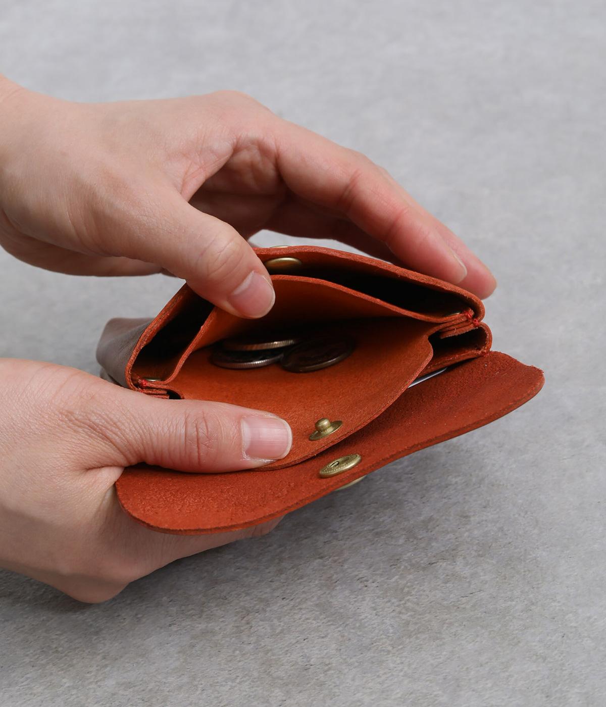 コンパクトなサイズ感ながら、収納力をしっかり備えたミニウォレット。内側には仕切りポケットを設け、小銭やカード、折りたたんだお札などを整理して収納できます。フラップ部分はスナップボタン仕様で、開閉もスムーズ。革の質感を活かした、シンプルで洗練された印象のデザインです。