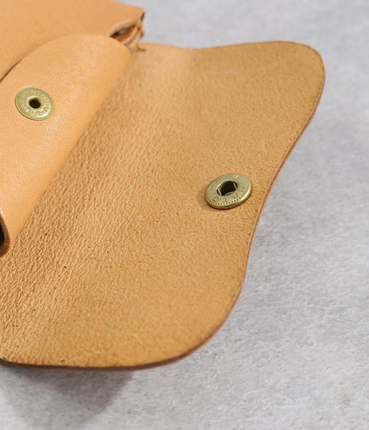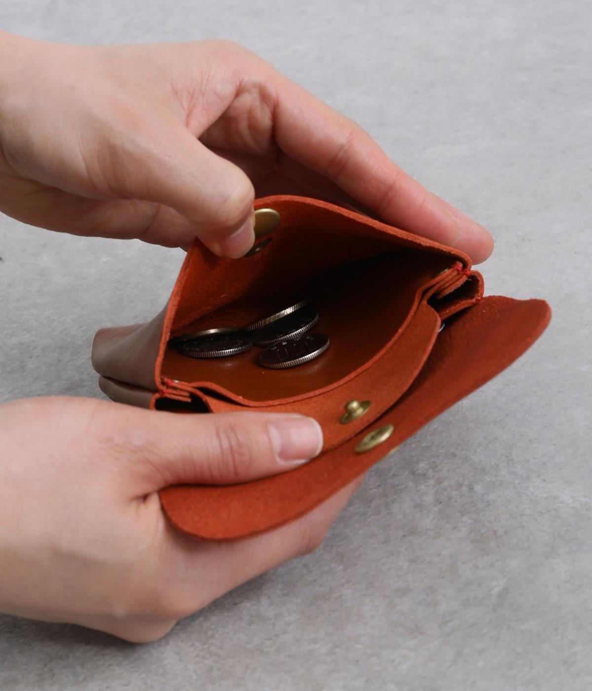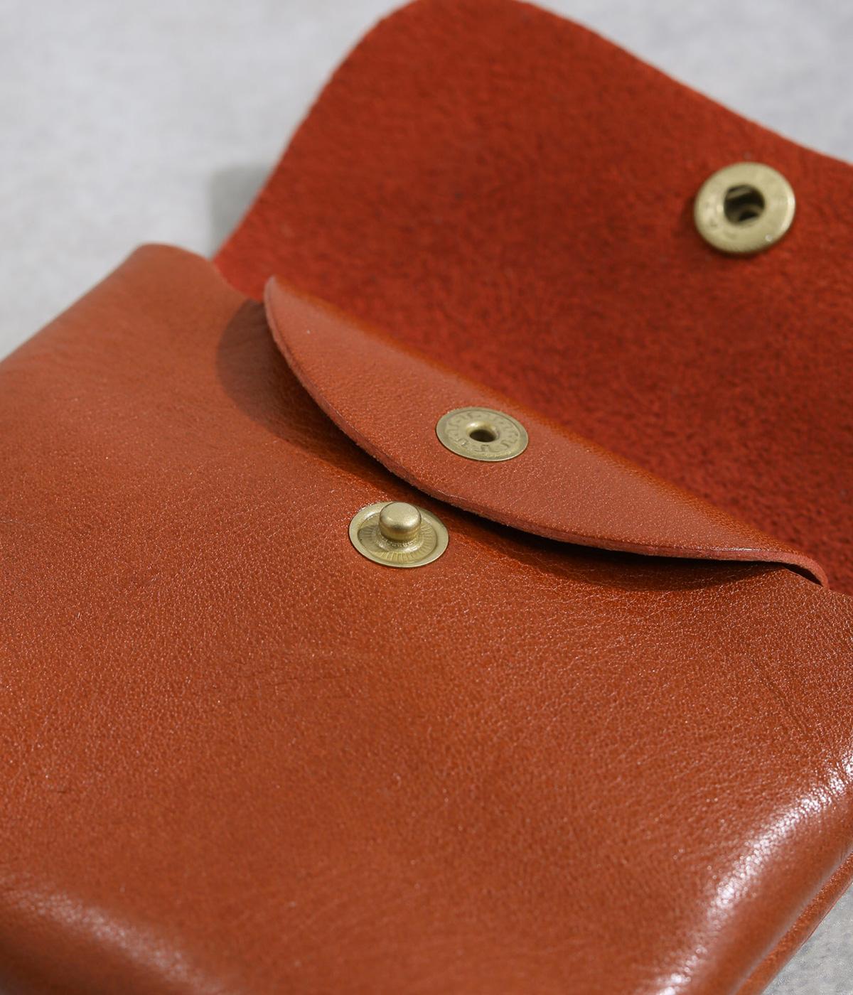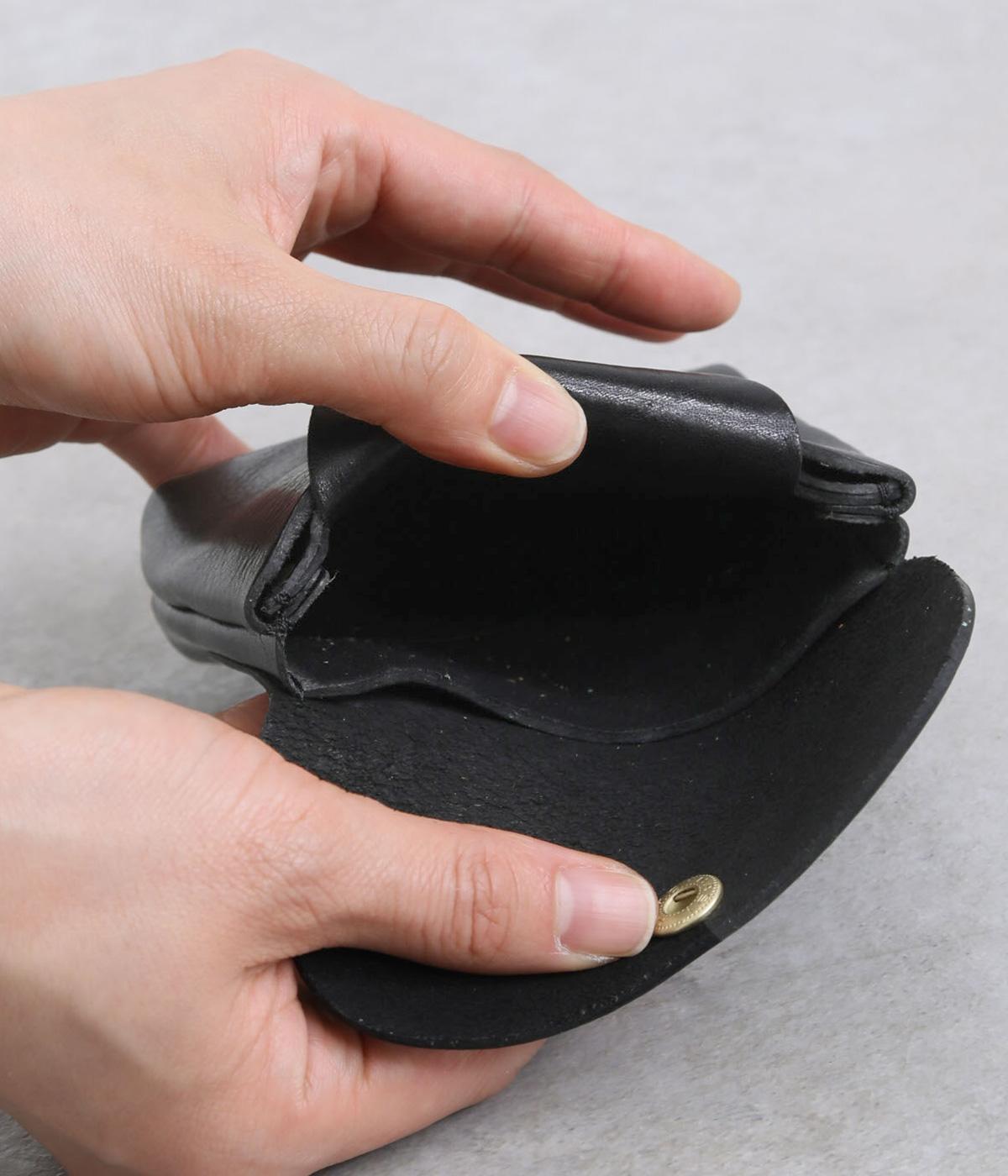 コンパクトなサイズ感ながら、収納力をしっかり備えたミニウォレット。内側には仕切りポケットを設け、小銭やカード、折りたたんだお札などを整理して収納できます。フラップ部分はスナップボタン仕様で、開閉もスムーズ。革の質感を活かした、シンプルで洗練された印象のデザインです。