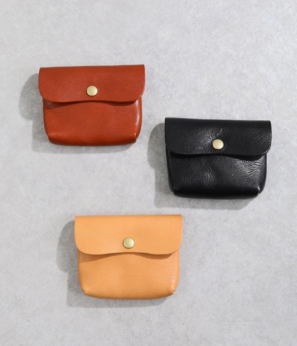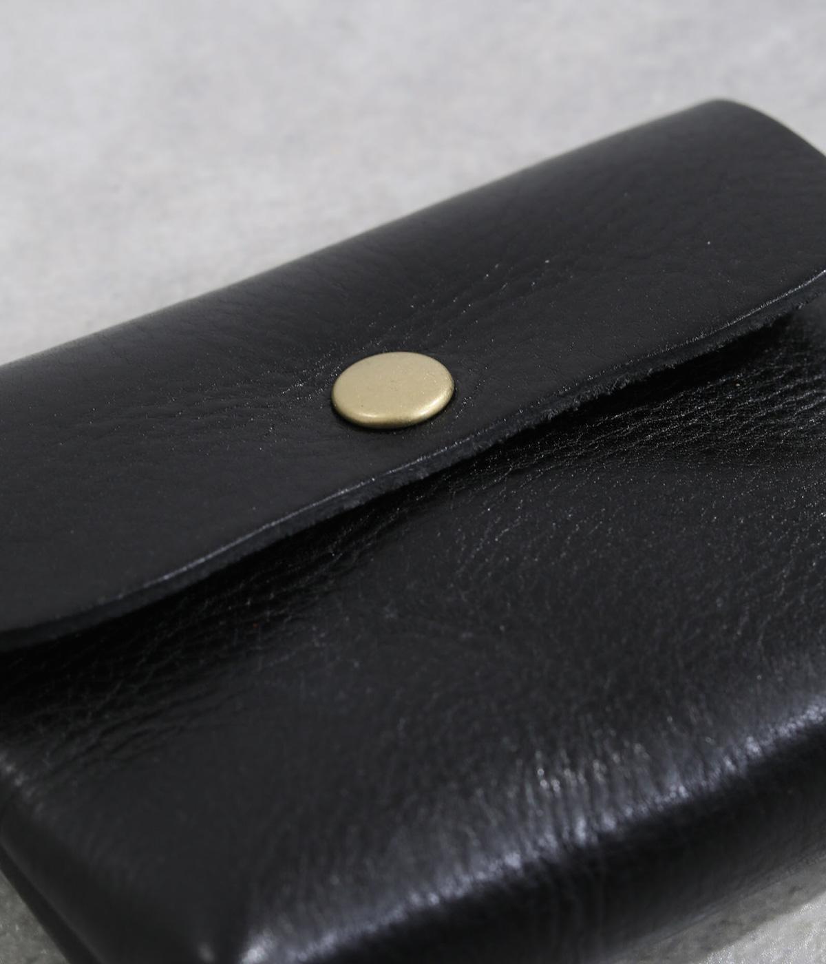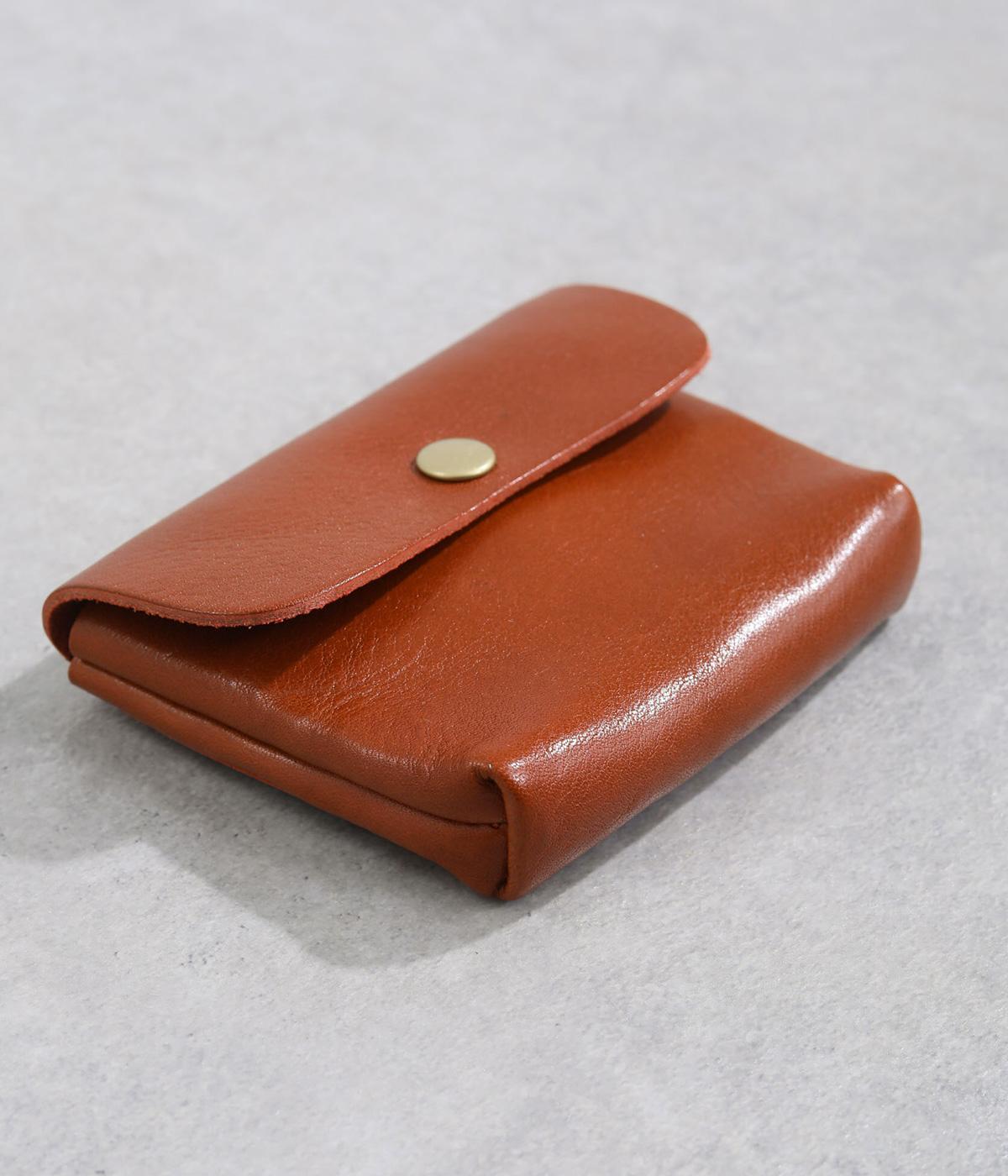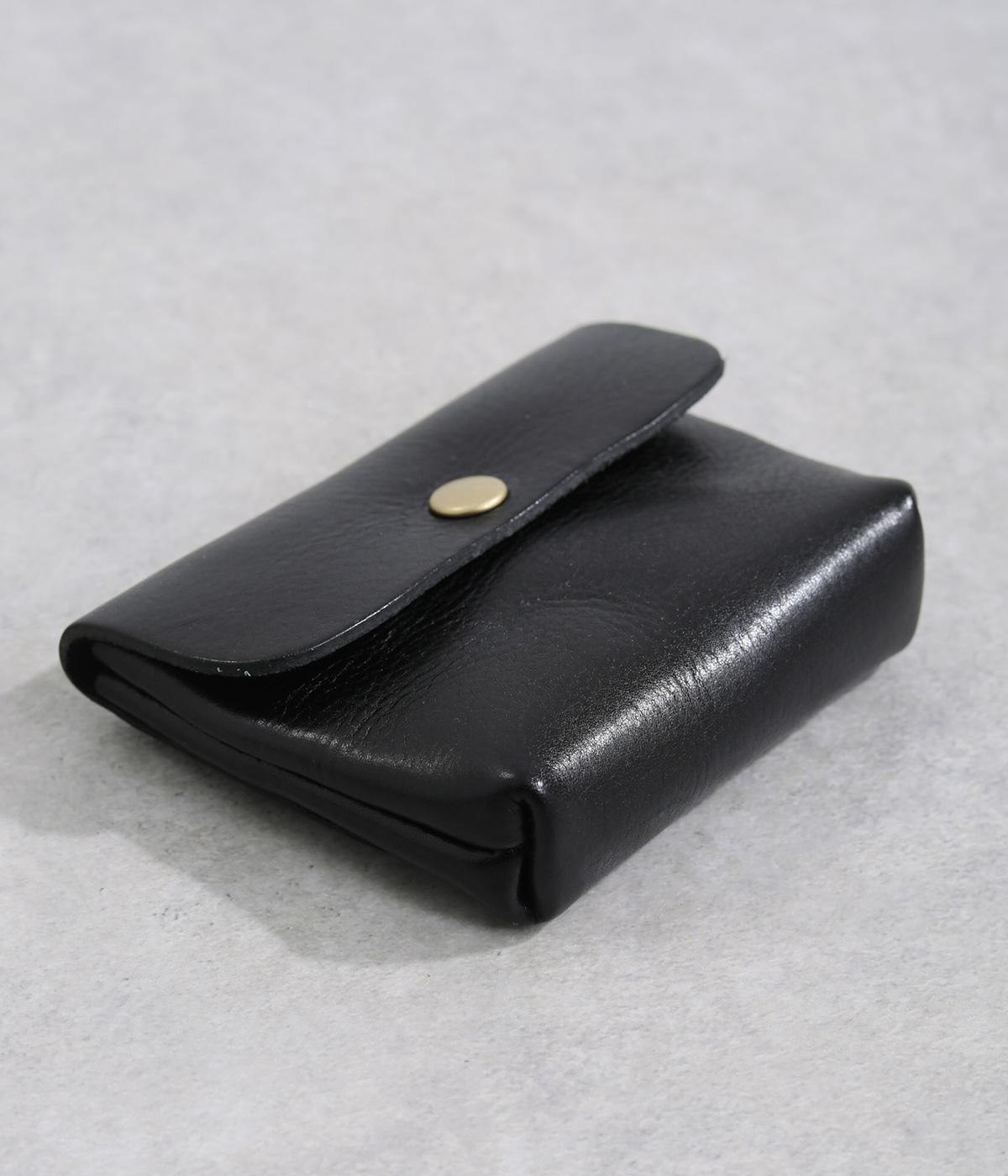 コンパクトなサイズ感ながら、収納力をしっかり備えたミニウォレット。内側には仕切りポケットを設け、小銭やカード、折りたたんだお札などを整理して収納できます。フラップ部分はスナップボタン仕様で、開閉もスムーズ。革の質感を活かした、シンプルで洗練された印象のデザインです。