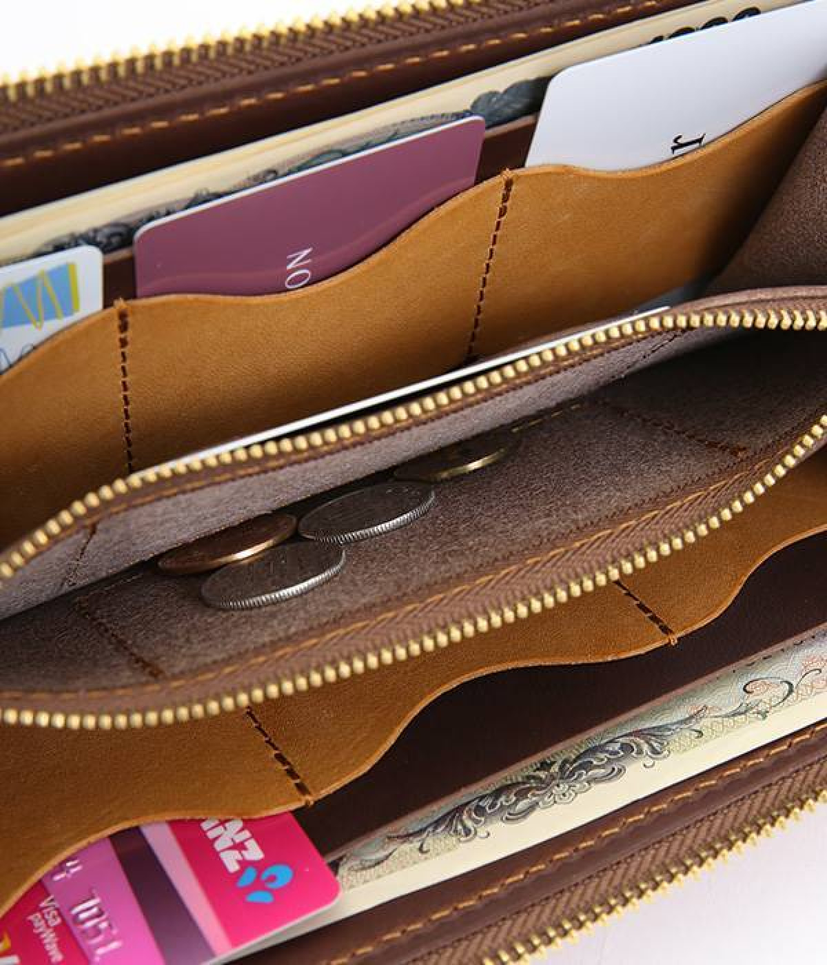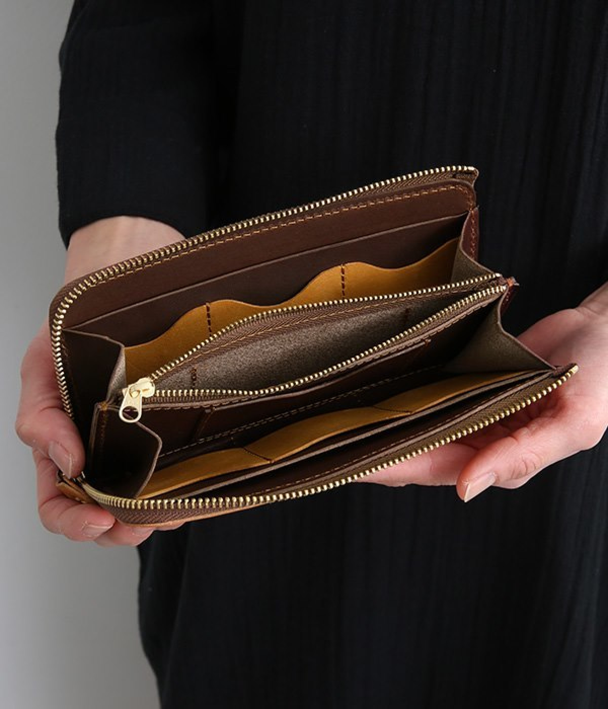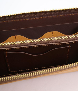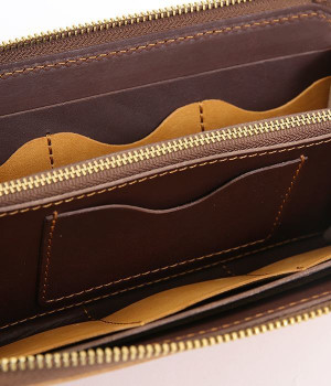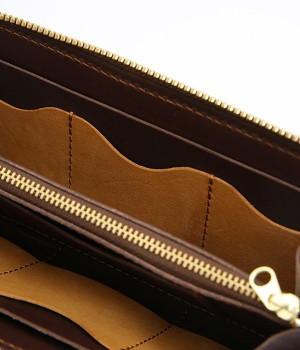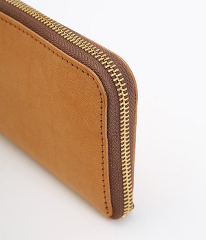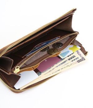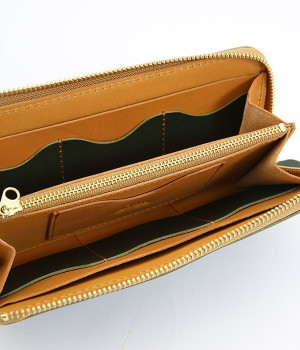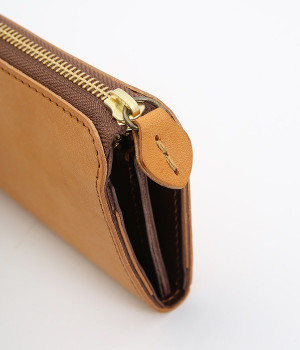 大きくひらくL字のファスナーで使い勝手の良いロングウォレットです。カードポケットを縦型にすることで、見やすく取り出しやすい構造。出し入れが高頻度の小銭の収納スペースは、センターにレイアウトした実用設計です。使い込むほどに柔らかくさらに艶やかさを増していく、ハリと上品なツヤを持つレザーを使用。あえて残したレザー本来のムラ感が味わい深いニュアンスをプラスします。シンプルなデザインは男女問わず使えるため、ギフトにもどうぞ。