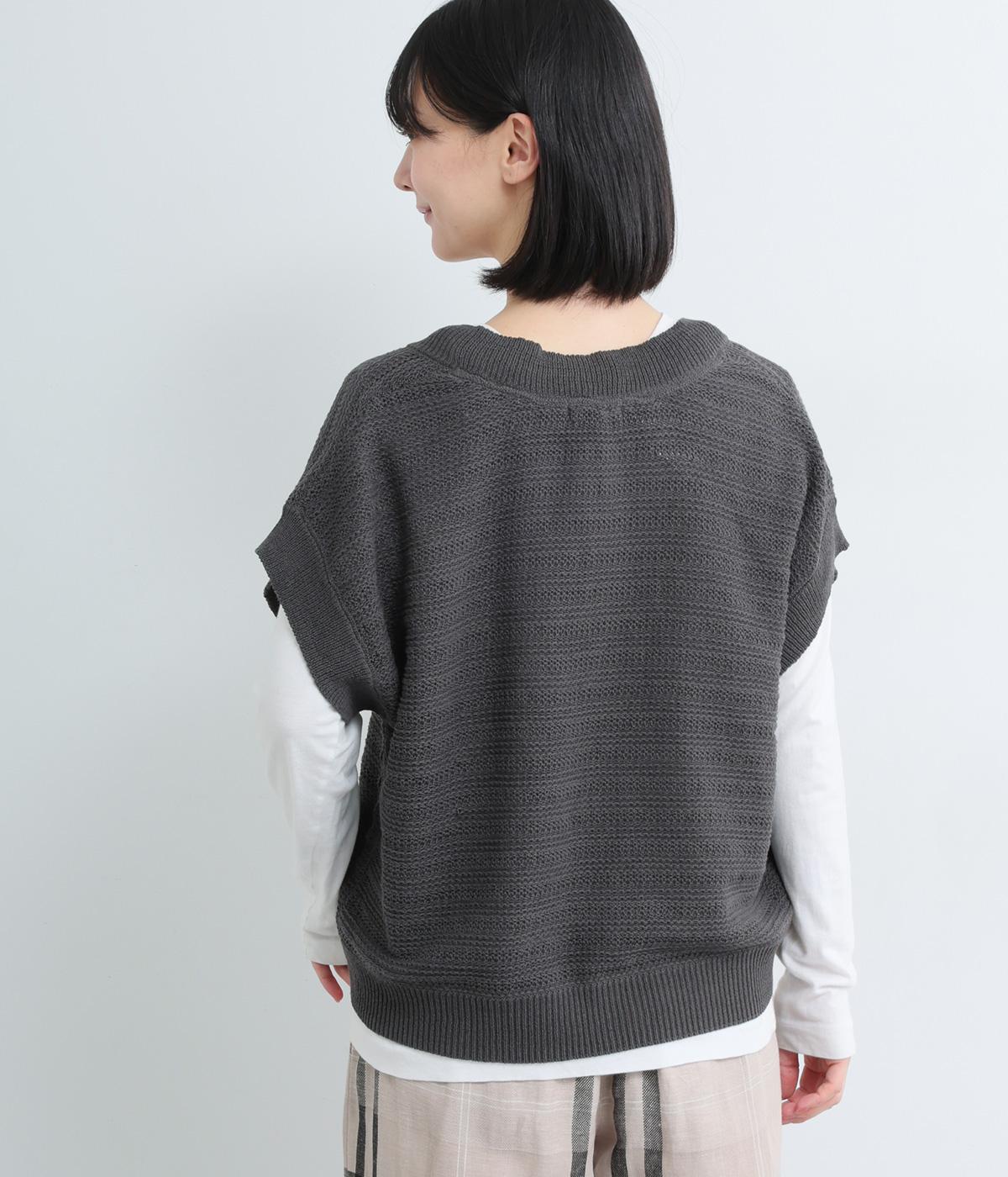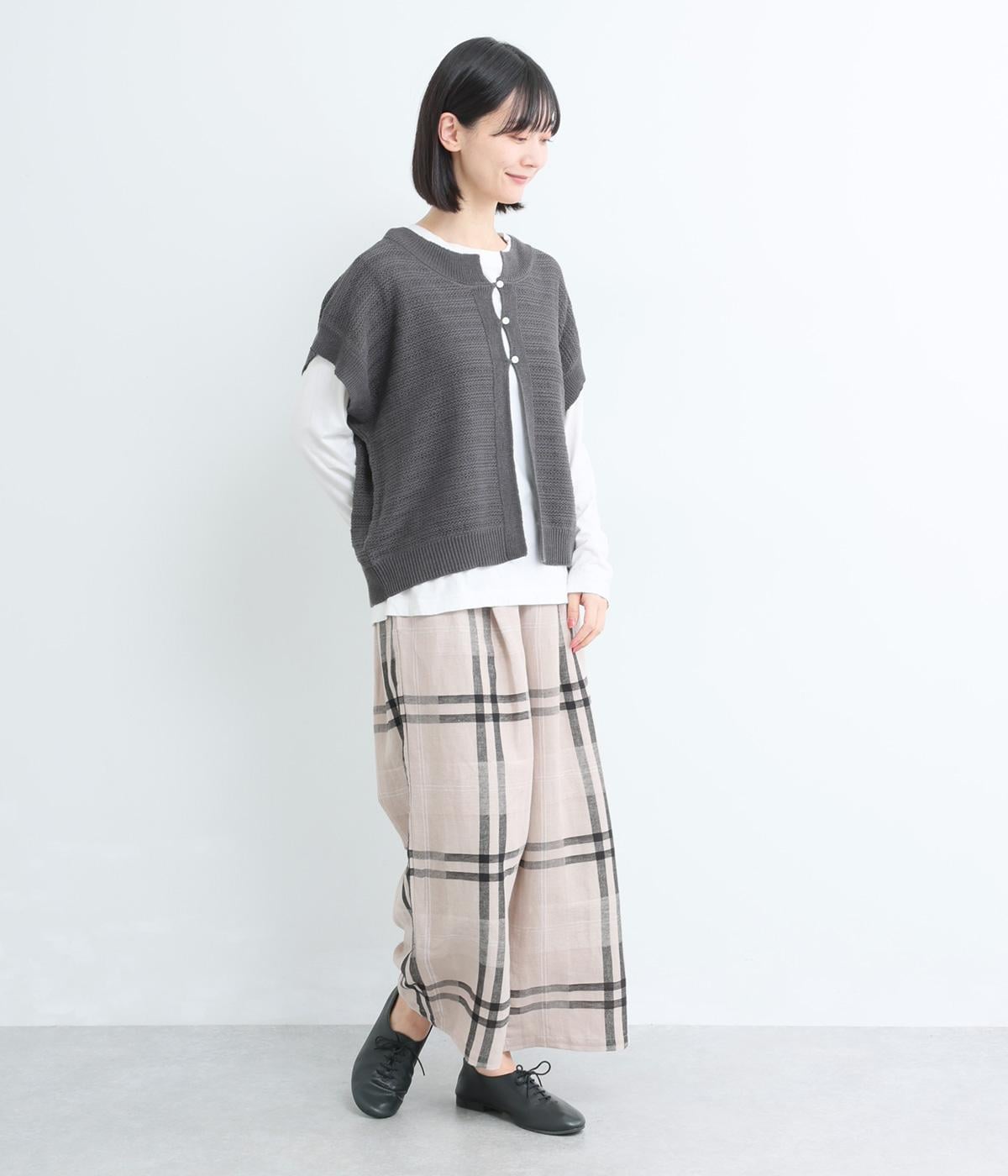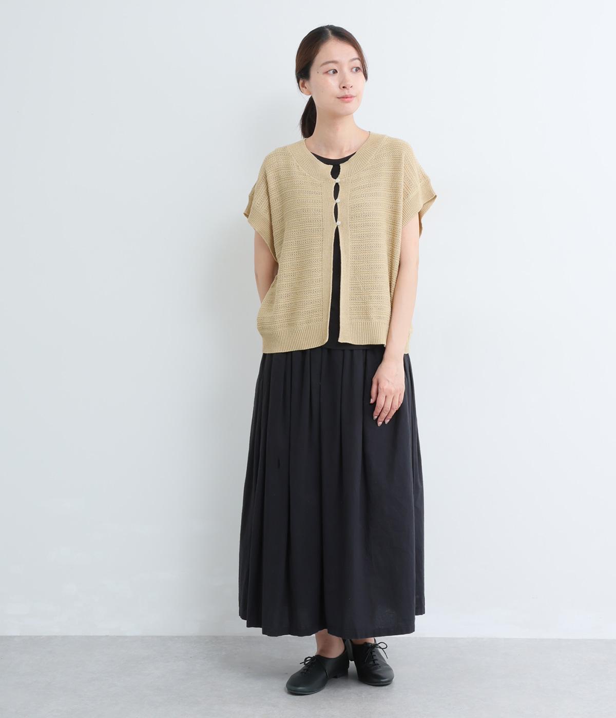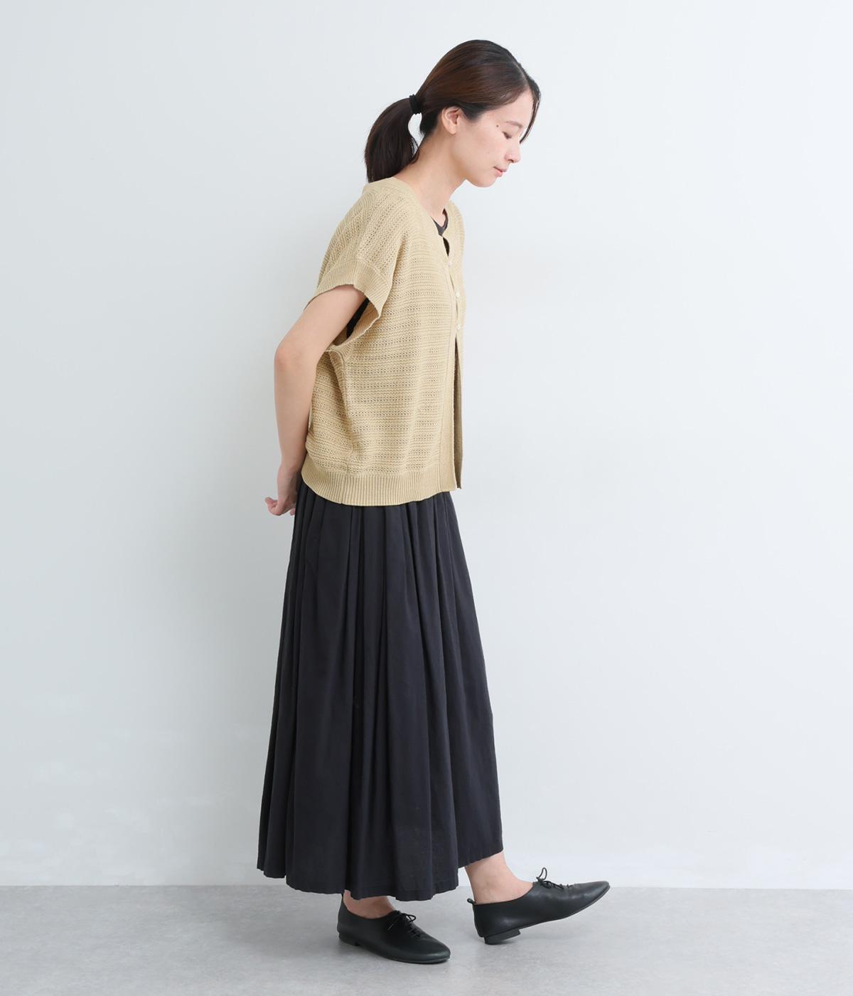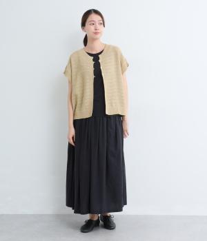 かぎ編みによる適度な抜け感がこなれた印象を運ぶカーディガン。ナチュラルな風合いでラフに羽織りやすく、スタイリングの印象チェンジとしても活躍。ボタンを上に配しているのでワンピースなどとも好相性です。