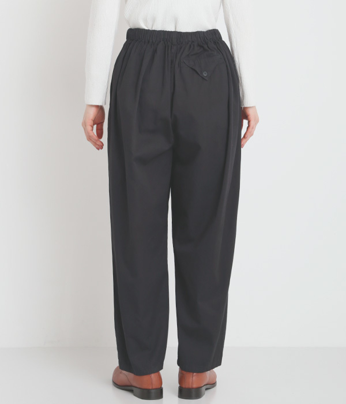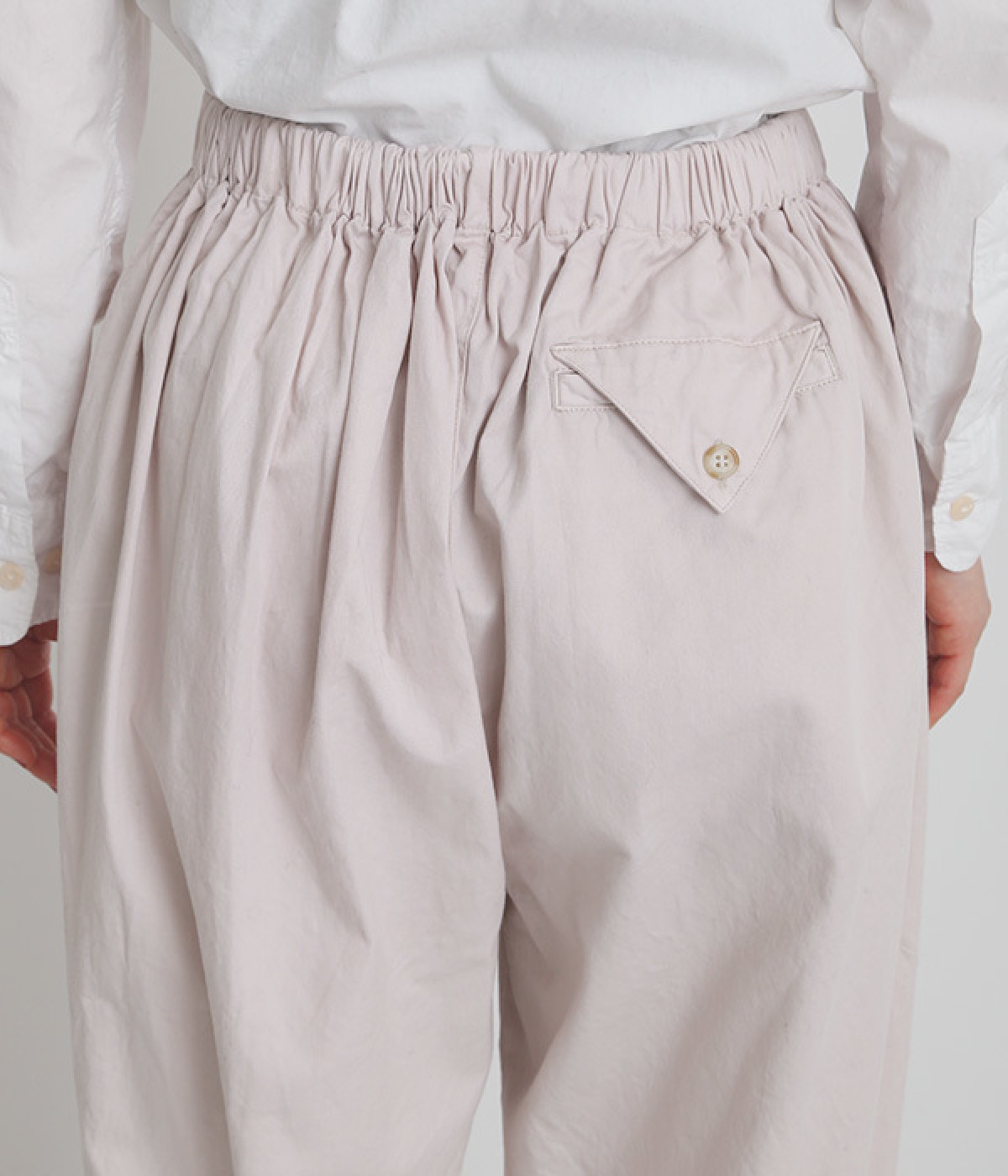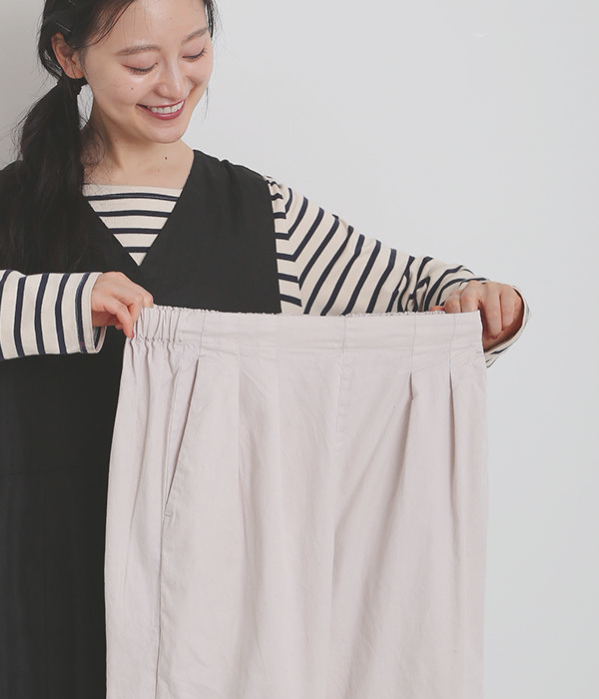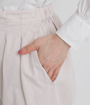 ウエストはフィット感が心地よいバックゴム仕様で、内紐での調整も可能