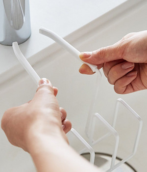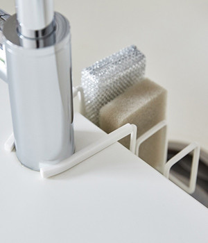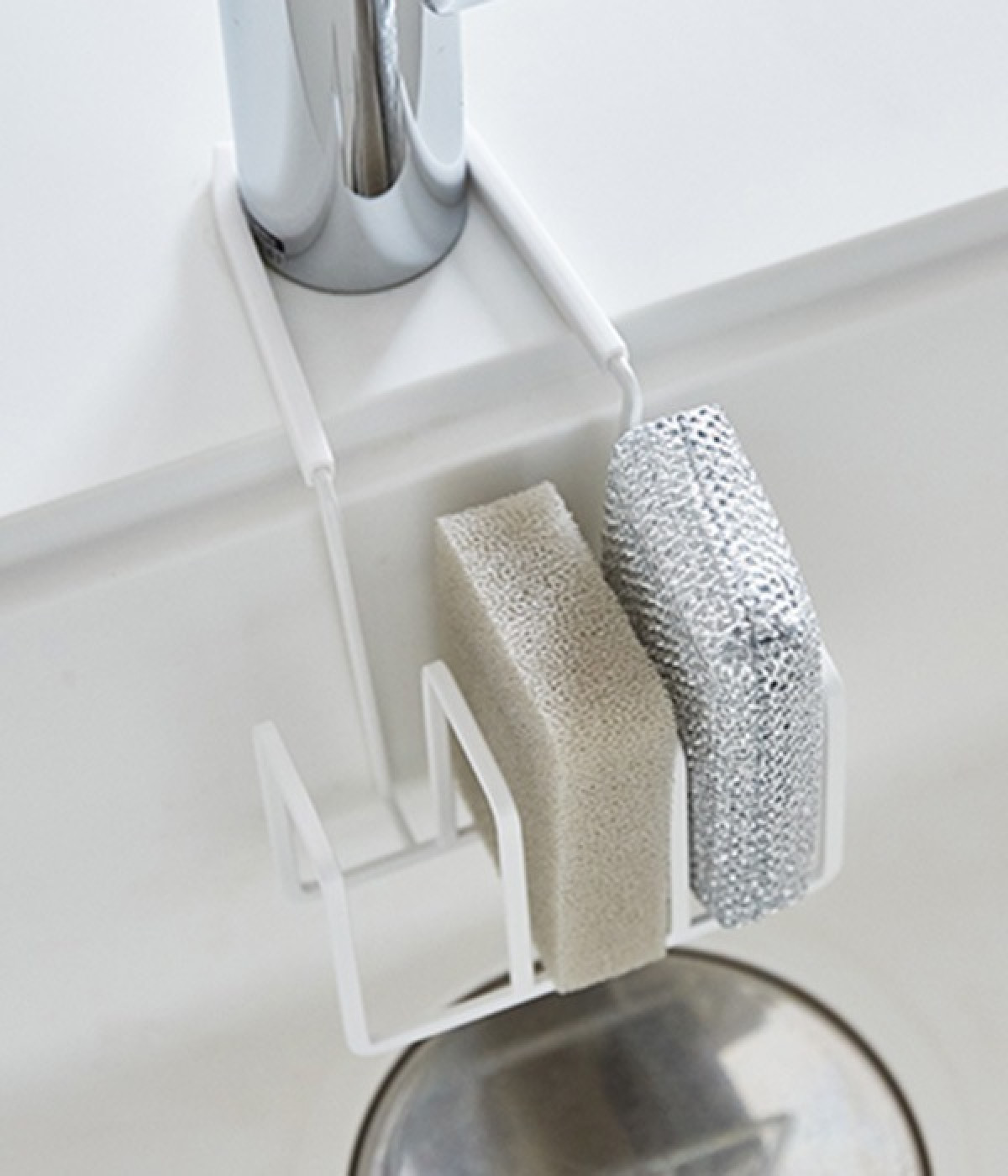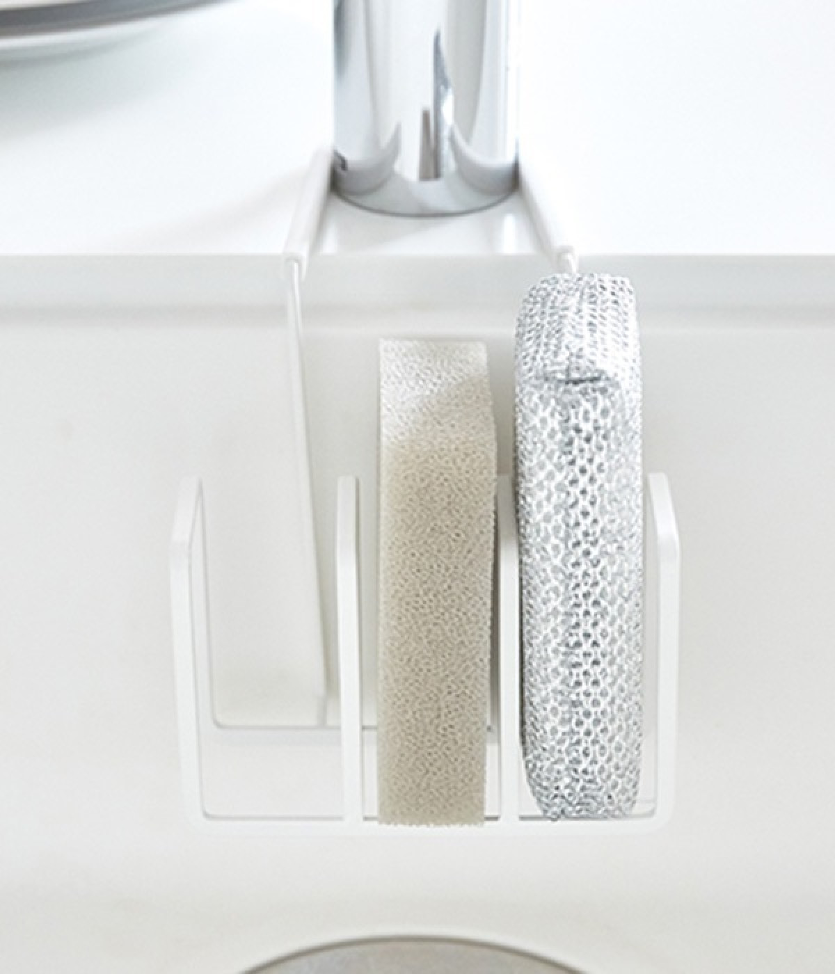 蛇口を挟み込むだけで簡単に取り付けできるスポンジホルダー。スチールの取り付け部がしっかりホールドするので、ずれ落ちることなく使用できます。シリコンカバーが付いているので、蛇口やシンクを傷つけることがありません。種類別に三つのスポンジを収納できる三連タイプで、洗い物が快適でスムーズに。インテリアを邪魔しない洗練されたデザインで、キッチンまわりがすっきりと整います。