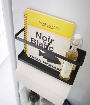 マグネットで簡単に取り付けられるラックです。よく使うキッチン小物を一括収納。
