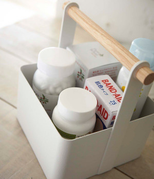 シンプルなデザインと暮らしに寄り添うアイテム提案にコアなファンが多い、歴史あるインテリア雑貨の専門メーカー山崎実業が手掛ける「YAMAZAKI(ヤマザキ)」より、子育て世帯のお片付けや収納に便利なツールボックスが届きました。白のスチールに天然木がアクセントのシンプルなデザインで、見せる収納にもおすすめ。化粧品や救急セット、工具入れなどの多用途に使えて、赤ちゃんのお世話グッズを入れる収納としても活躍します。持ち手付きなので、おしりふきやおむつを入れて夜間は寝室に持っていくなど、移動がスムーズにできる点もうれしいポイントですね。