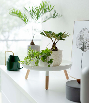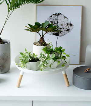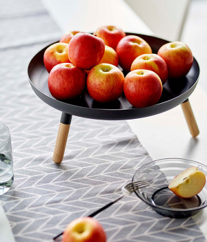 天然木とスチールの組み合わせが美しい脚付きトレーです。表情のあるカーブを描くトレーには十分な深さがあり、床から浮かせることができるので、ホコリ等も気にせずにドリンクやお菓子を置くことができます。置くだけで様になるのでインテリアトレーとしてお部屋の雰囲気作りにもピッタリです。プランターのディスプレイに。フルーツの収納に。ドリンクやお菓子などを置くミニテーブルとしてライフシーンに寄り添います。