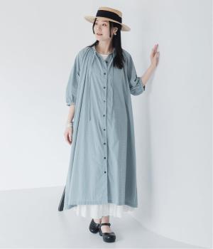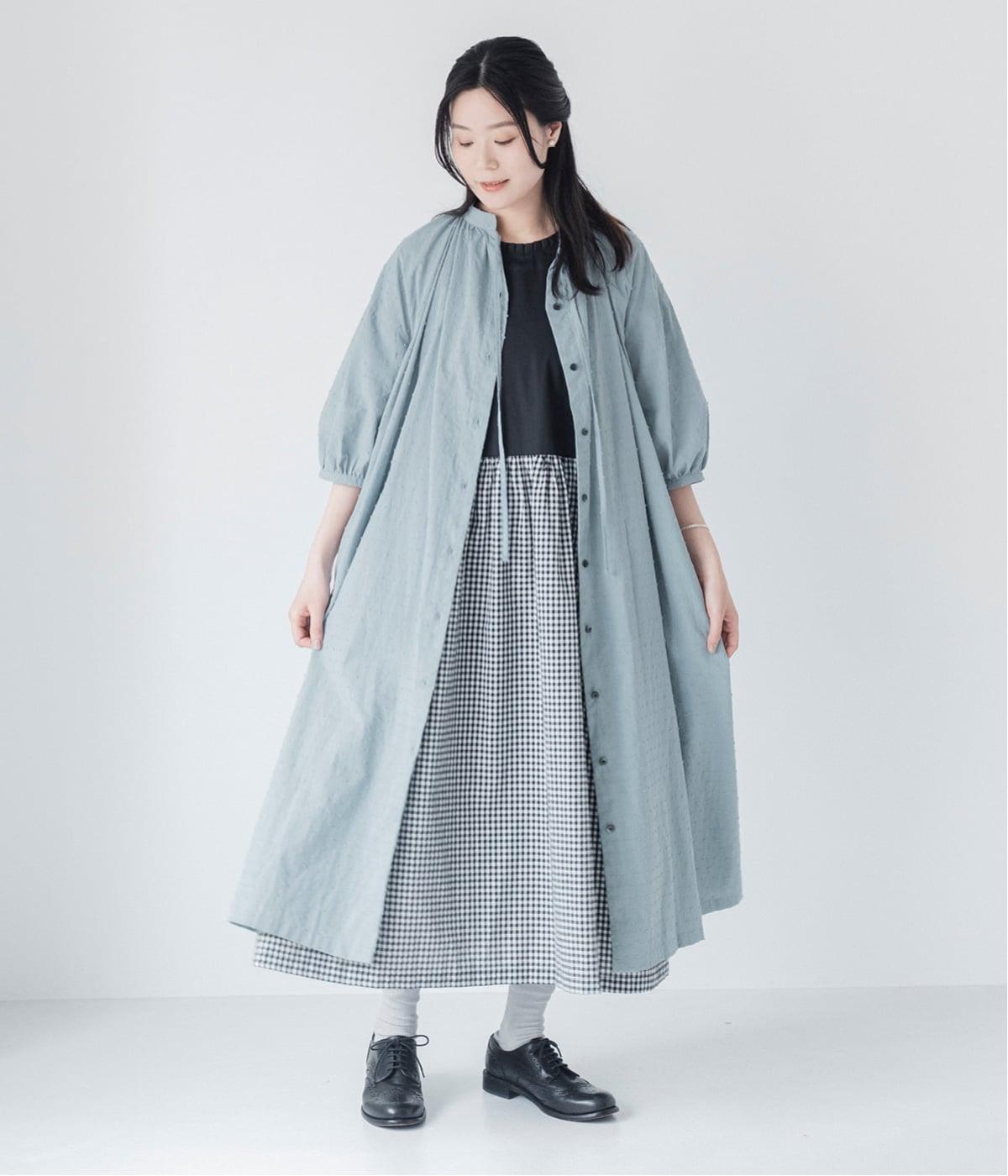 先ほどご紹介したギャザーワンピースを羽織れば、こなれ感を上乗せしたレイヤードスタイルに。襟フリル切替ワンピースは、すっきりとしたシルエットのため重ね着にも最適です。