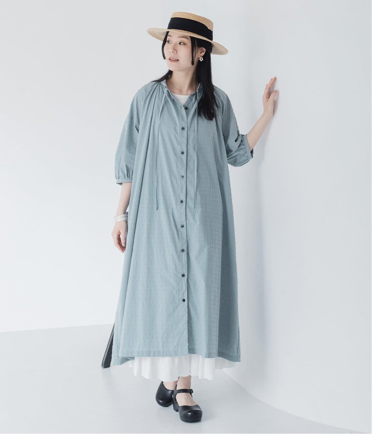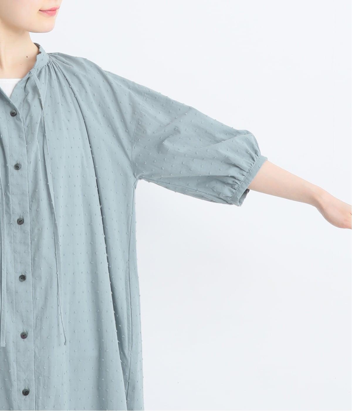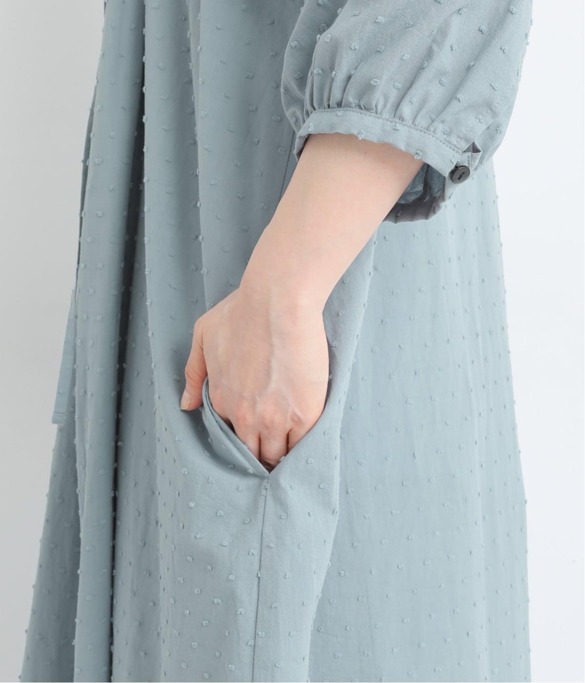 きれいに広がるAラインのシルエットが特徴的なカットドビーギャザーワンピース。カットドビー織りを施した、コットン100%素材の生地を使用。ポコポコとした風合いのドット柄が目を惹きます。