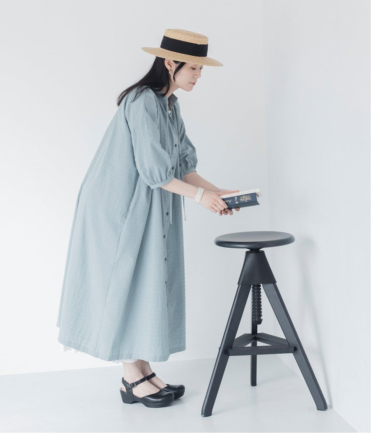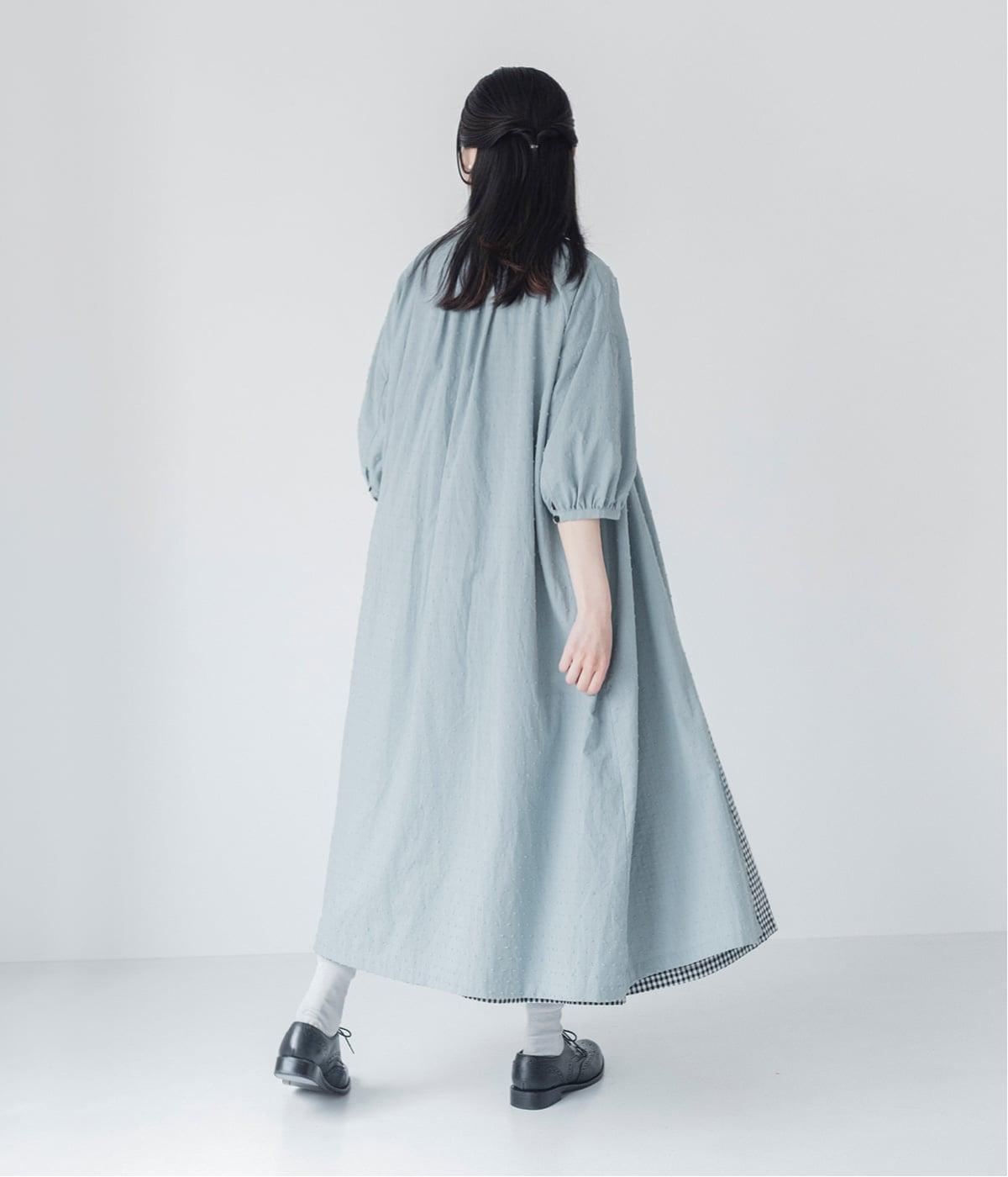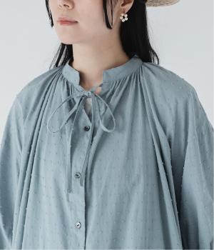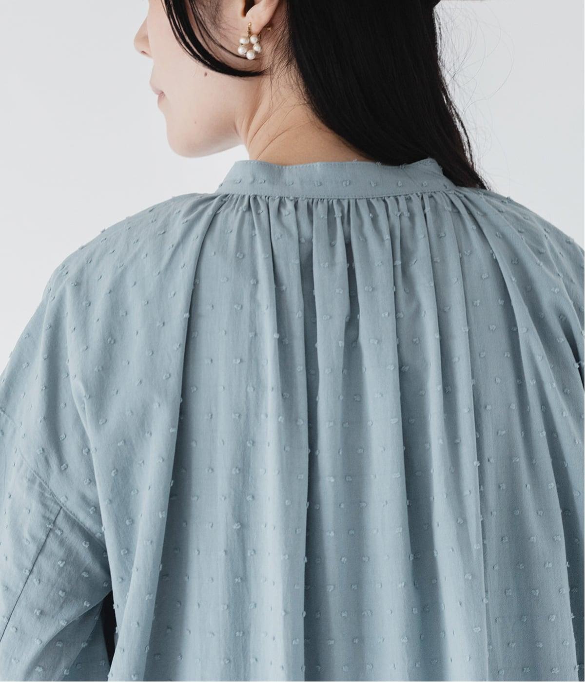 きれいに広がるAラインのシルエットが特徴的なカットドビーギャザーワンピース。カットドビー織りを施した、コットン100%素材の生地を使用。ポコポコとした風合いのドット柄が目を惹きます。