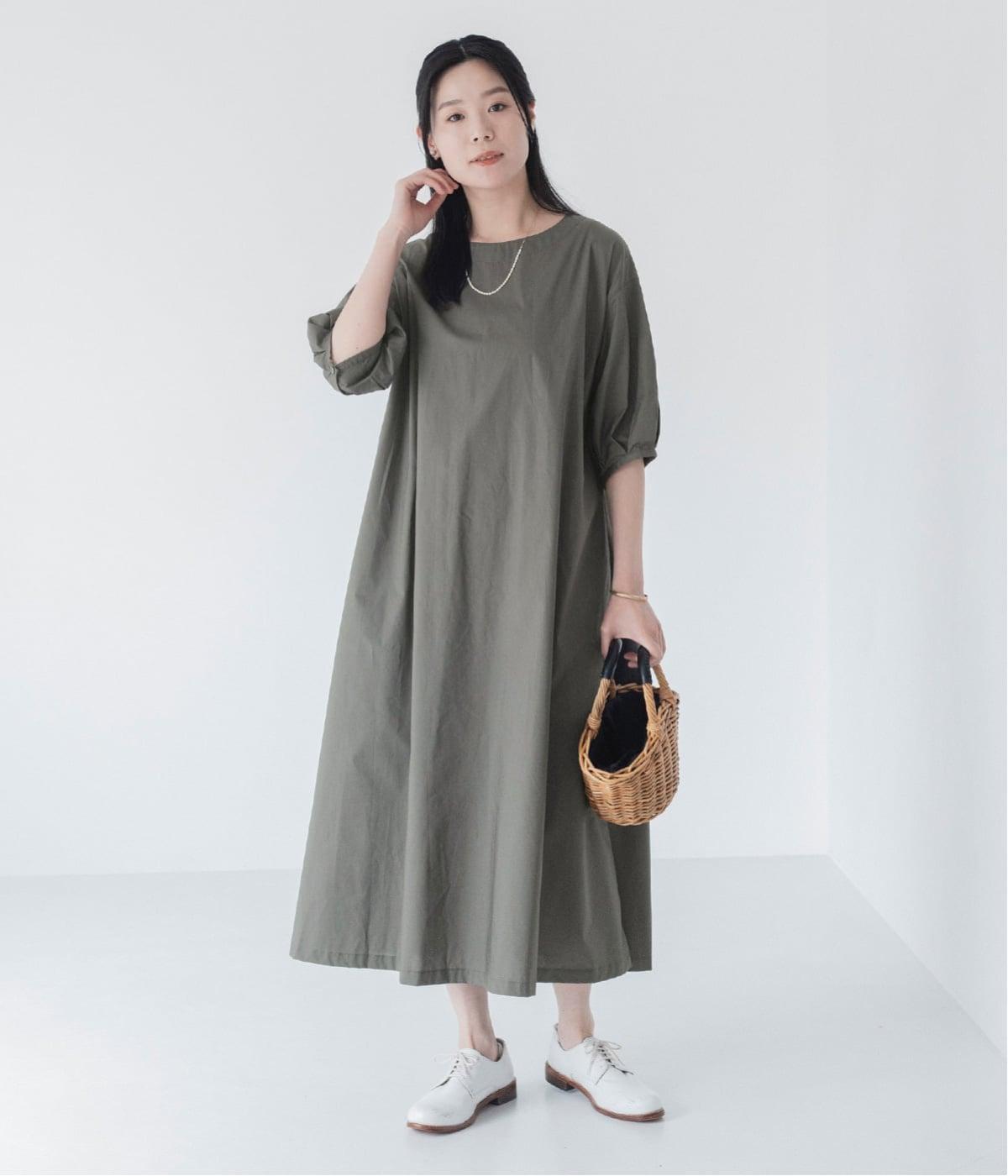 シンプルながらも、きちんと見えするデザインにこだわったボリュームスリーブワンピース。コットン100%のややハリのある素材が、美しいフレアシルエットをつくります。