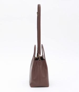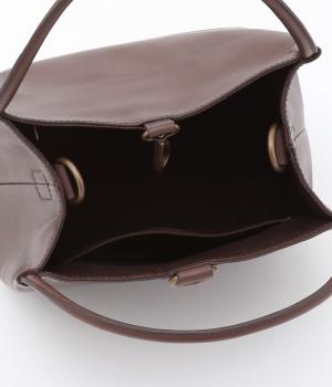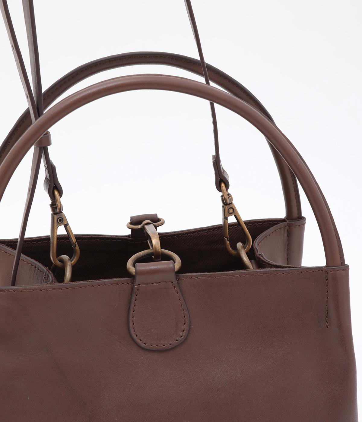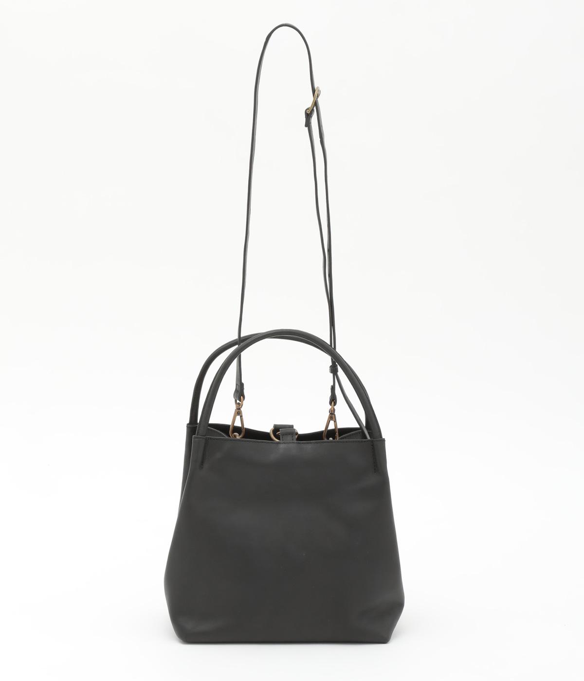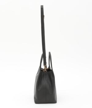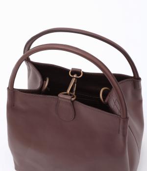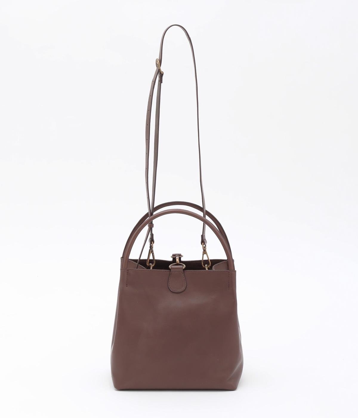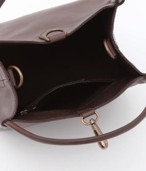 ころんとしたサイズ感ながらマチをひろくとって収納量を確保したスクエアバッグ。ショルダーつきの2way仕様で、カジュアルにもオフィシャルにも対応可能。フックタイプの留め具もクラシカル&大人顔なワンポイントです。