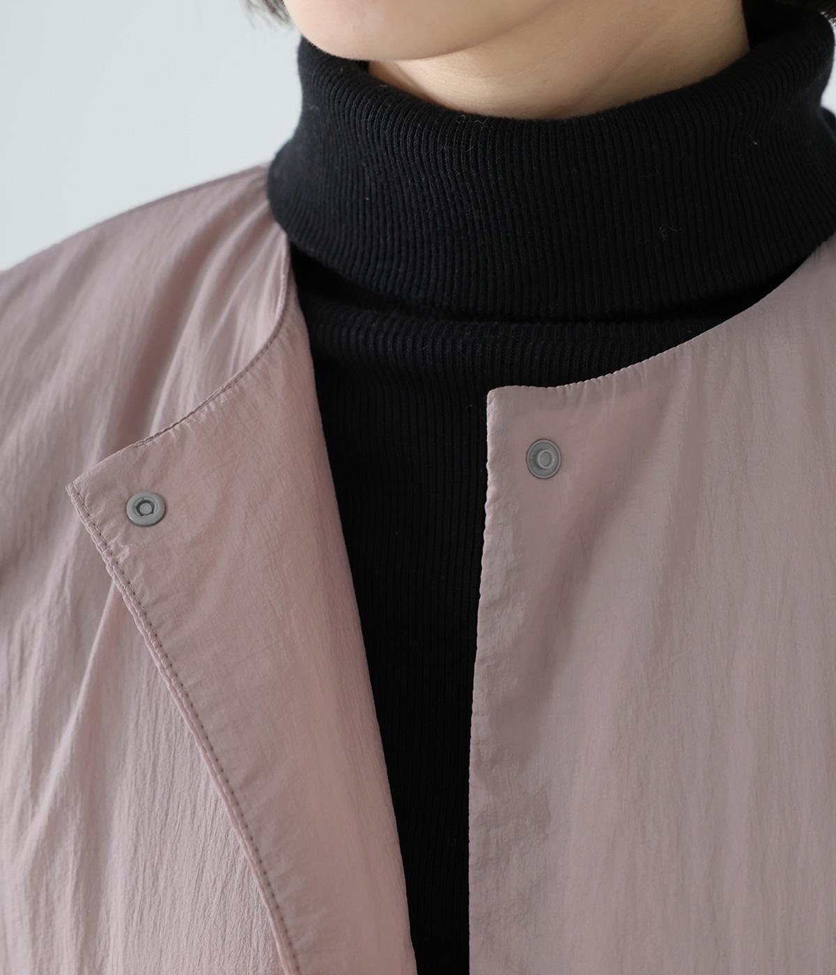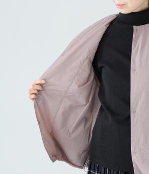 極細番手のナイロン糸をタテ・ヨコに使用して高密度に織り上げた素材。ワッシャー加工を施し、適度にカジュアルな表情に仕上げています。着ているのを忘れるほどの、軽量でエアリーな生地感が魅力。持ち運びにも便利です。