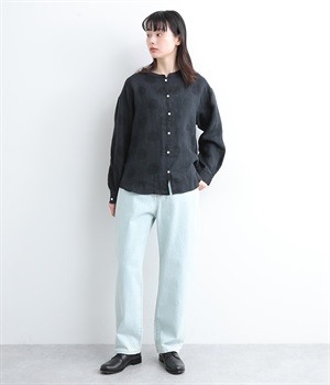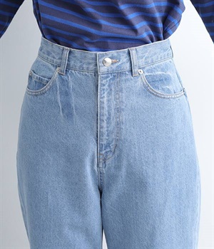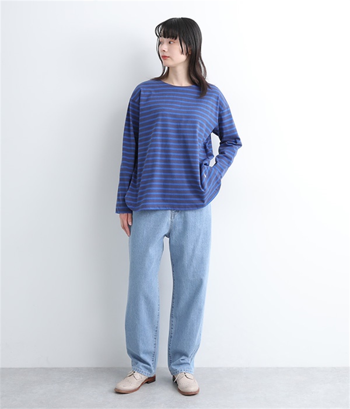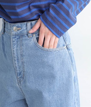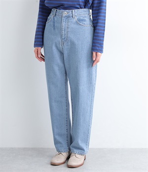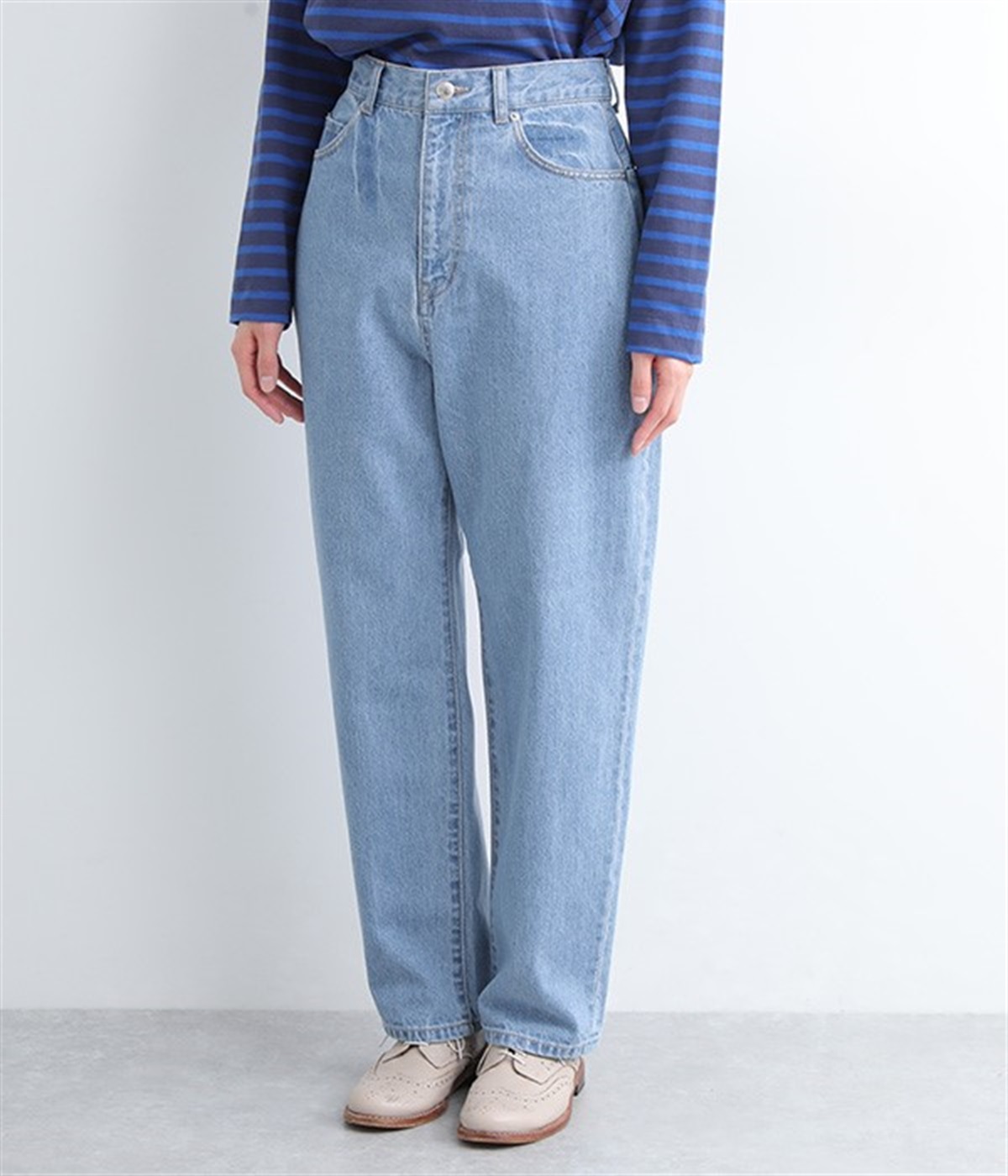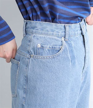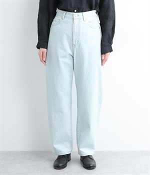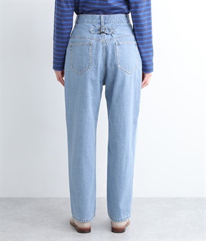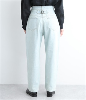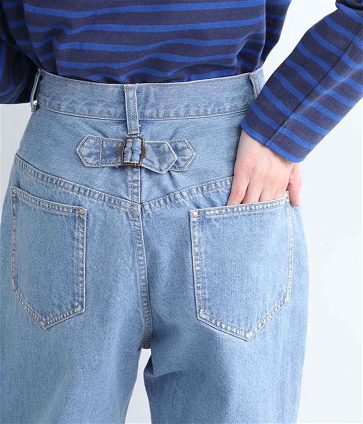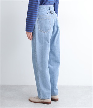 股上が深く、腰まわりにゆとりのあるフェミニンなシルエットのパンツ。はく回数を重ねるたびに肌になじんでいくコットンデニムを使用しています。ベルトをせずともウエストでフィットするため、はき心地に安心感があるのも魅力。視覚的にヒップ位置を高く見せるバックストラップも気が利いています。裾をロールアップすると装いが軽やかになり、シルエットバランスもとりやすくなるのでおすすめ。