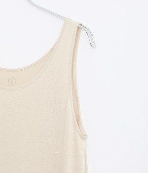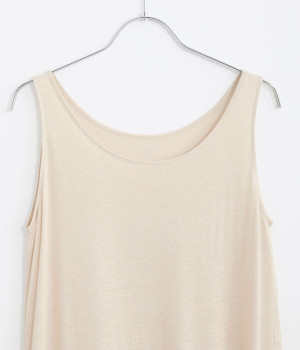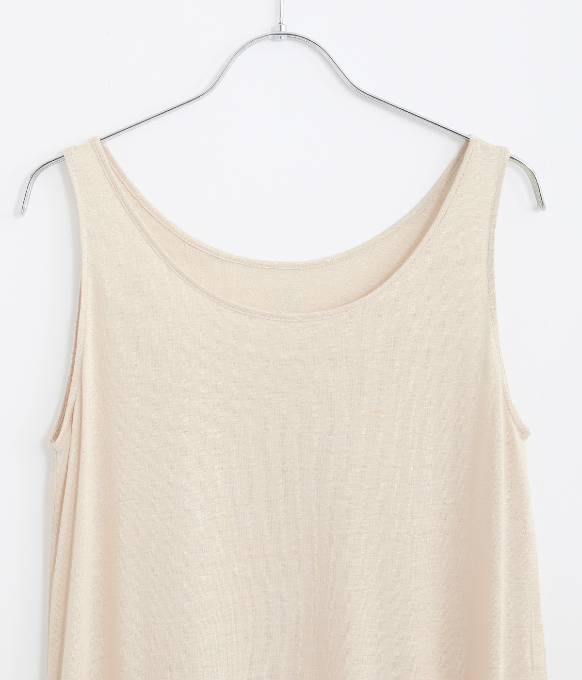 ネックラインやアームホールなど、細部までこだわったインナーワンピース。さらりとした着心地なので肌への張りつきが少なく、コーディネートに取り入れやすくなっています。ボトムやワンピースに付属しているペチコートなどのアンダーウェアの代わりに◎。