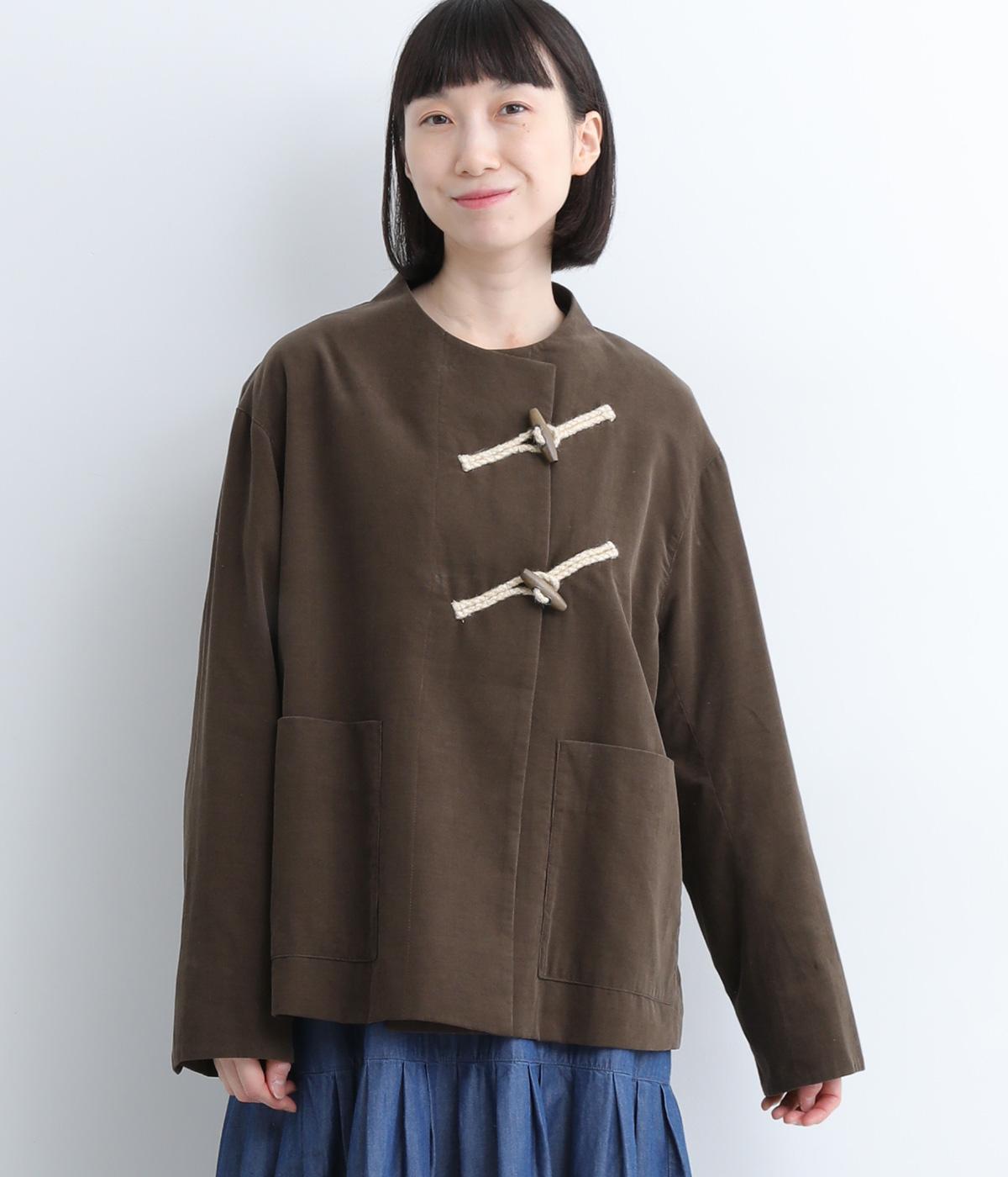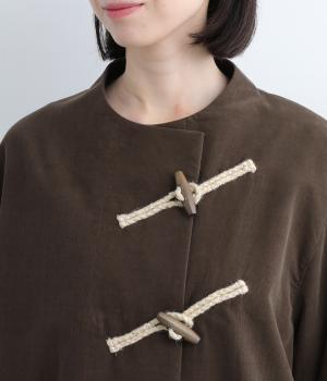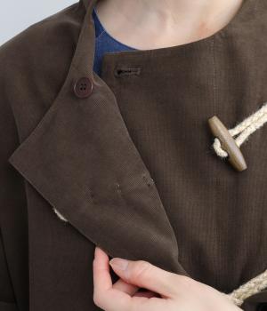 フロントのトグルボタンをポイントにした、ジャケットタイプのアウター。ボクシーな身頃、すっきりとしたクルーネックでアクセントを惹きたてています。季節の変わりめにカーディガンのように気軽に羽織れるのも魅力です。カジュアルさと大人顔のバランスが◎。